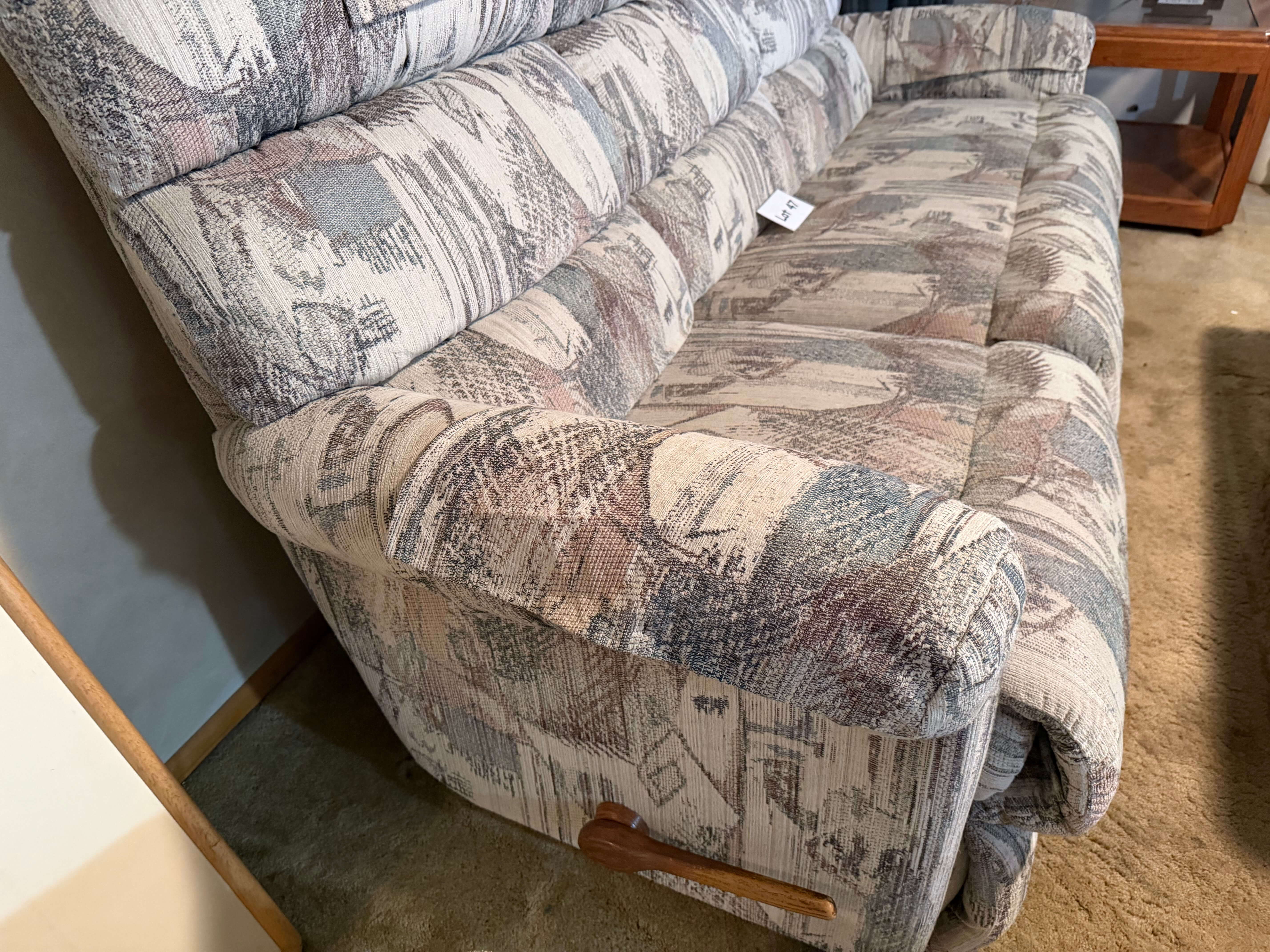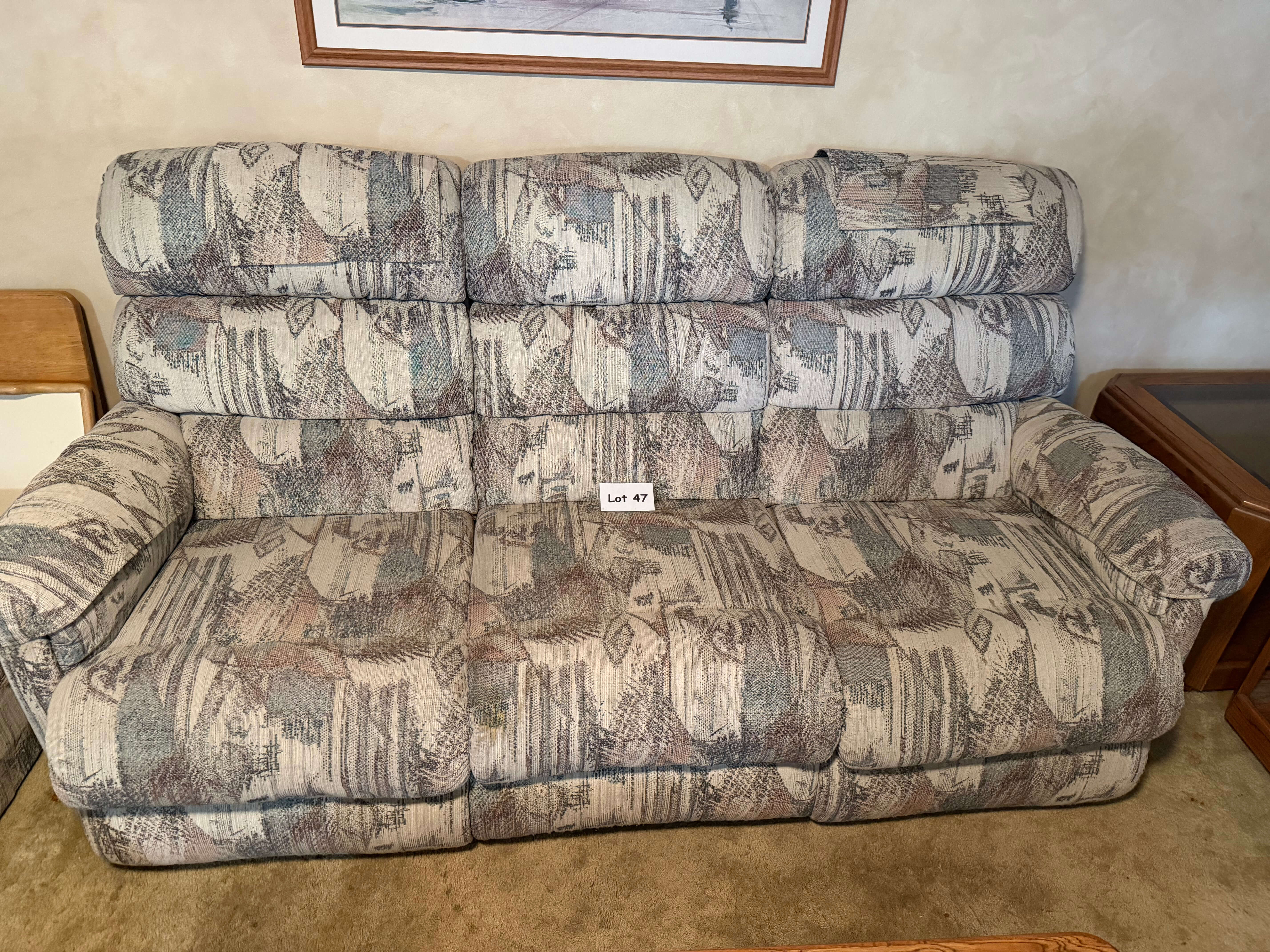 La-Z-Boy Reclining Sofa (2 seats recline, 1 manual handle is loose). Overall in good, gently used condition