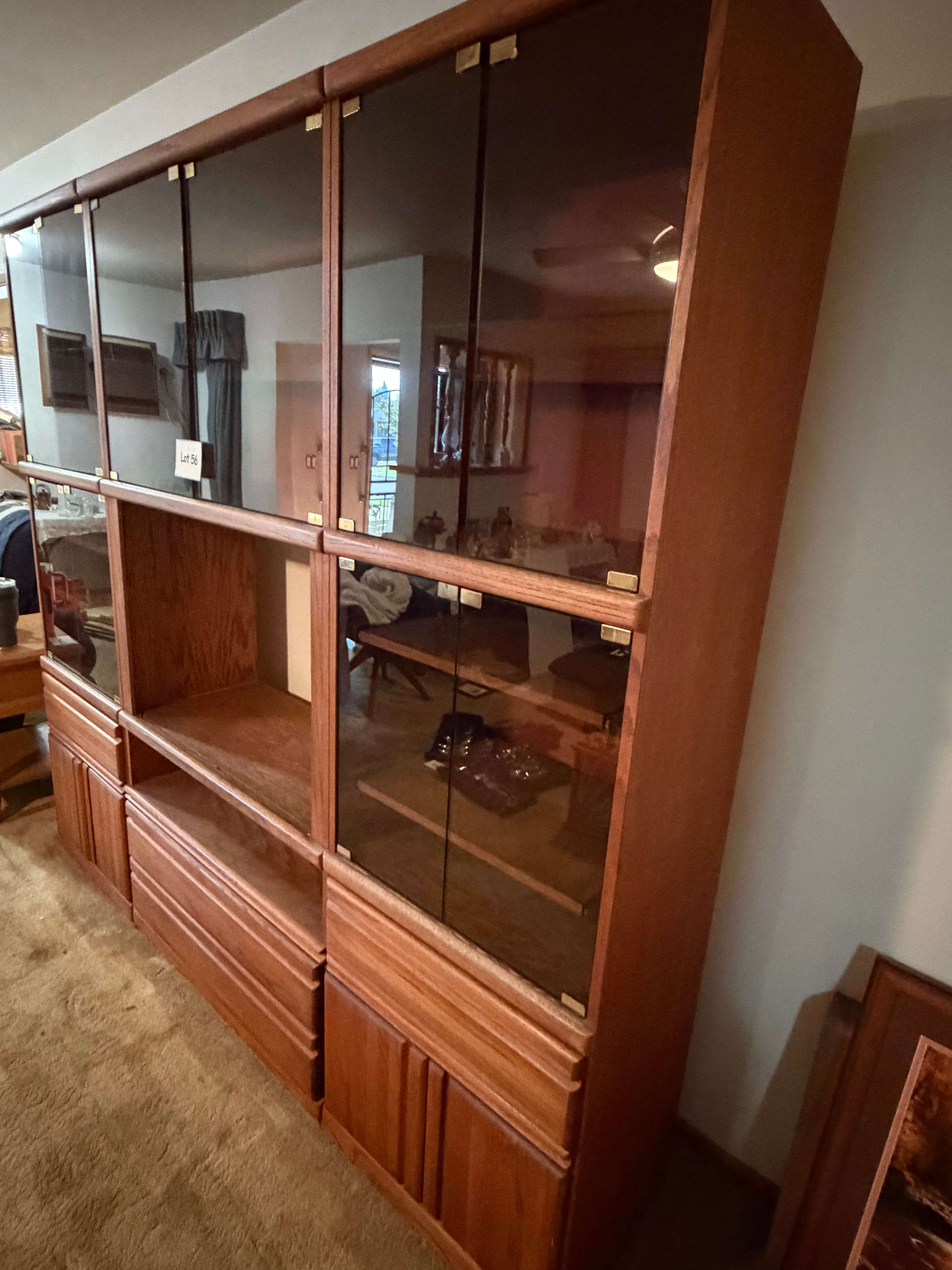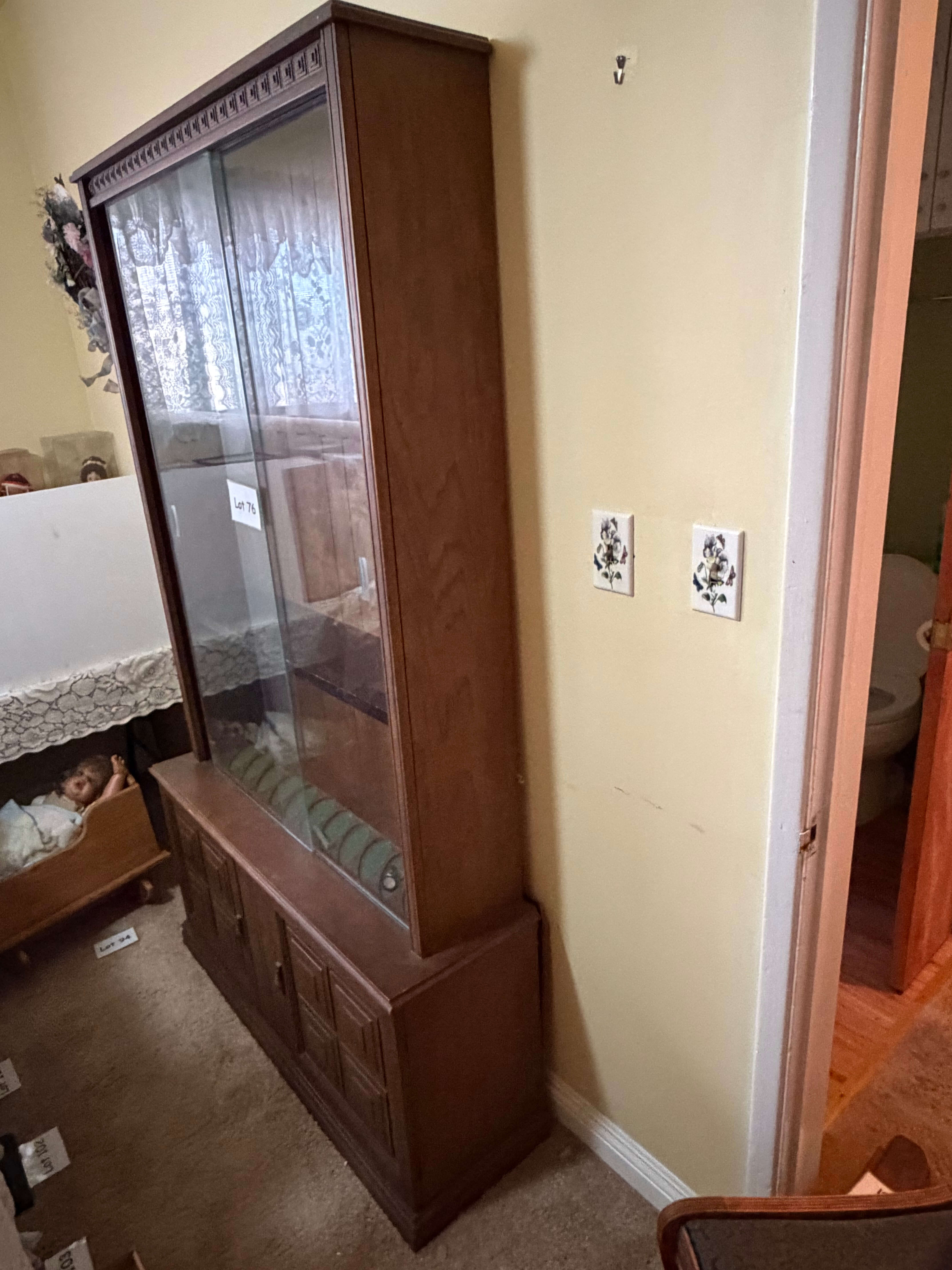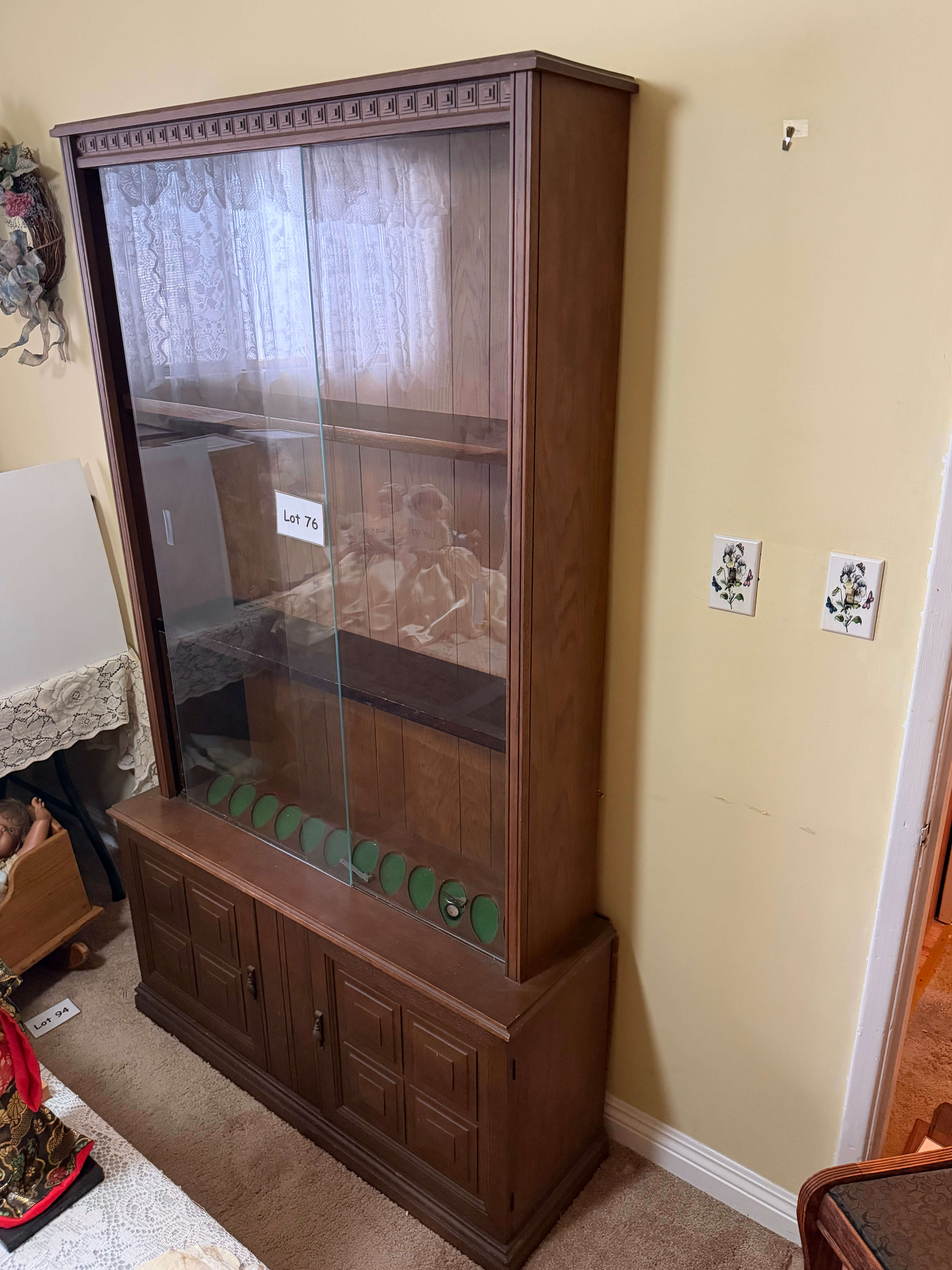 Vintage Rifle / Curio Cabinet w/ Sliding Glass Door Front (includes sliding lock & key), 38"w x 18"d x 74"h