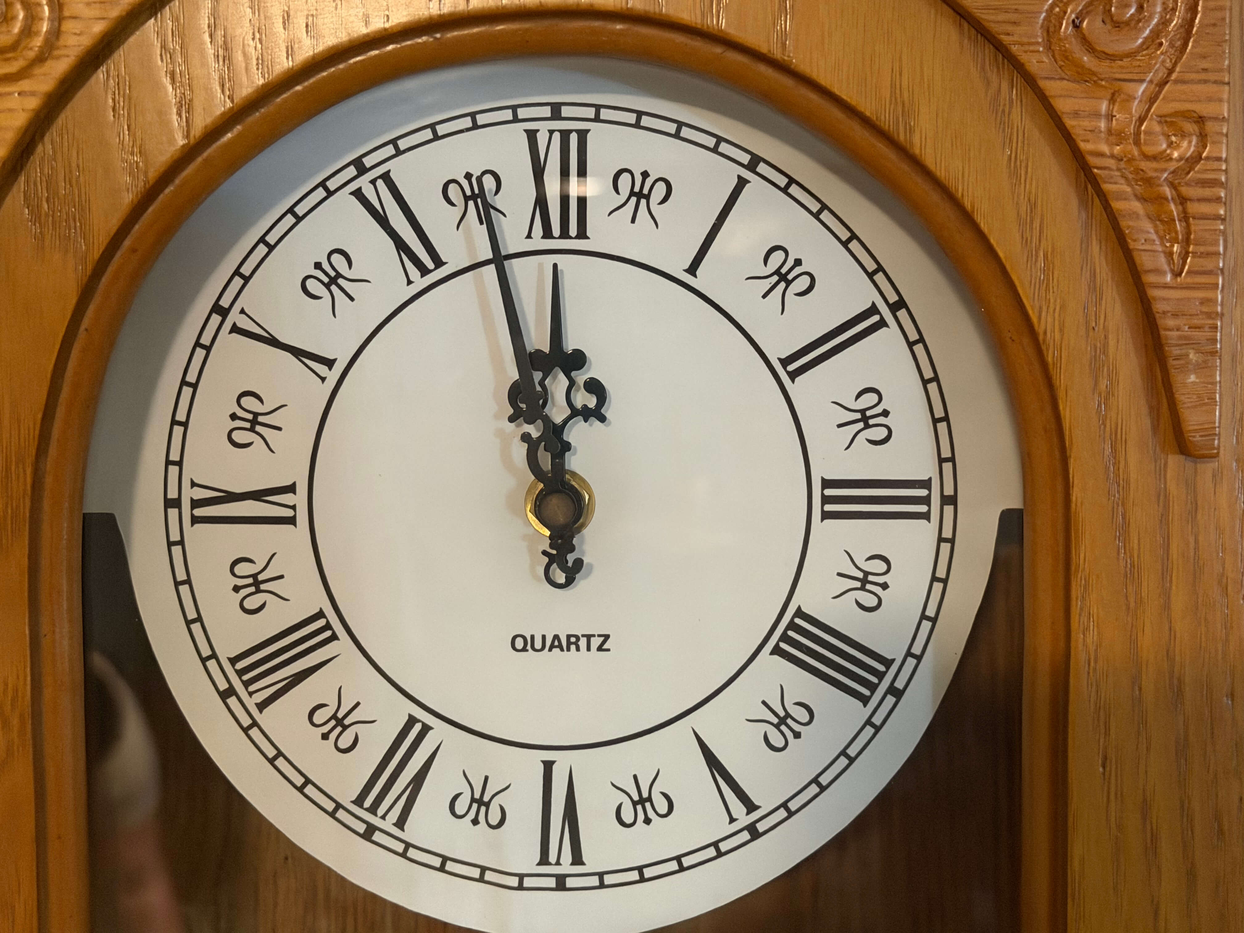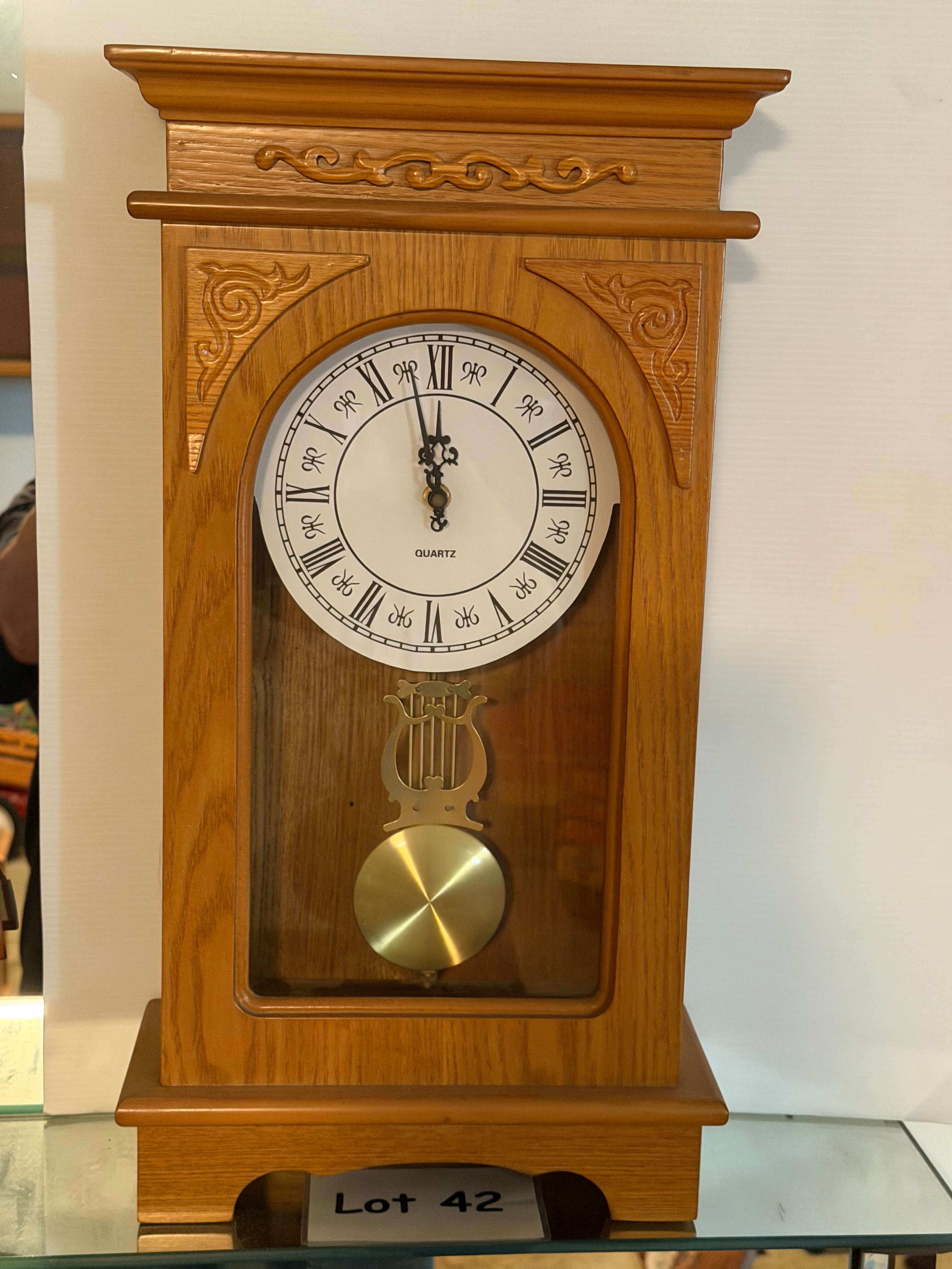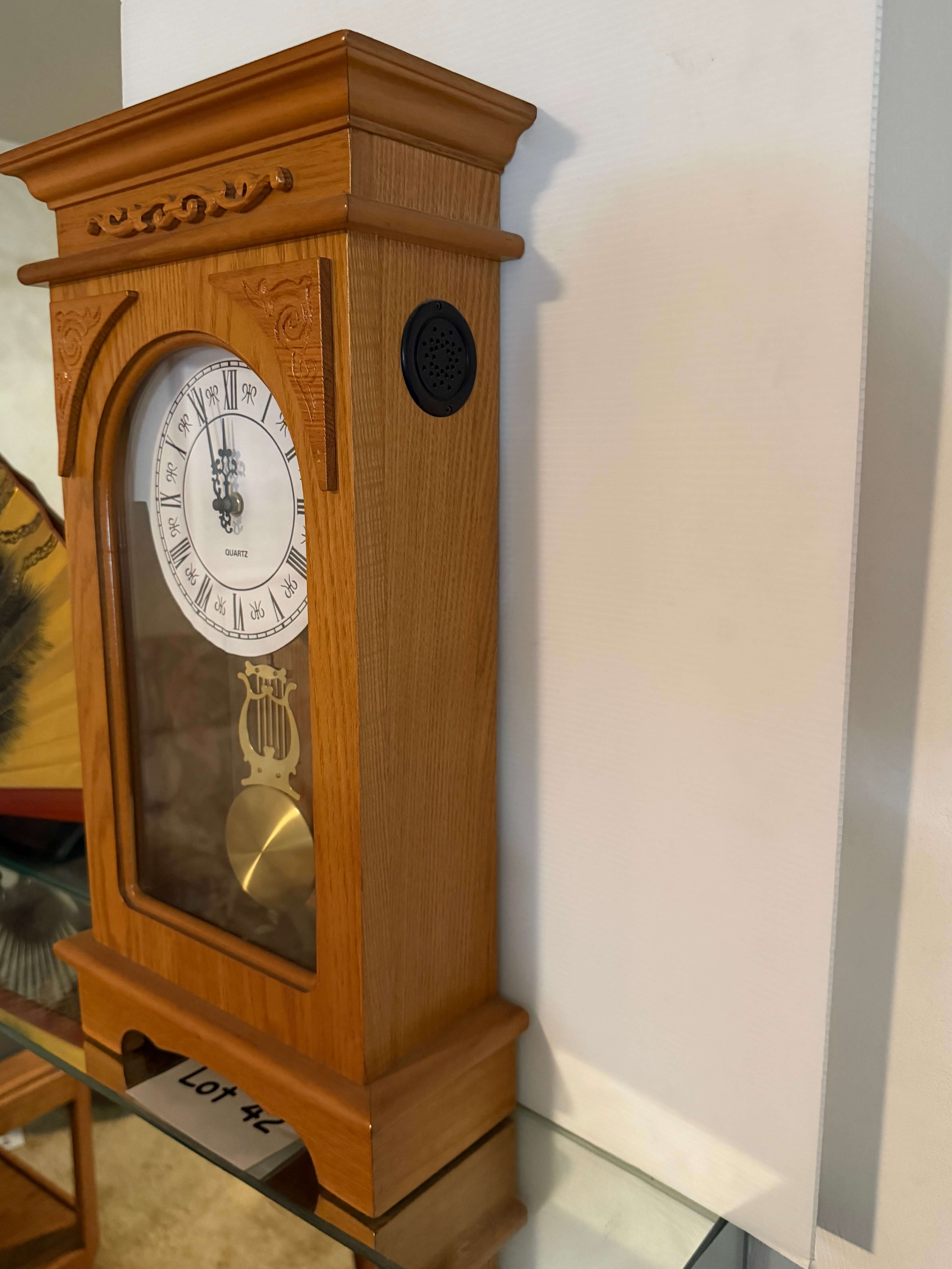 Wooden Free-standing Quartz Clock, 11"w x 4"d x 20"h (needs batt)