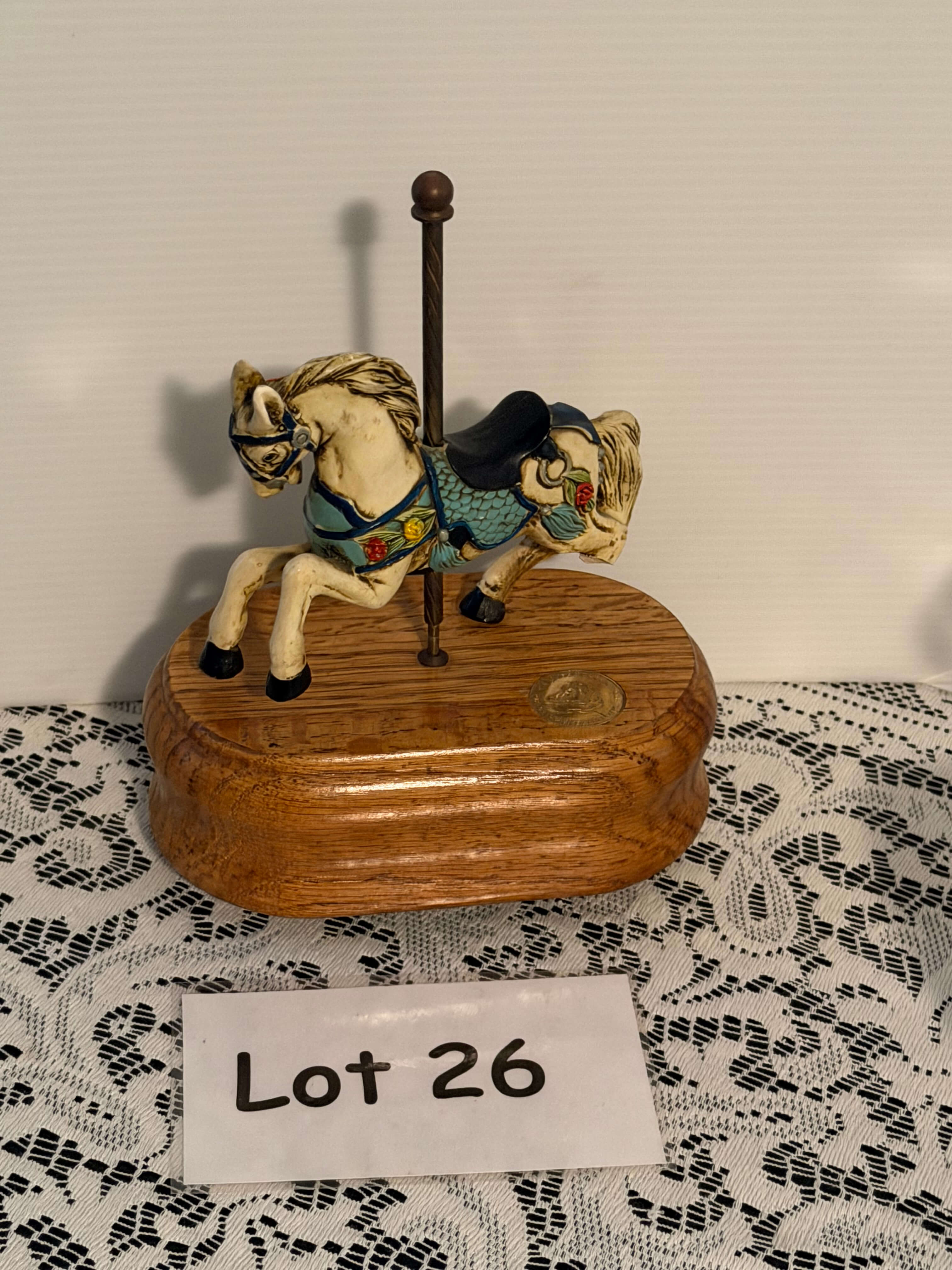 Carousel Horse Musical Figurine, @6"h (horse is missing a leg)