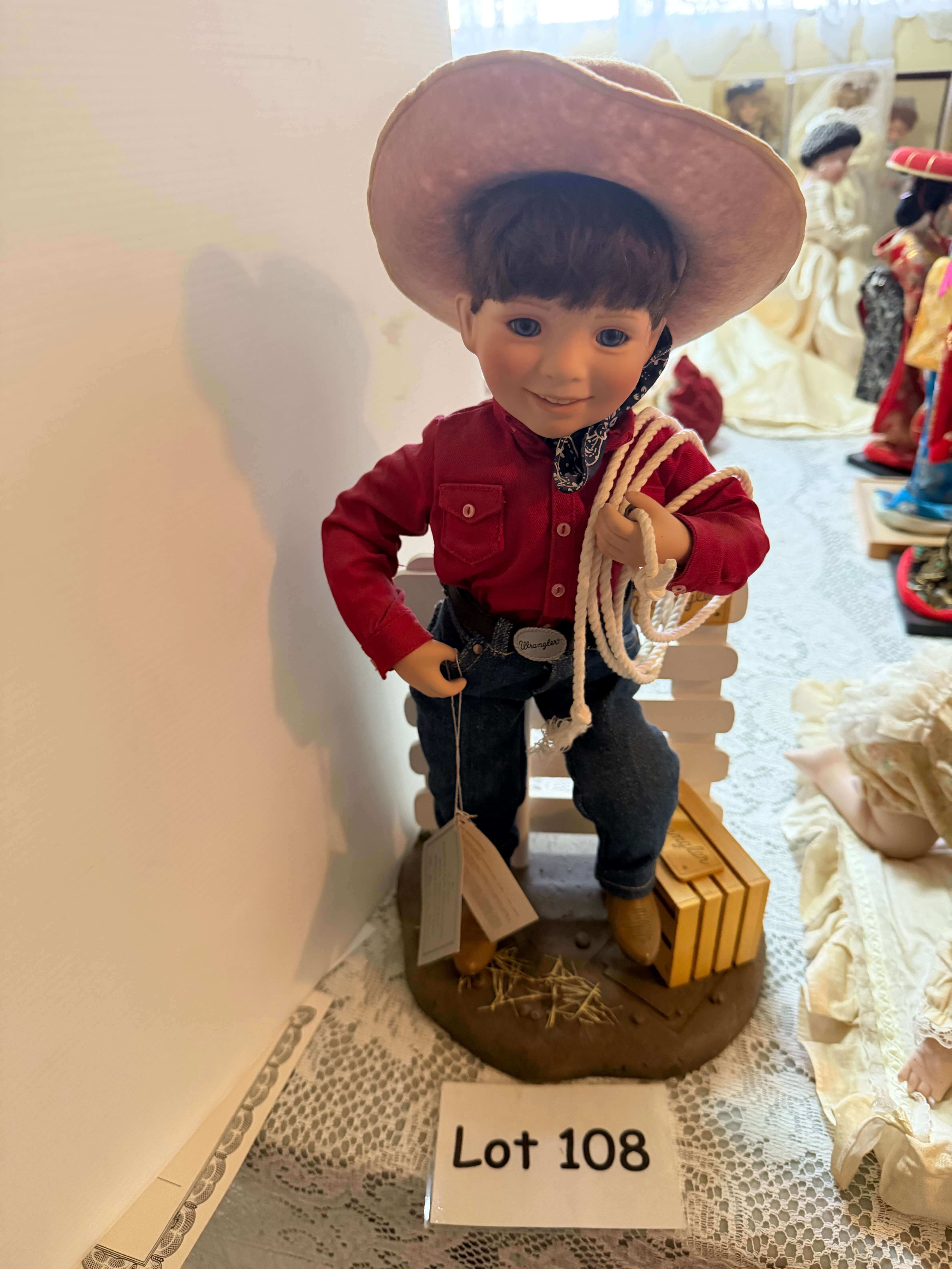 Danbury Mint Porcelain Cowboy Doll, 16"h