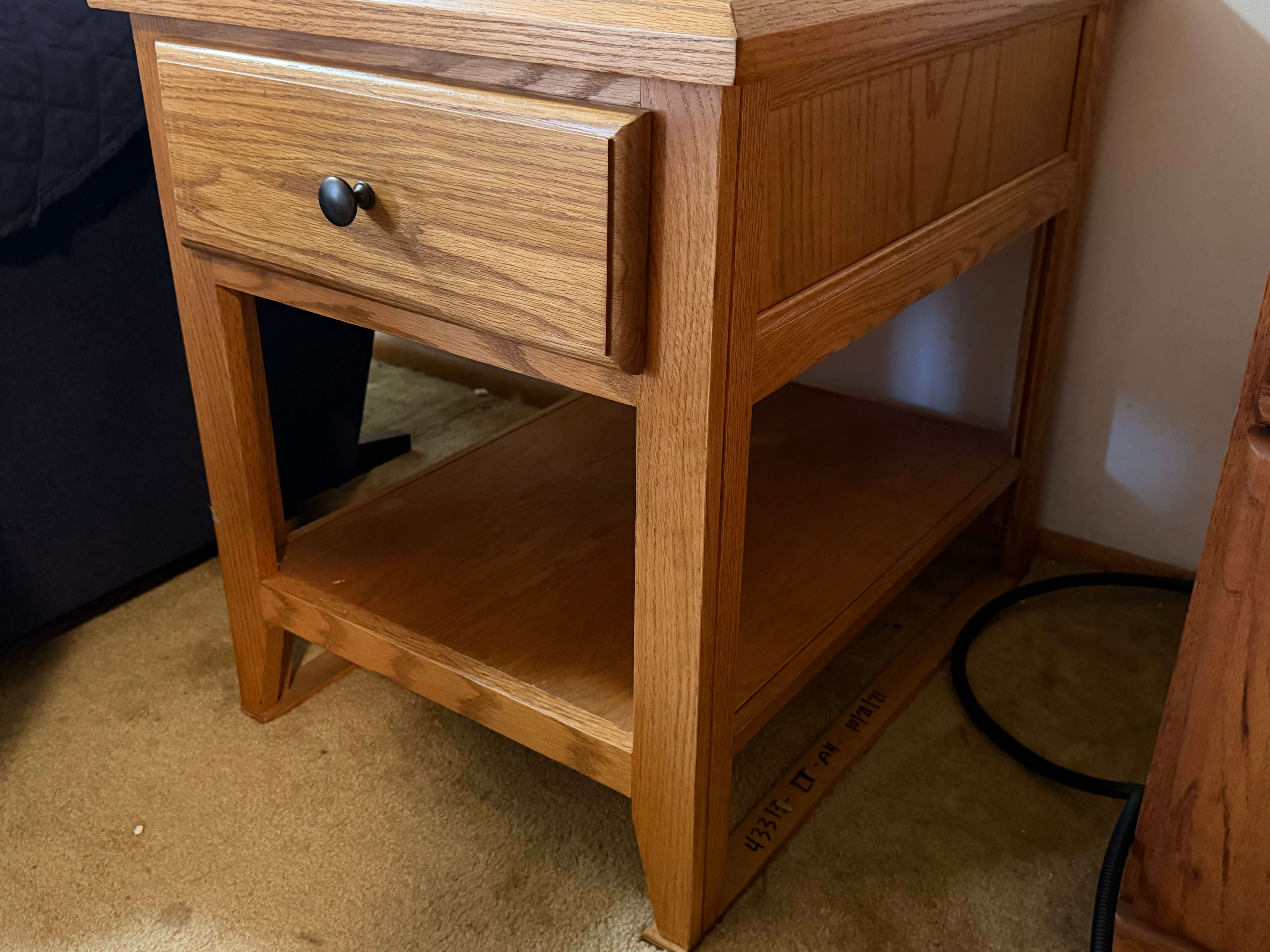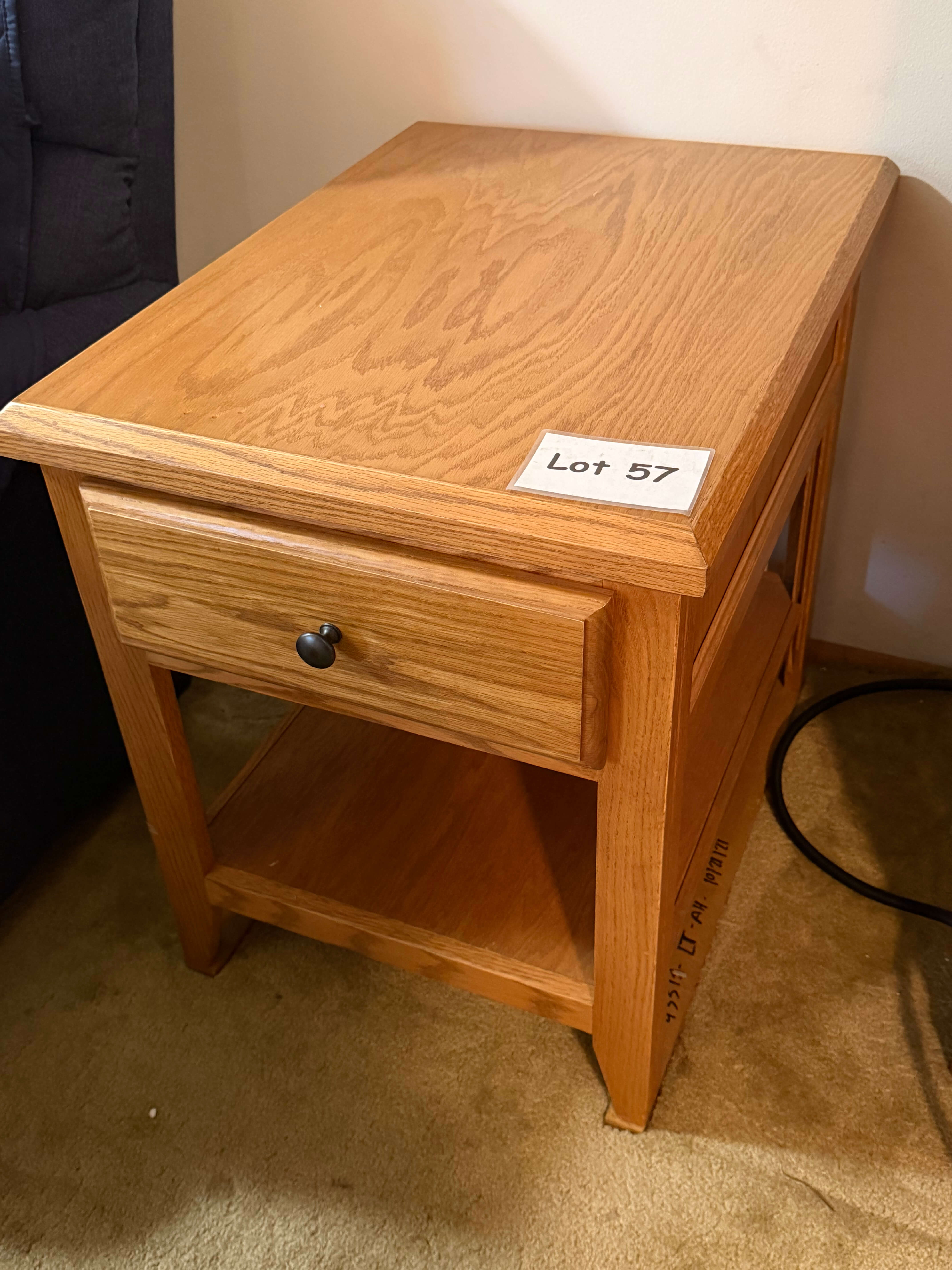 Wood End Table, 20 1/2'w x 27 1/2"d x 24"h. A few light scratches and water marks on top.