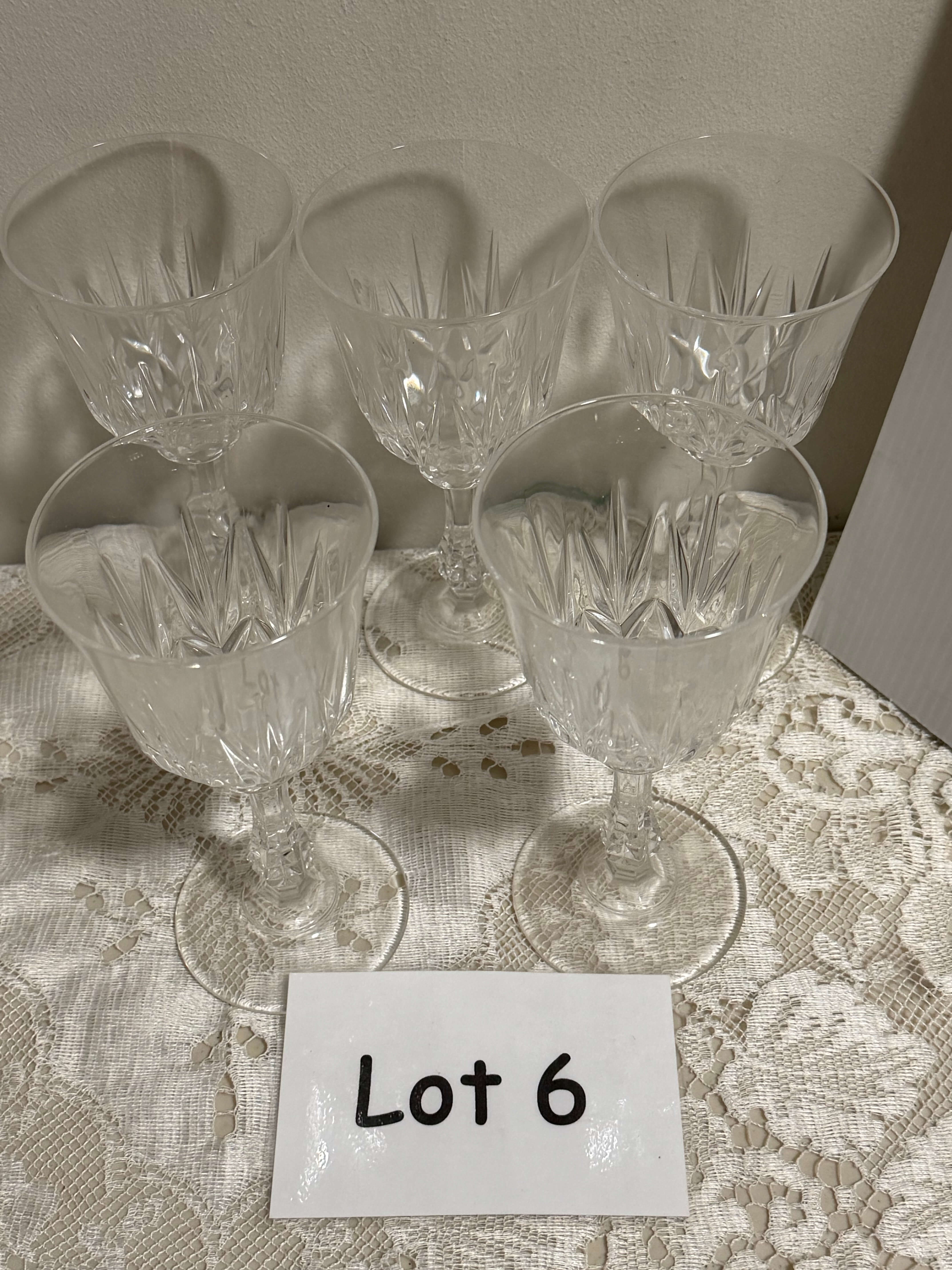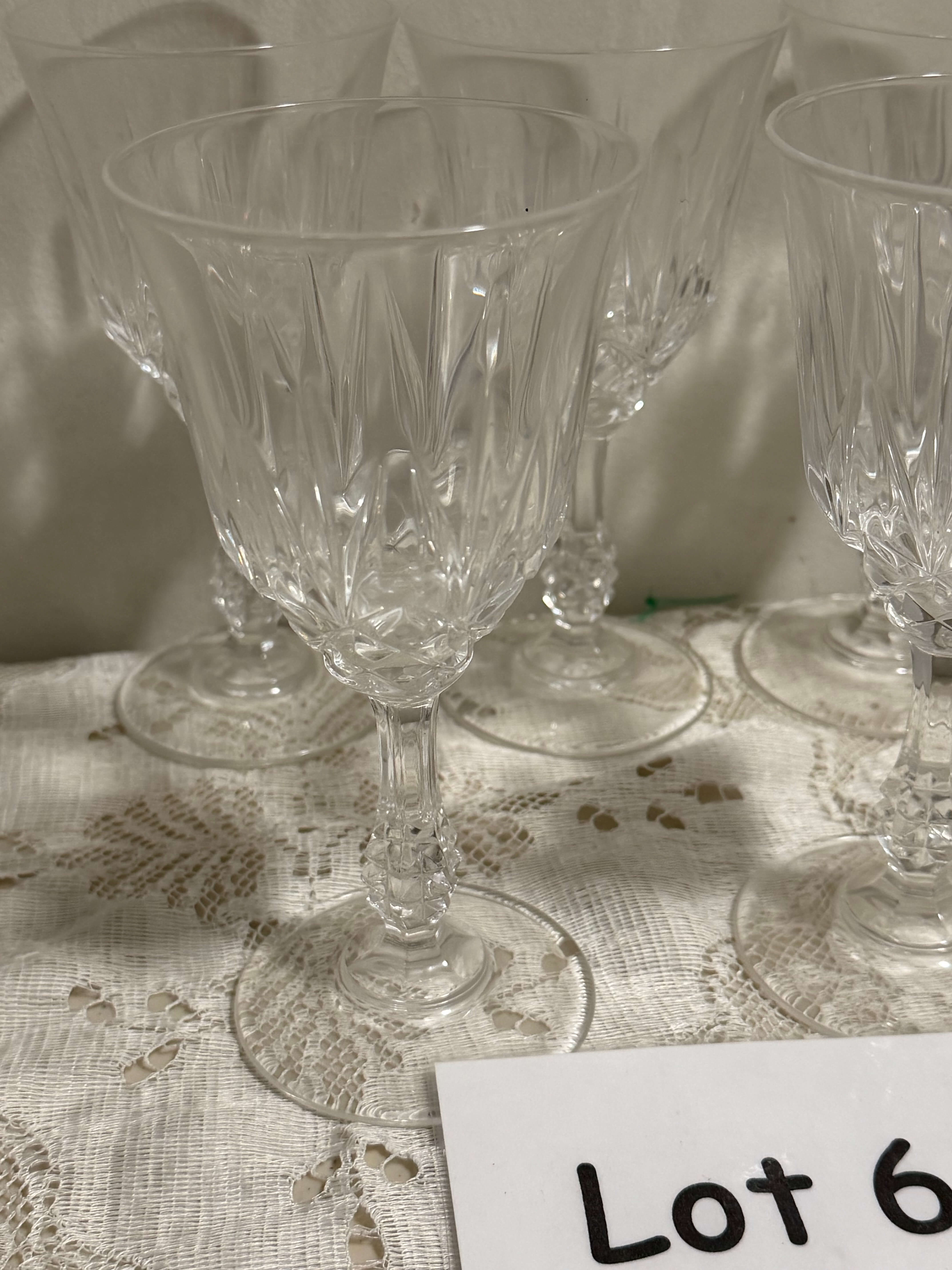 Set of 5 Pressed Glass Goblets, 6 1/2"h