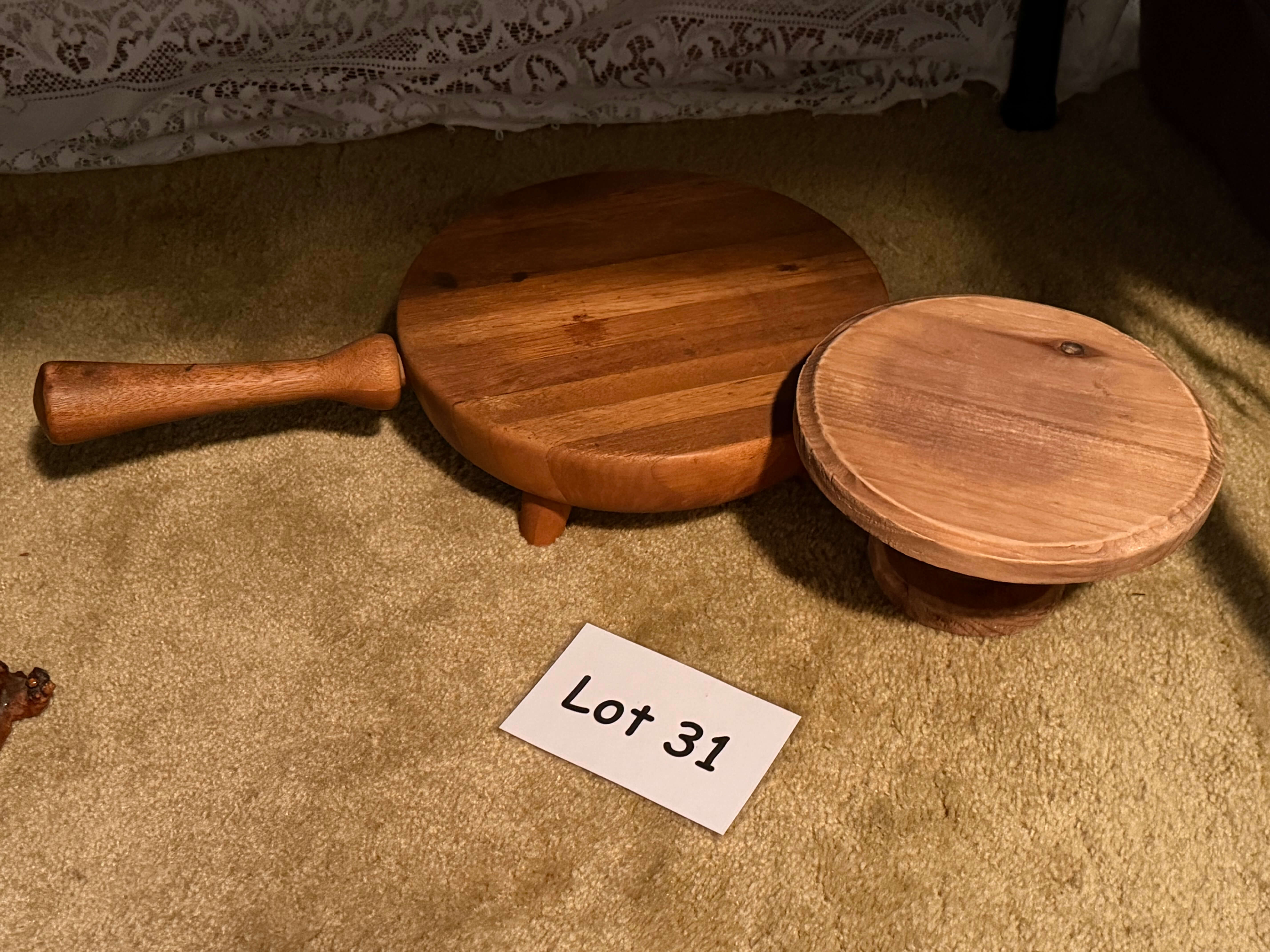 2 Decorative Wooden Trivets, larger is @ 10" diameter.