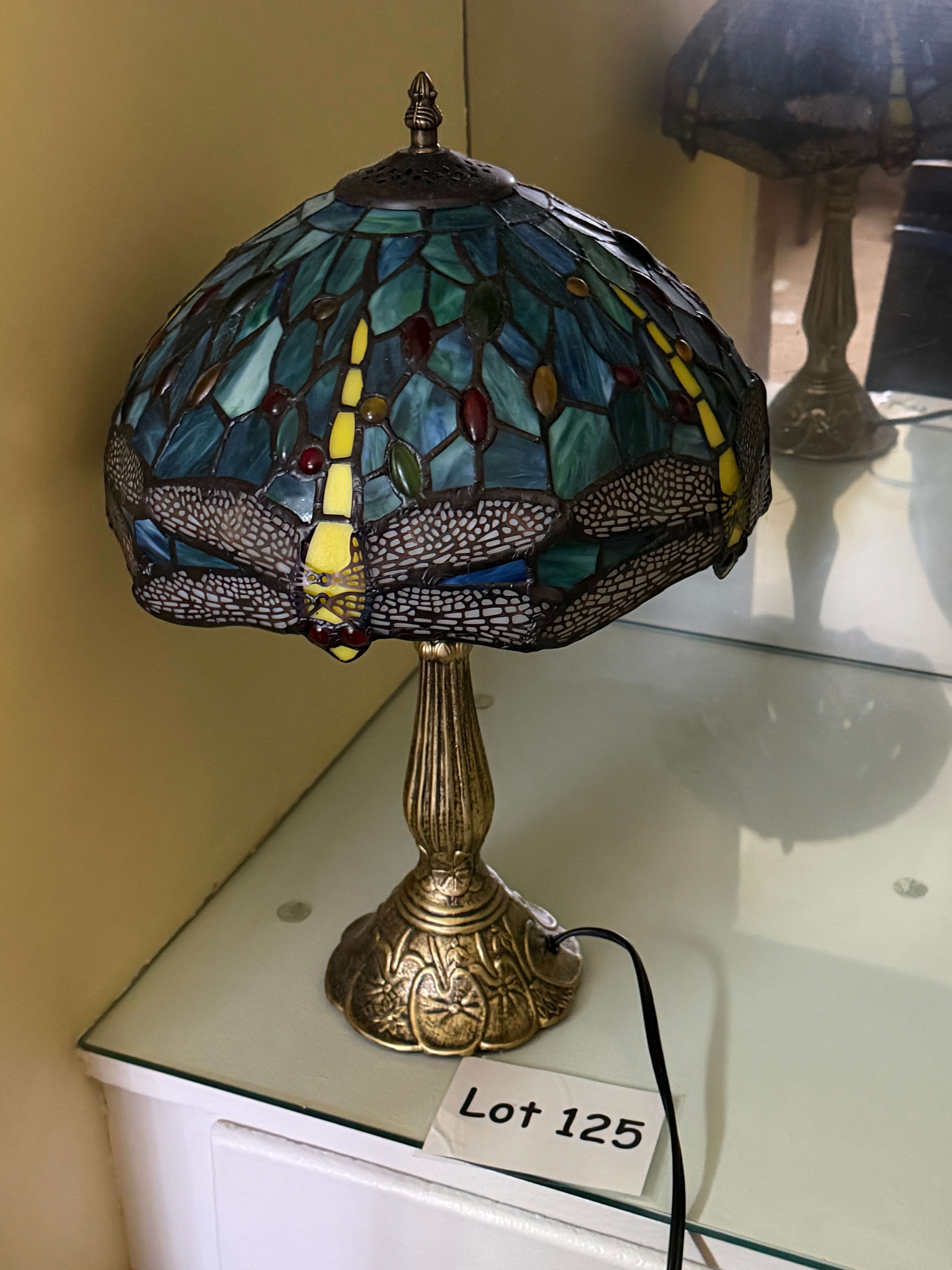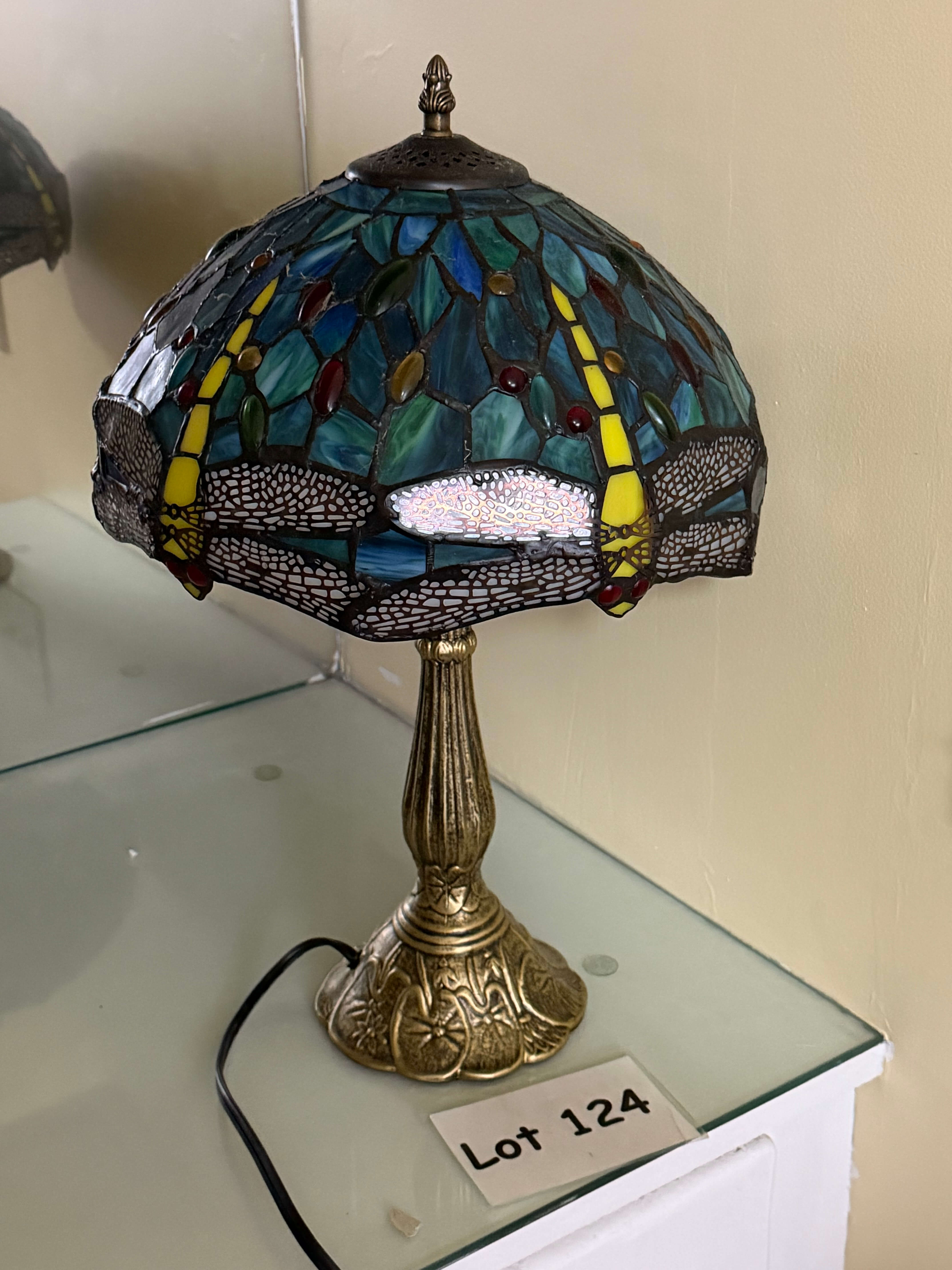 Tiffany Style Dragonfly Table Lamp w/ Brass Base, 19"h
