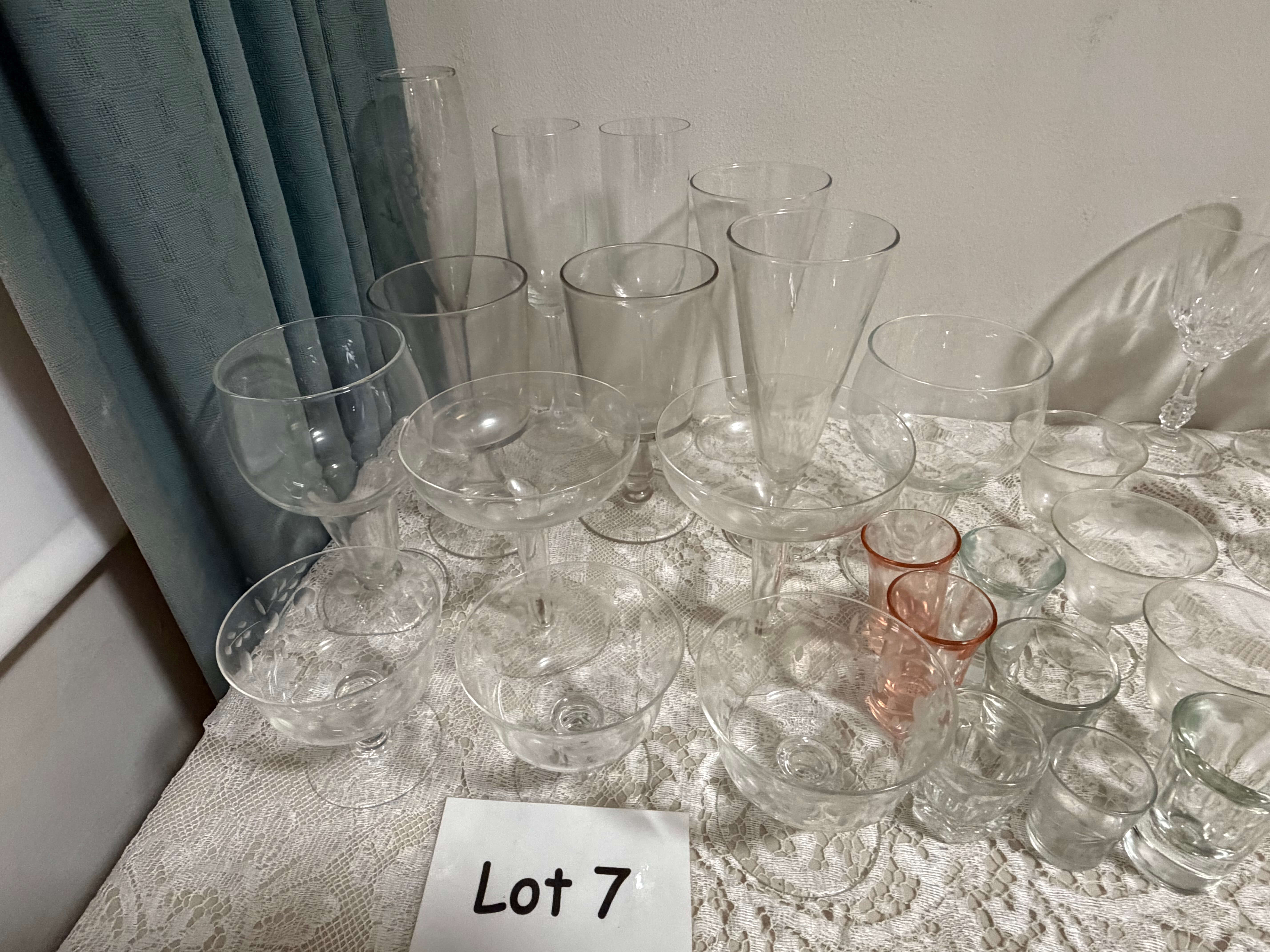 Varity of 24 Glasses & Stemware, tallest is 9"h