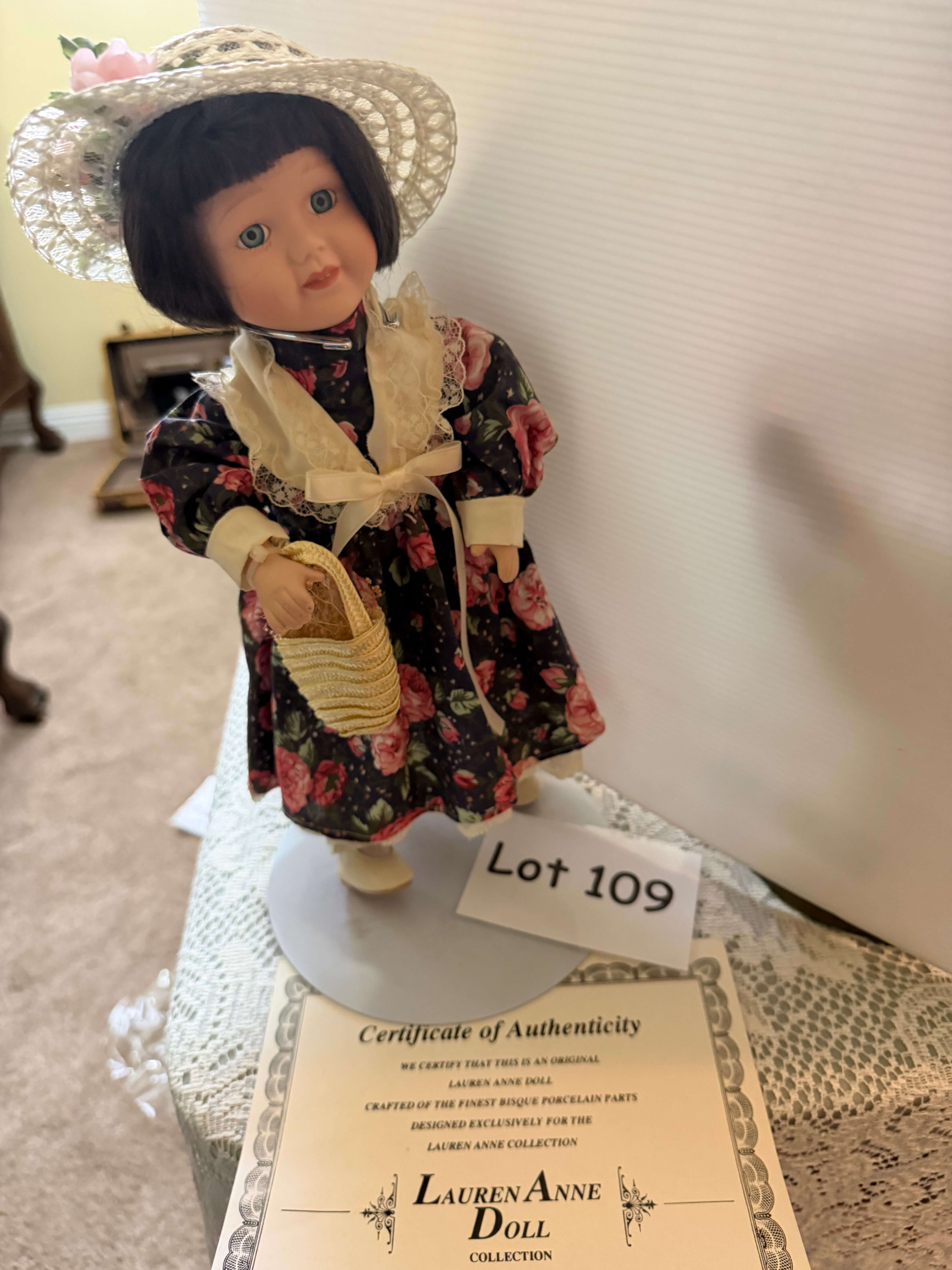Lauren Anne Porcelain Doll w/COA, 13"h
