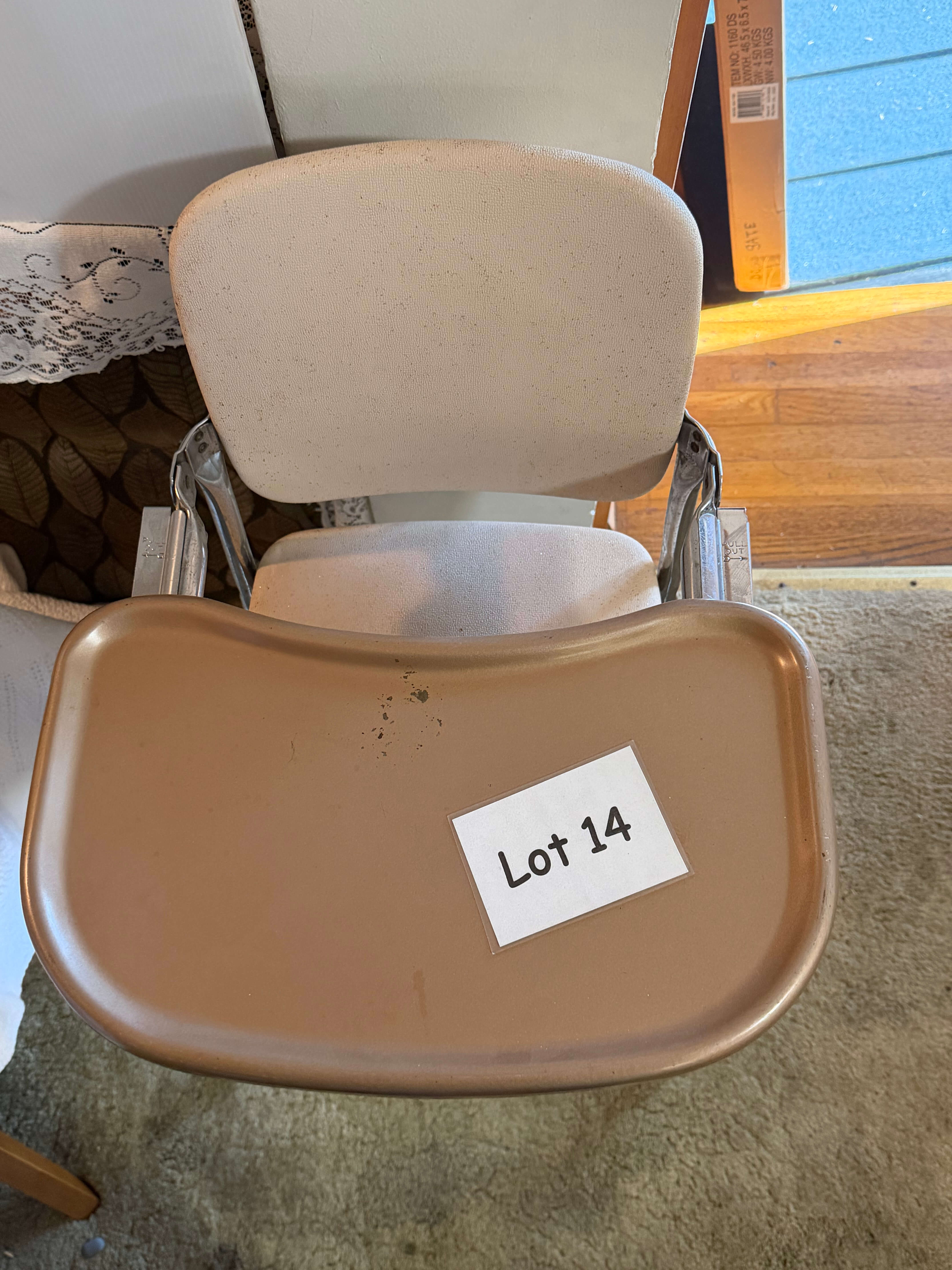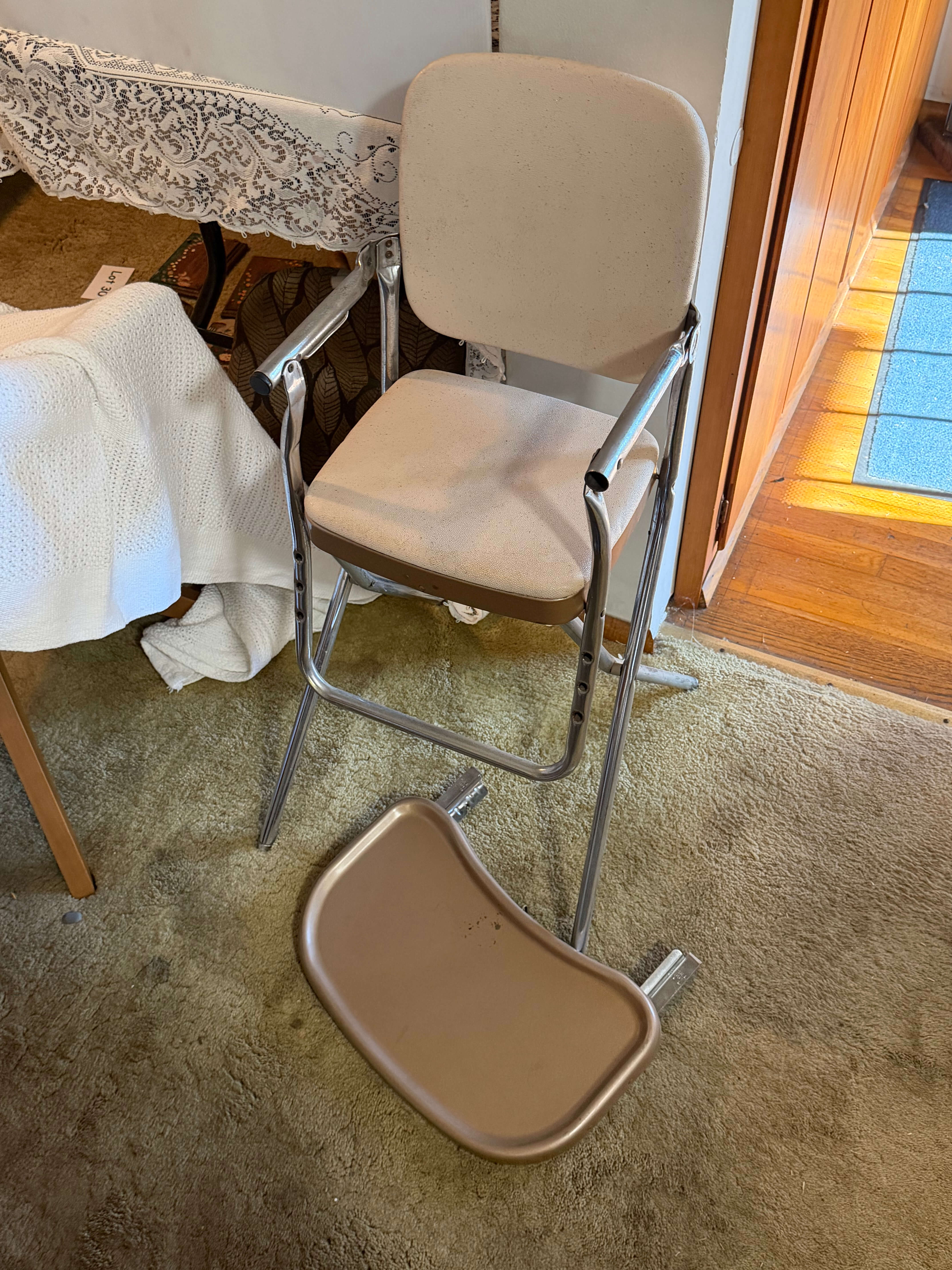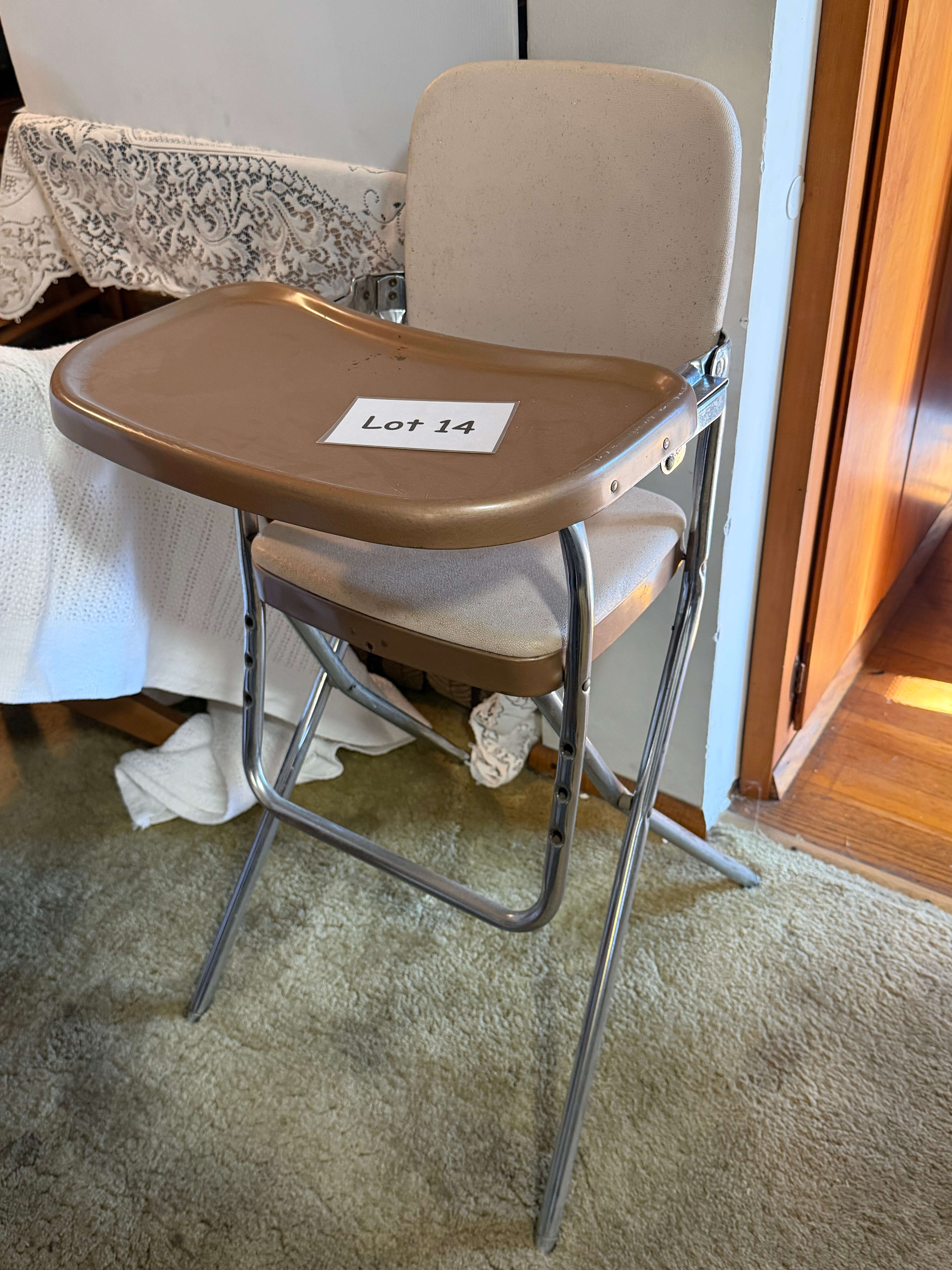 Mid-century High Chair w/ Metal Tray. 17"w x 17"d x 32"h