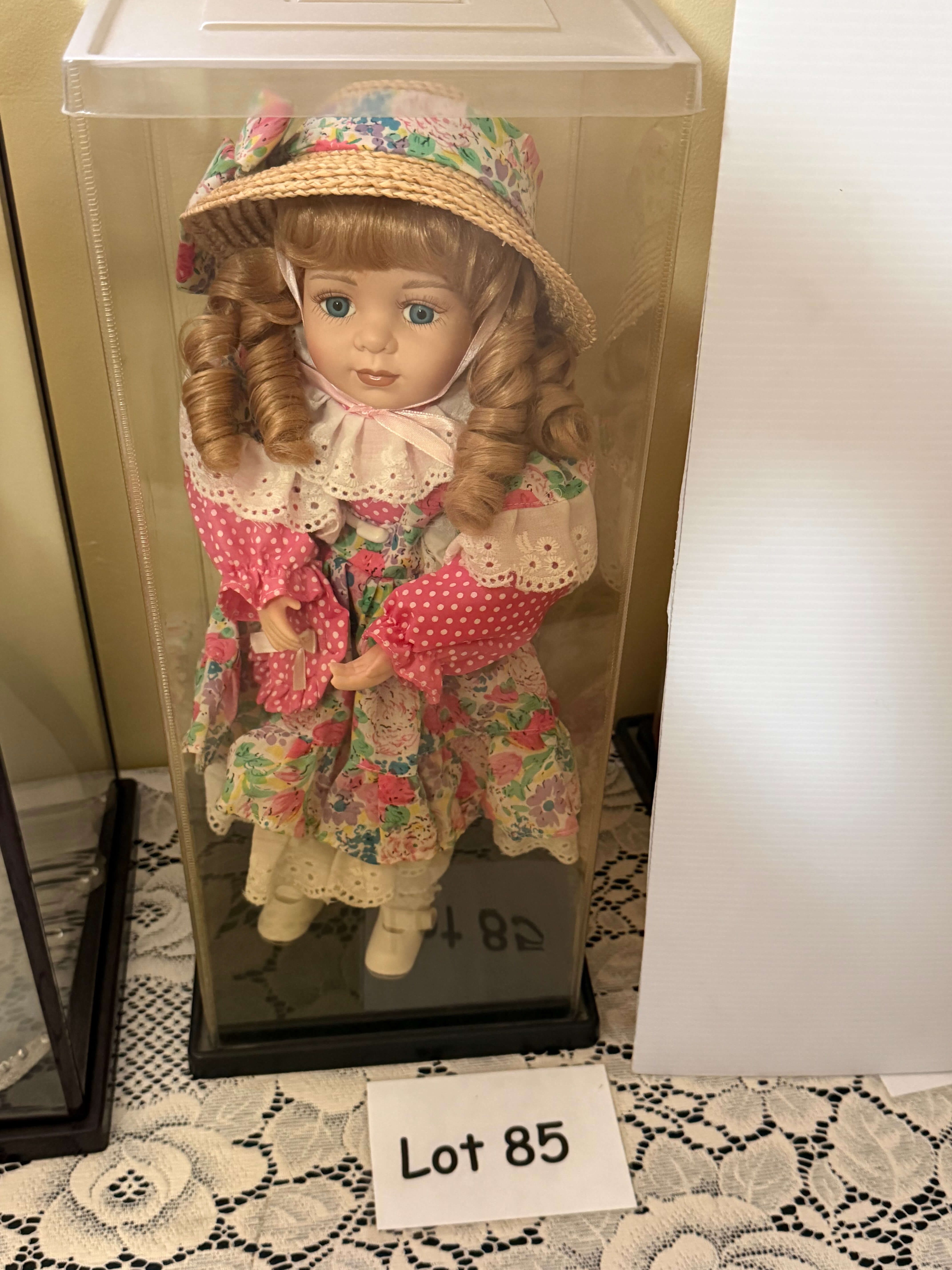 Porcelain Country Girl Doll, 16"h, in thin plastic case
