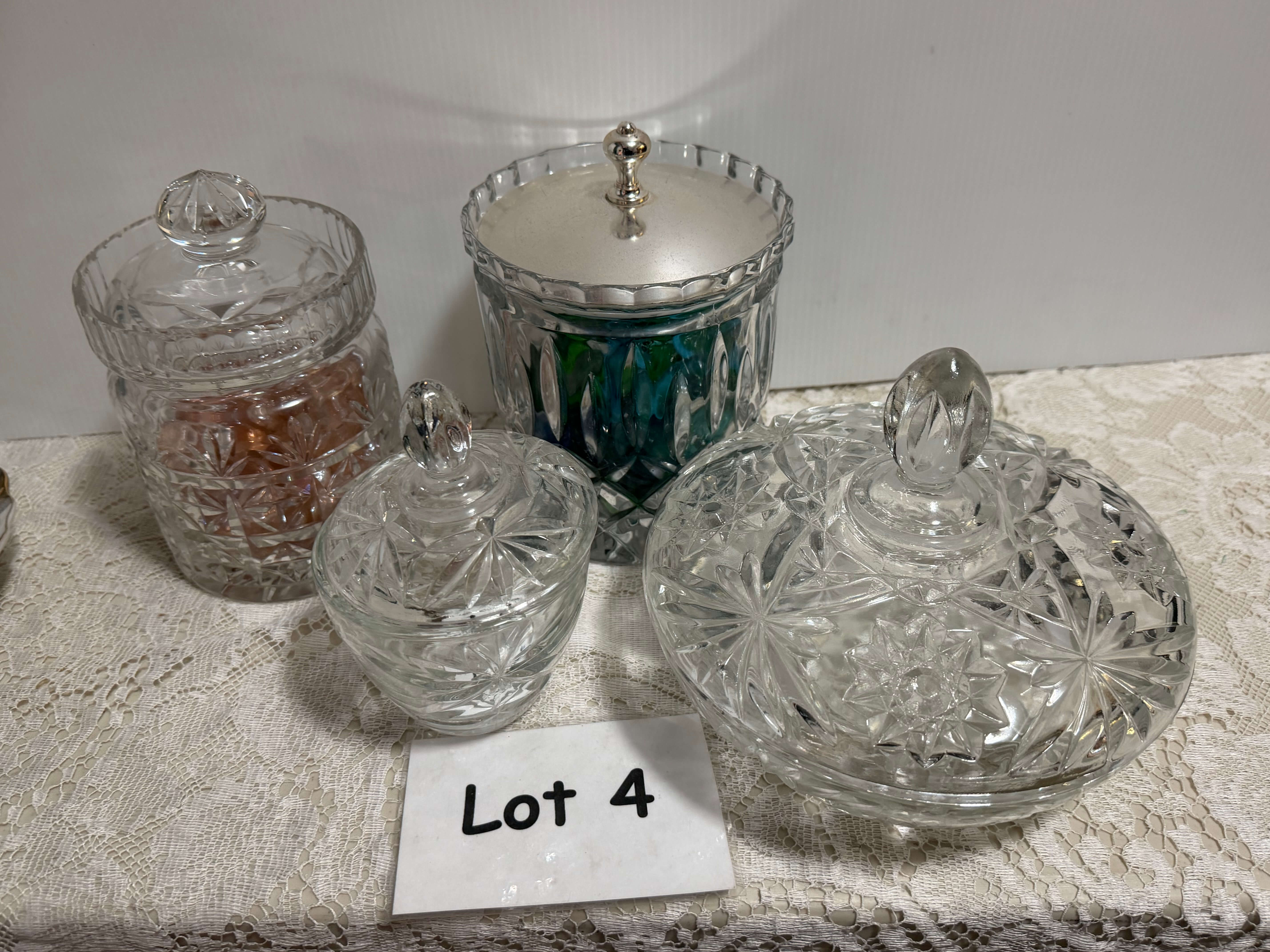 Variety of 4 Crystal Containters w/Lids, tallest is @ 6"h