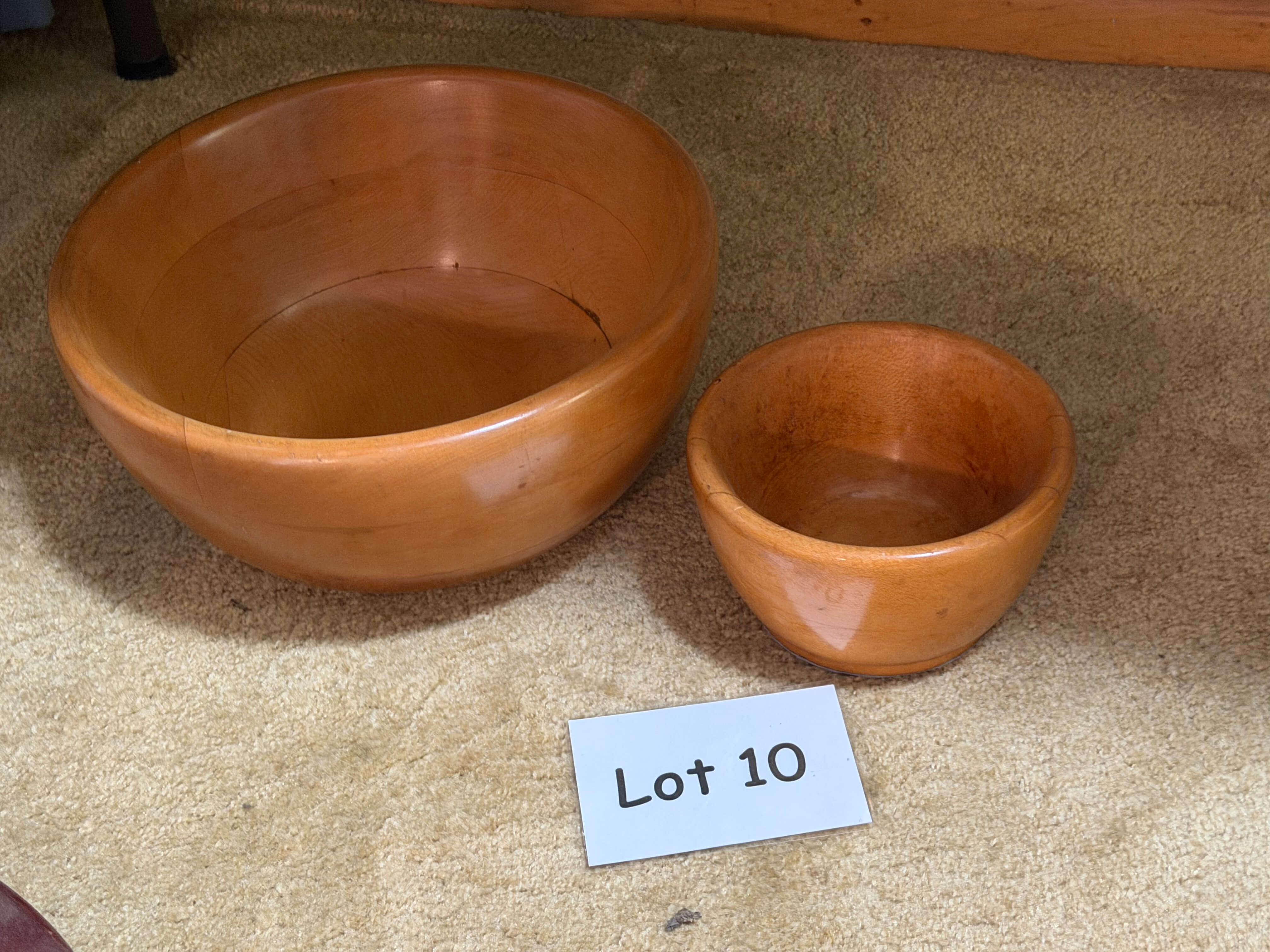 2 Wooden Bowls, smallest is 6" diameter and has felt on the bottom