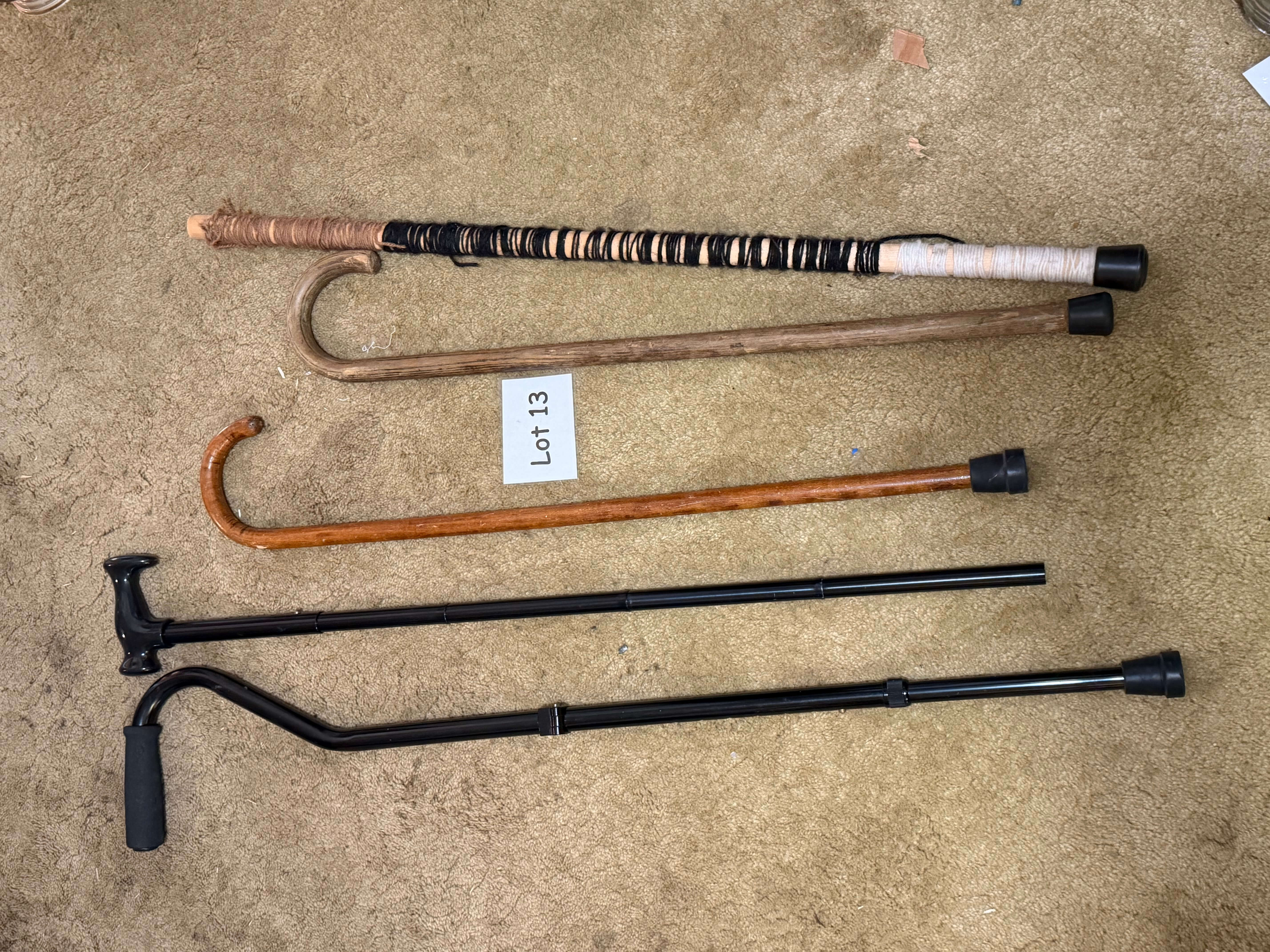 4 Canes (1 is adjustable) & 1 Walking Stick. Tallest is 38 1/2"h