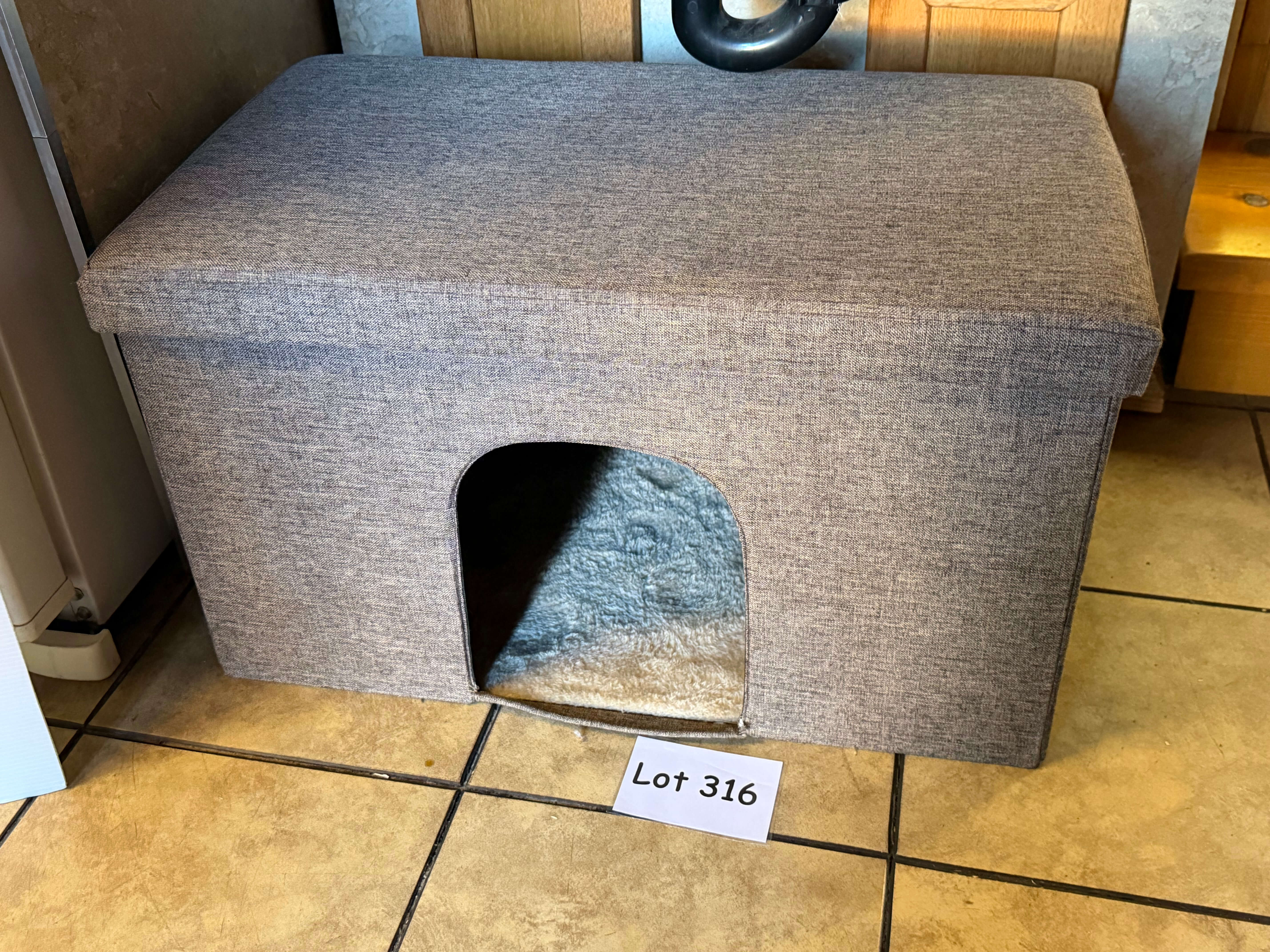 Fabric Covered Lidded Dog Bed, 26"w x 15"d x 14 1/2"h. Gently used