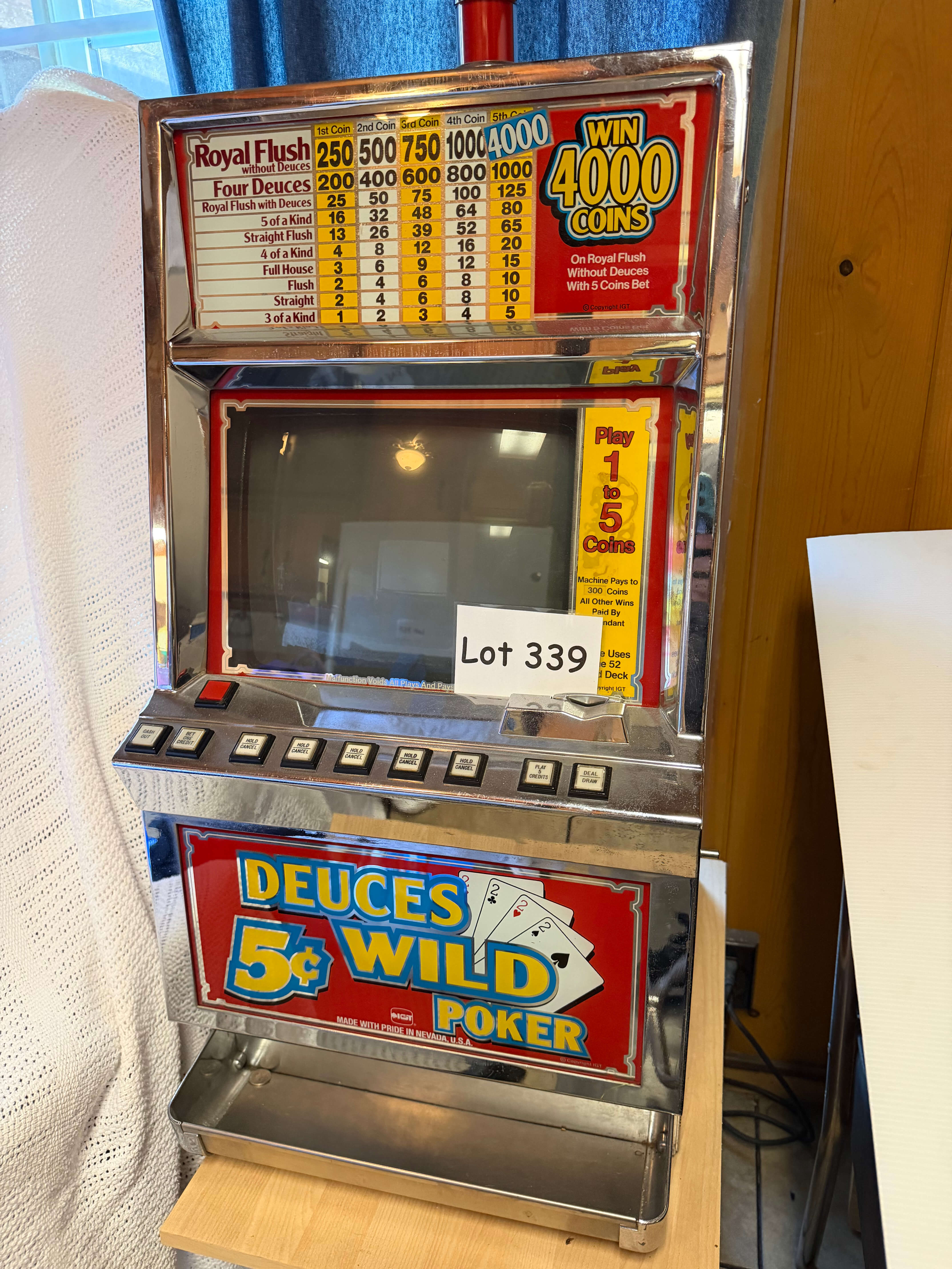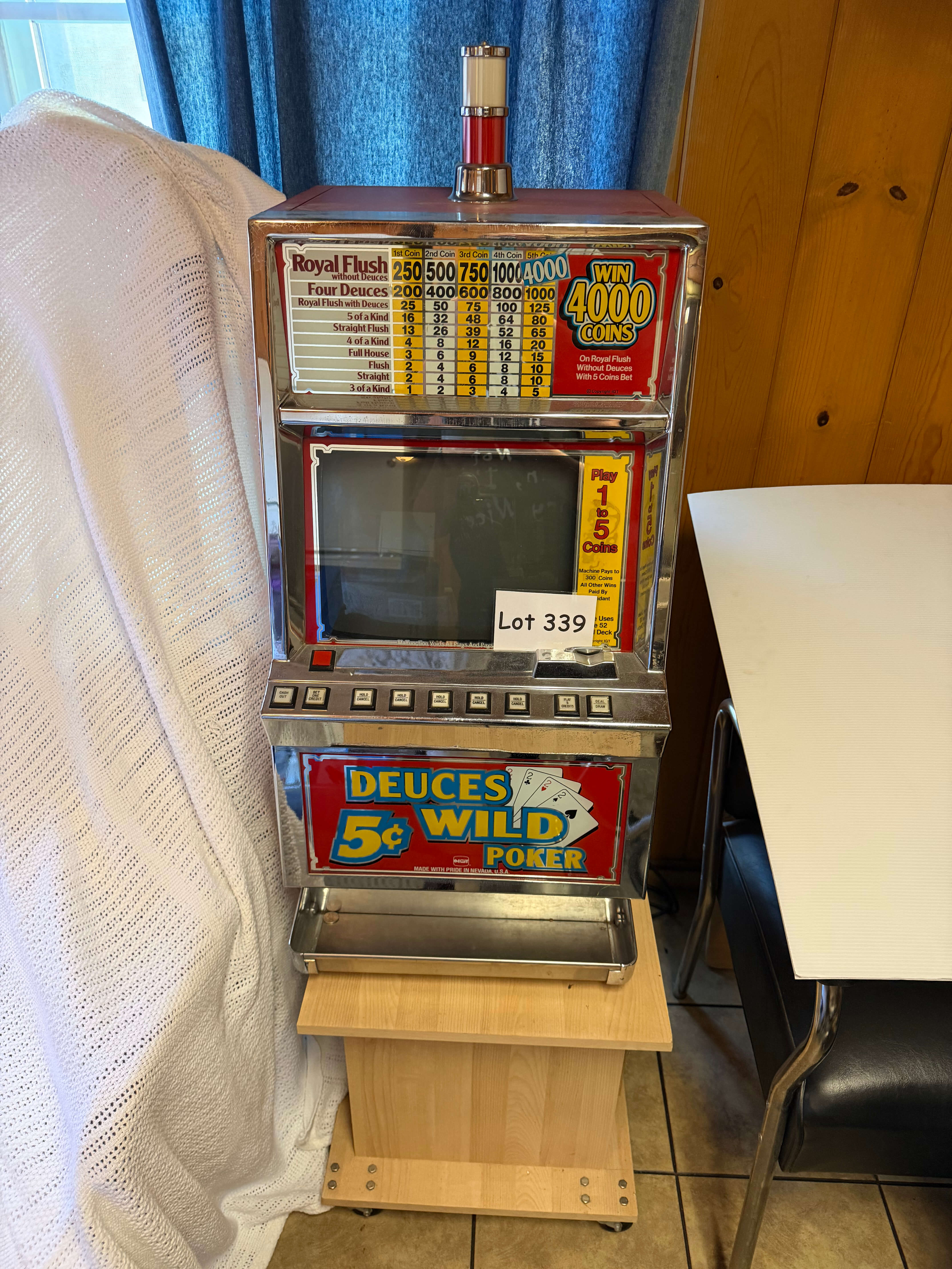 Authentic Video Poker Gaming Machine. 17"w x 20"d x 33 1/2"h, on rolling stand