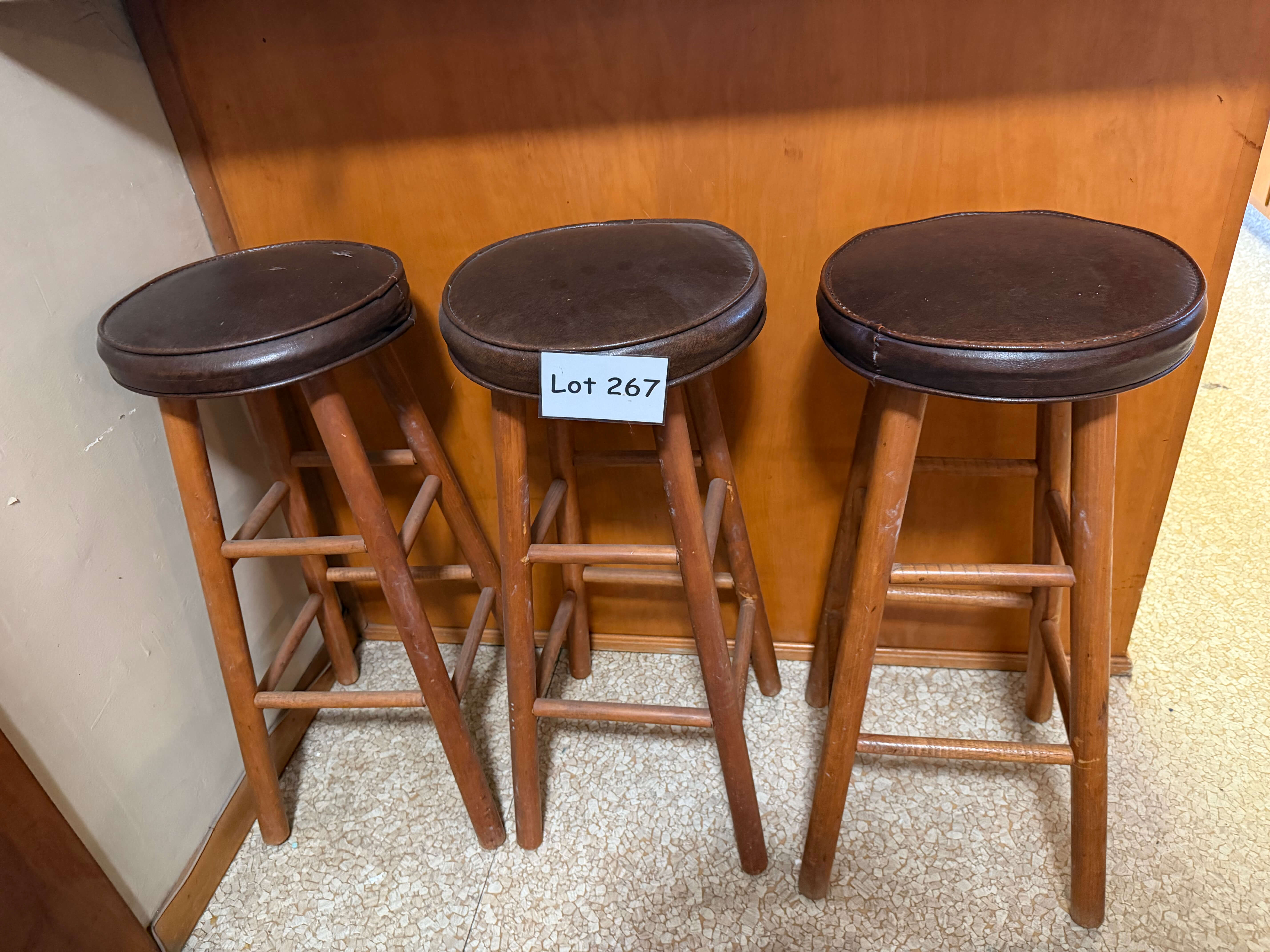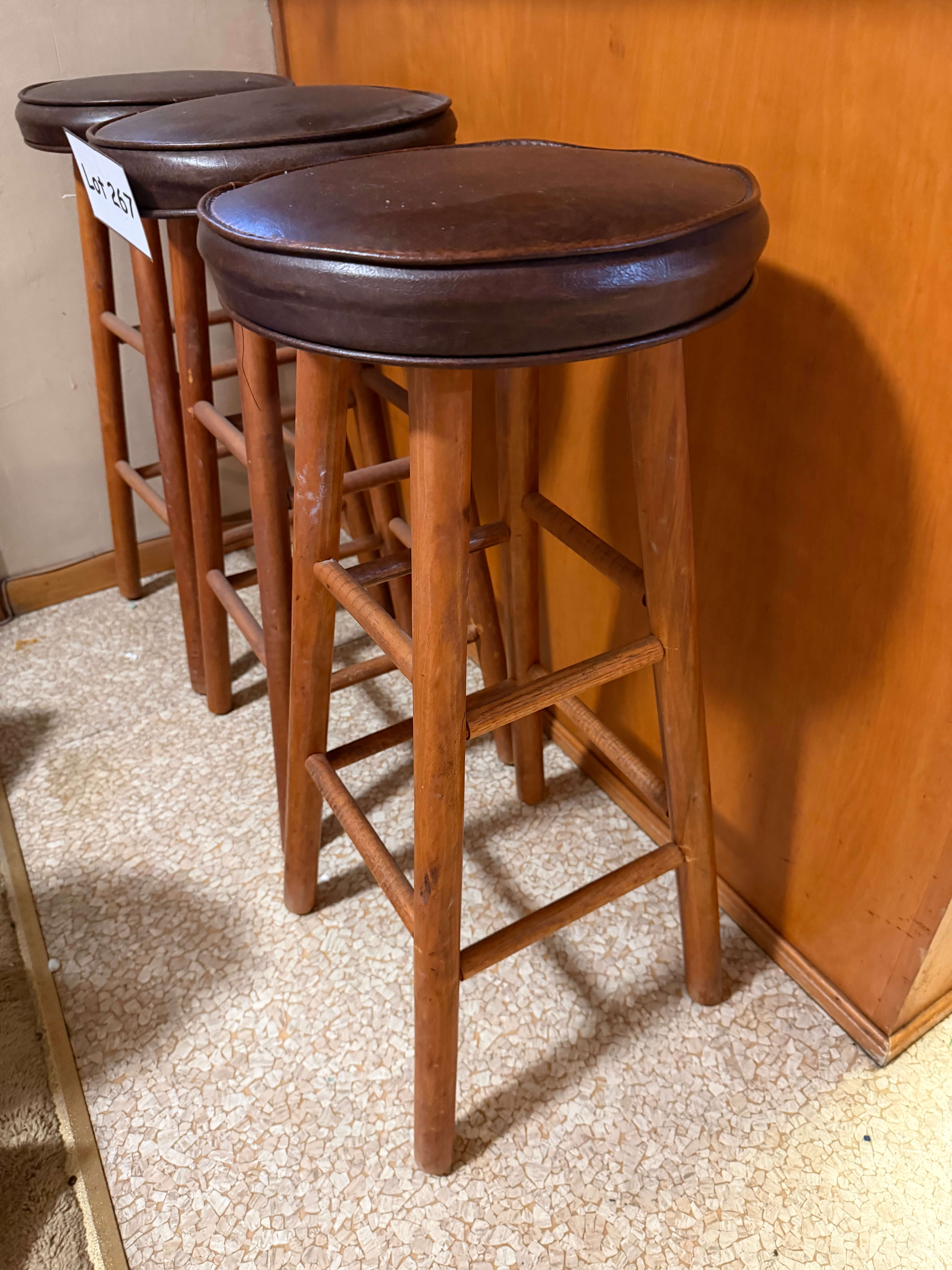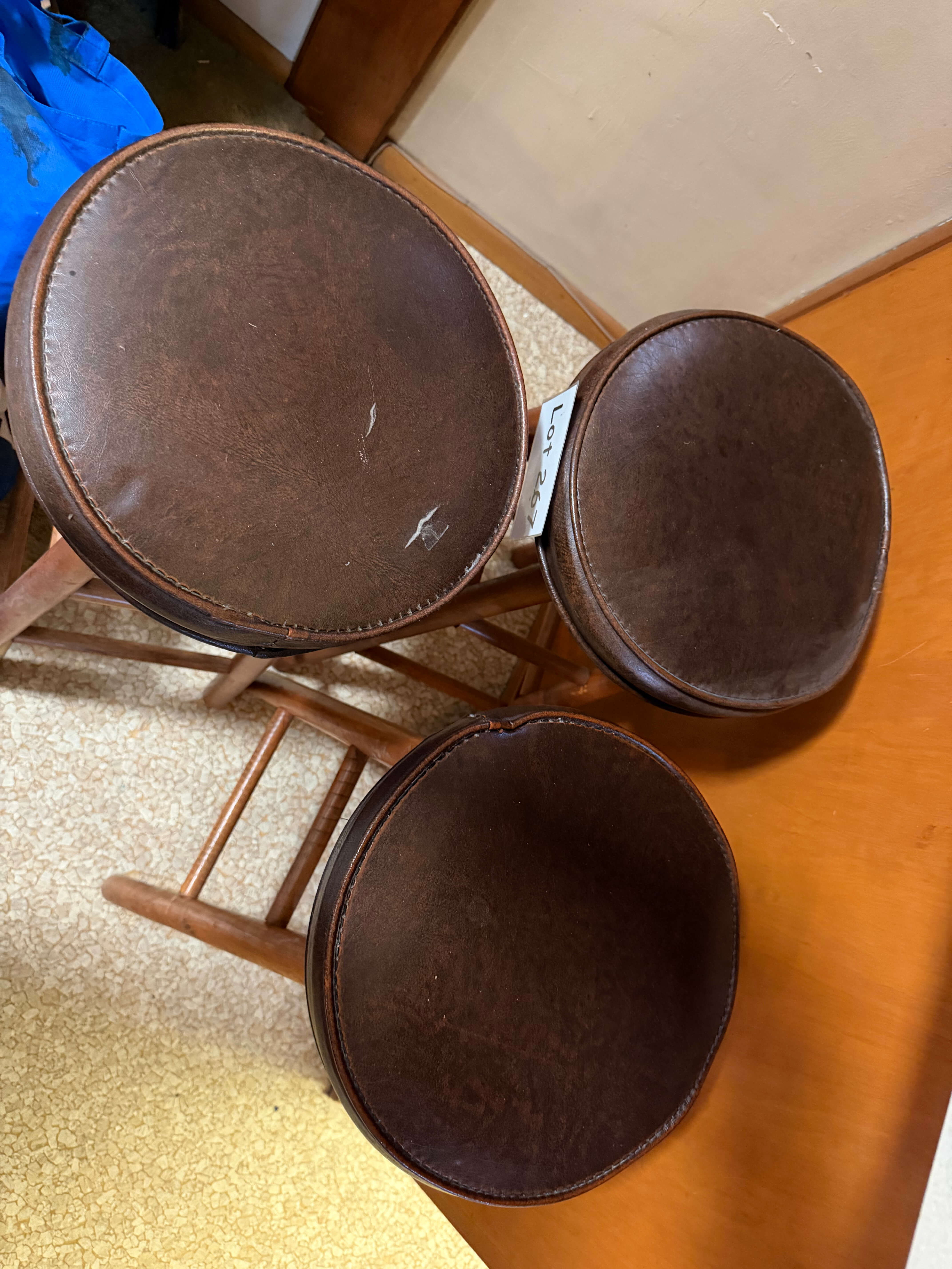 Set of 3 Wooden Stools w/ Vinyl Seats, 12 1/2" diam x 29"h