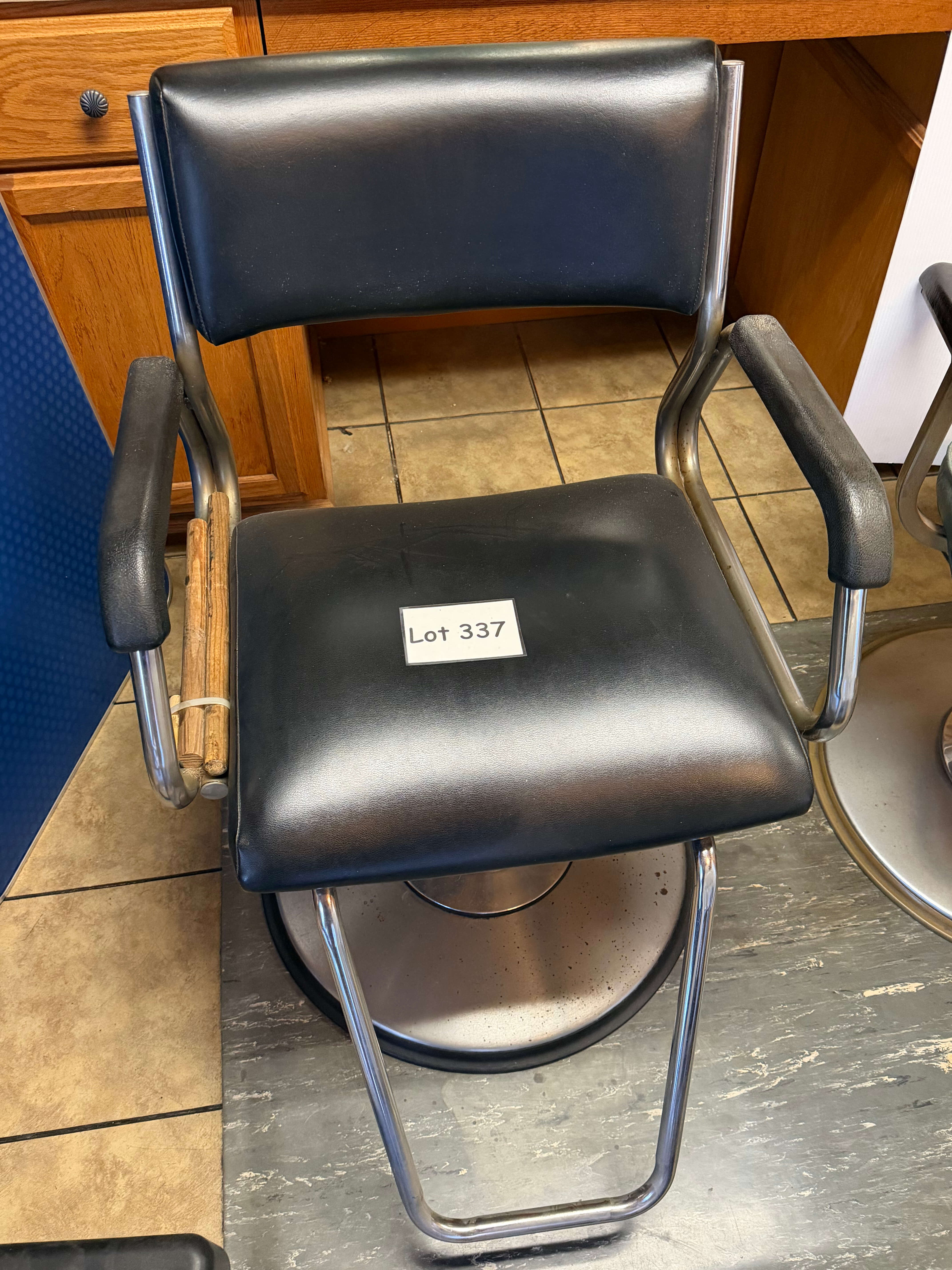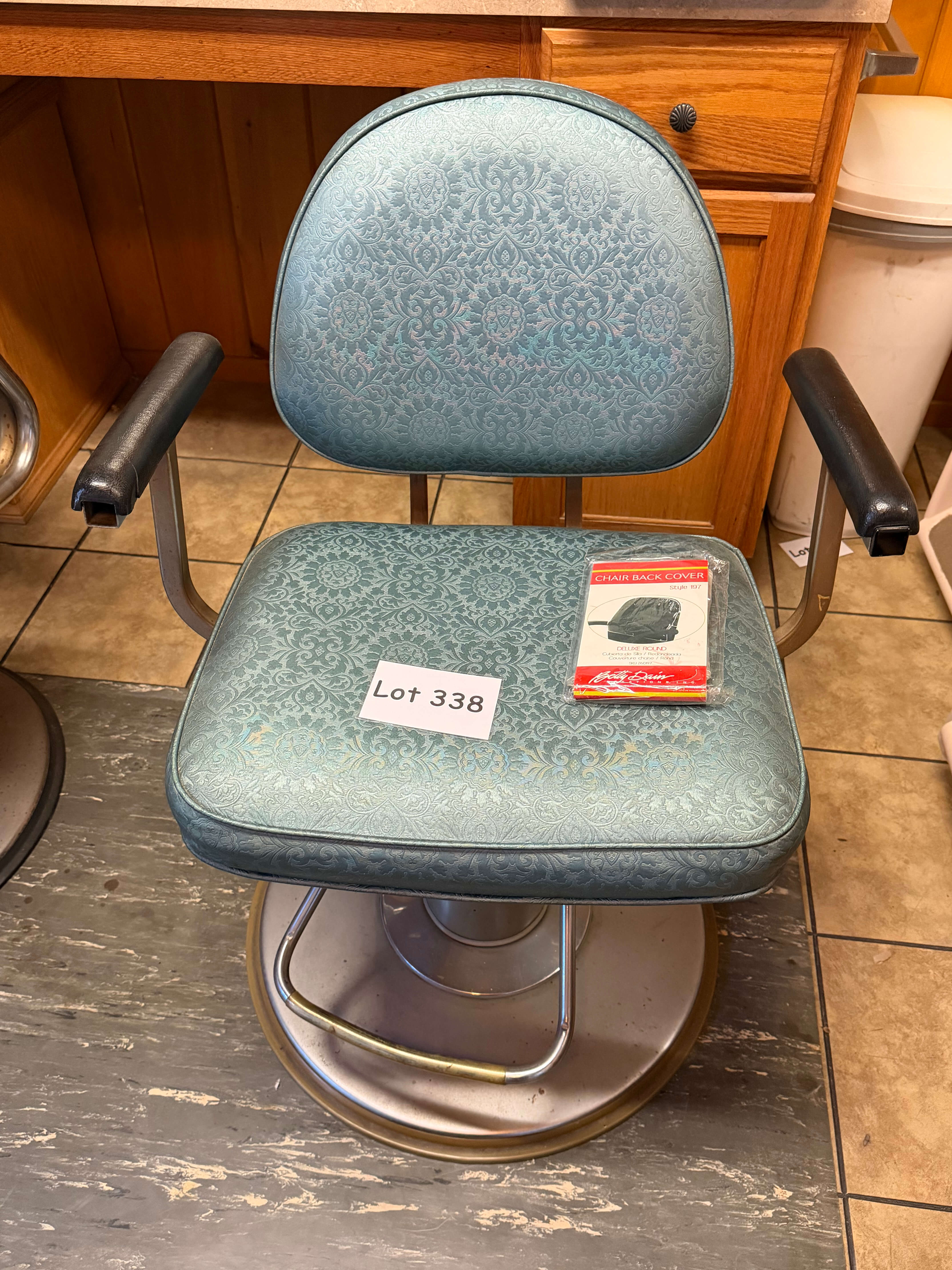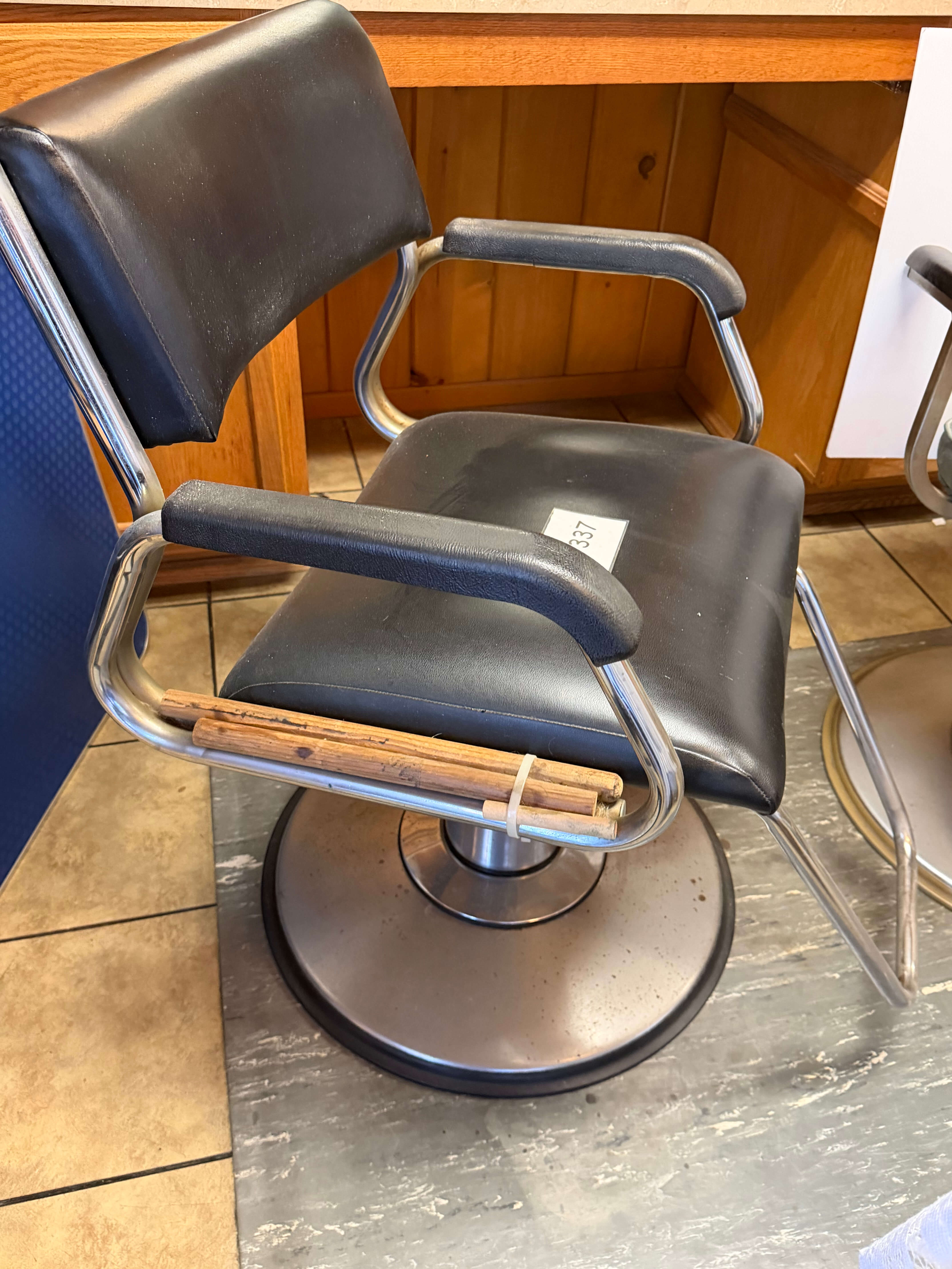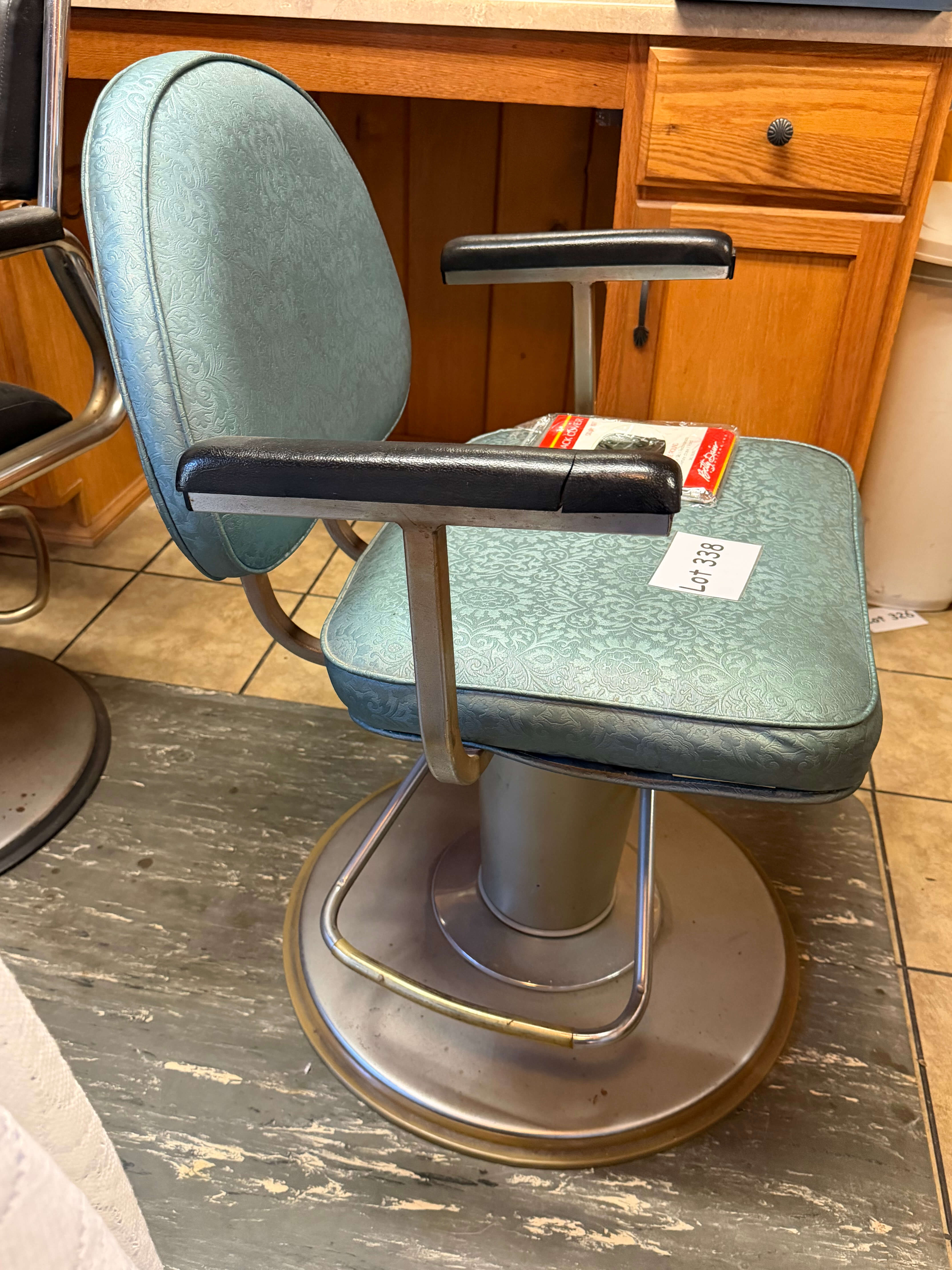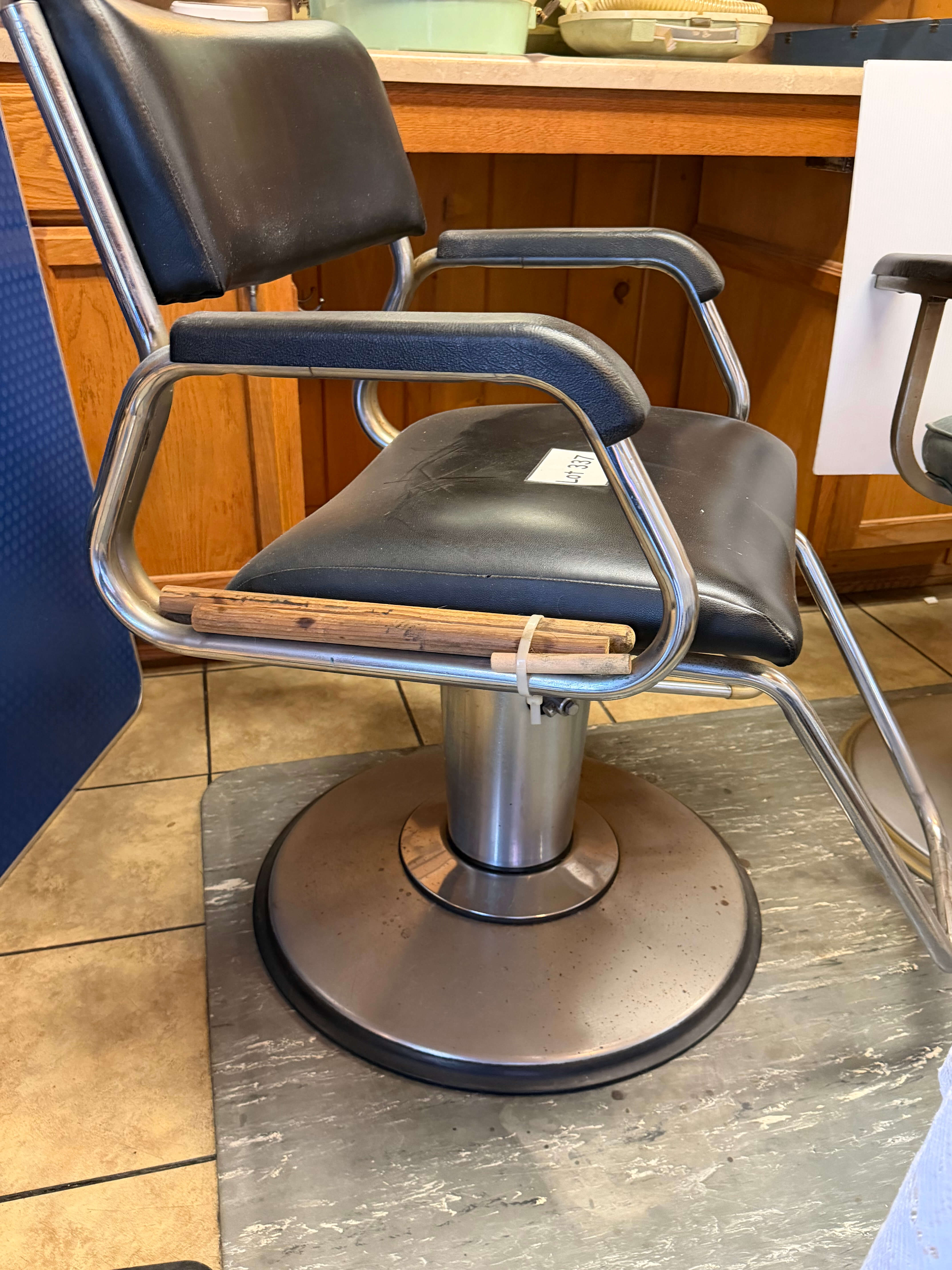Vintage Hair Stylist's Chair, 25"w x 19"d x 38"h. Some rust on the base & 1 arm has been braced