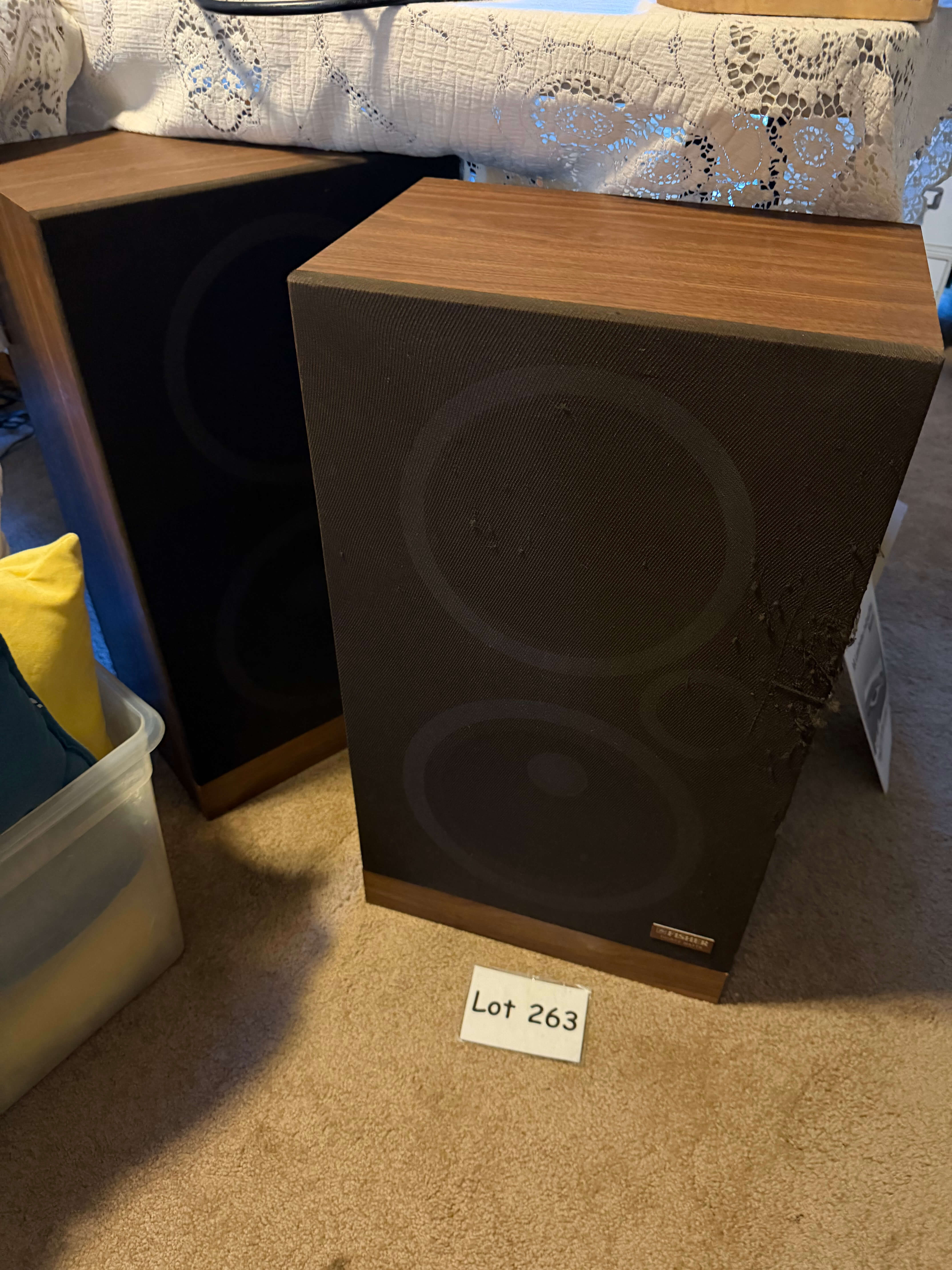 Set of 2 Fisher Speakers, 14"w x 9"d x 24"h, some scratches in the fabric
