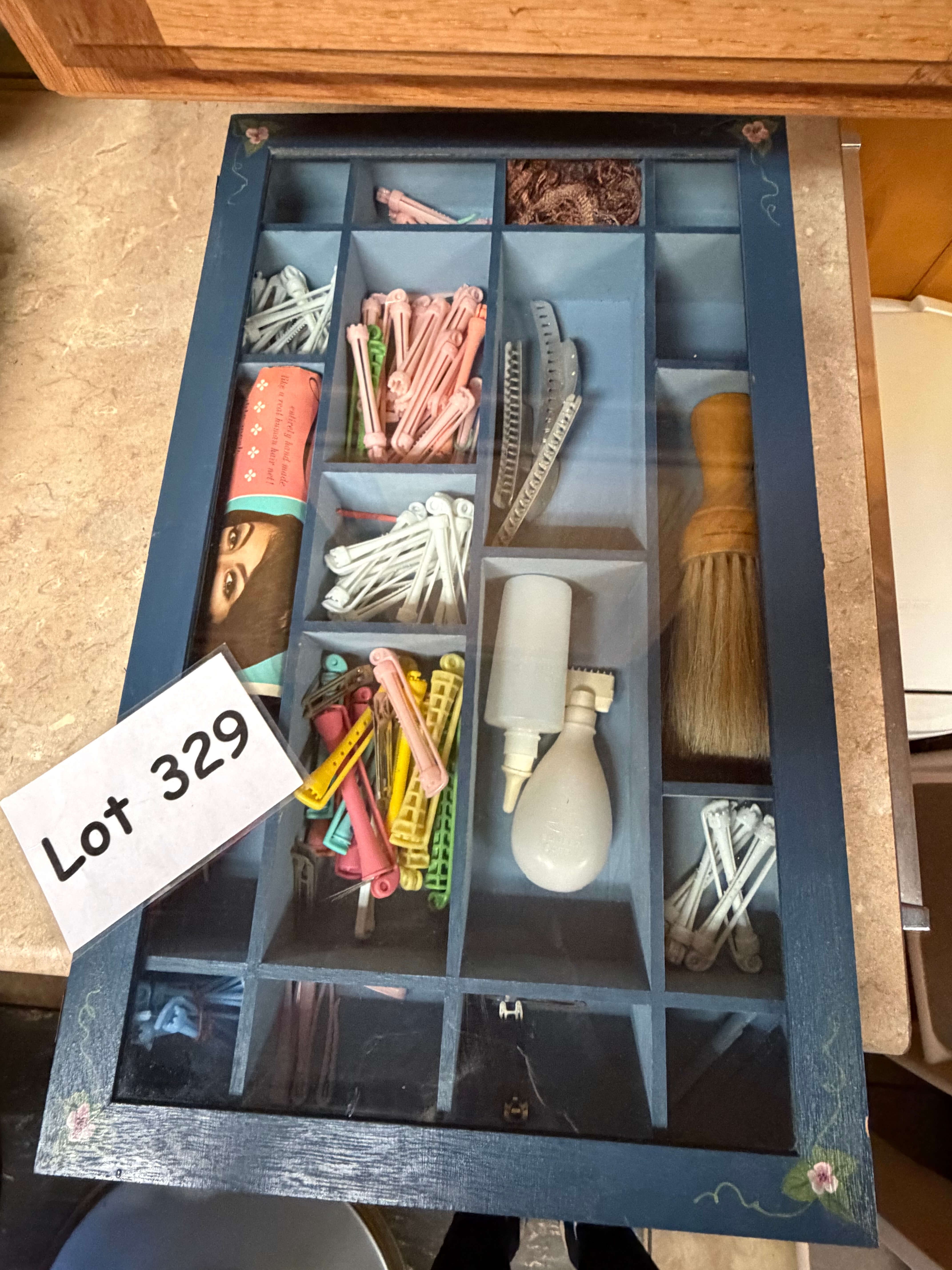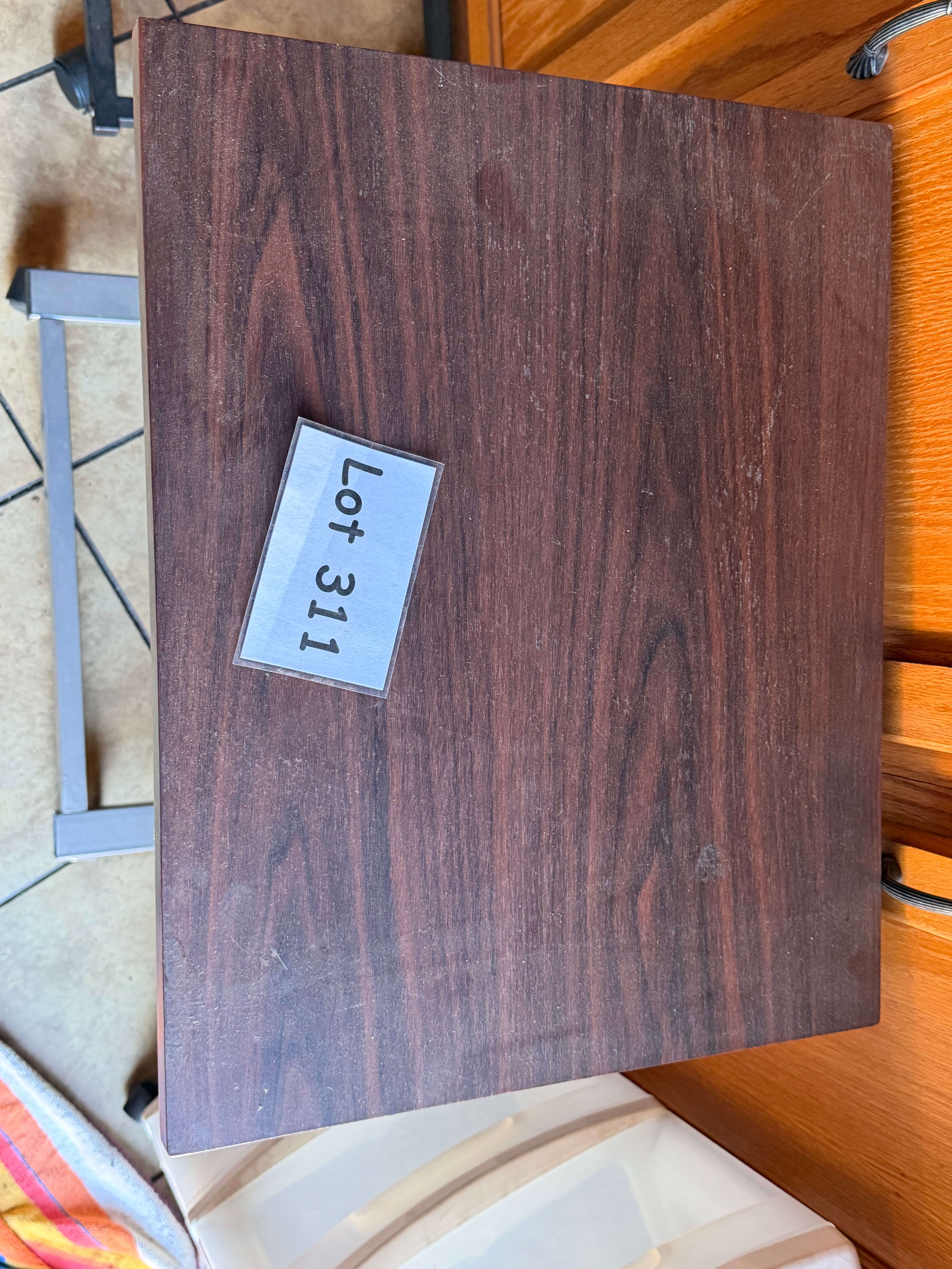 Decorative Storage Box (filled with perm equipment). 12"w x 20"d x 2 1/2"h