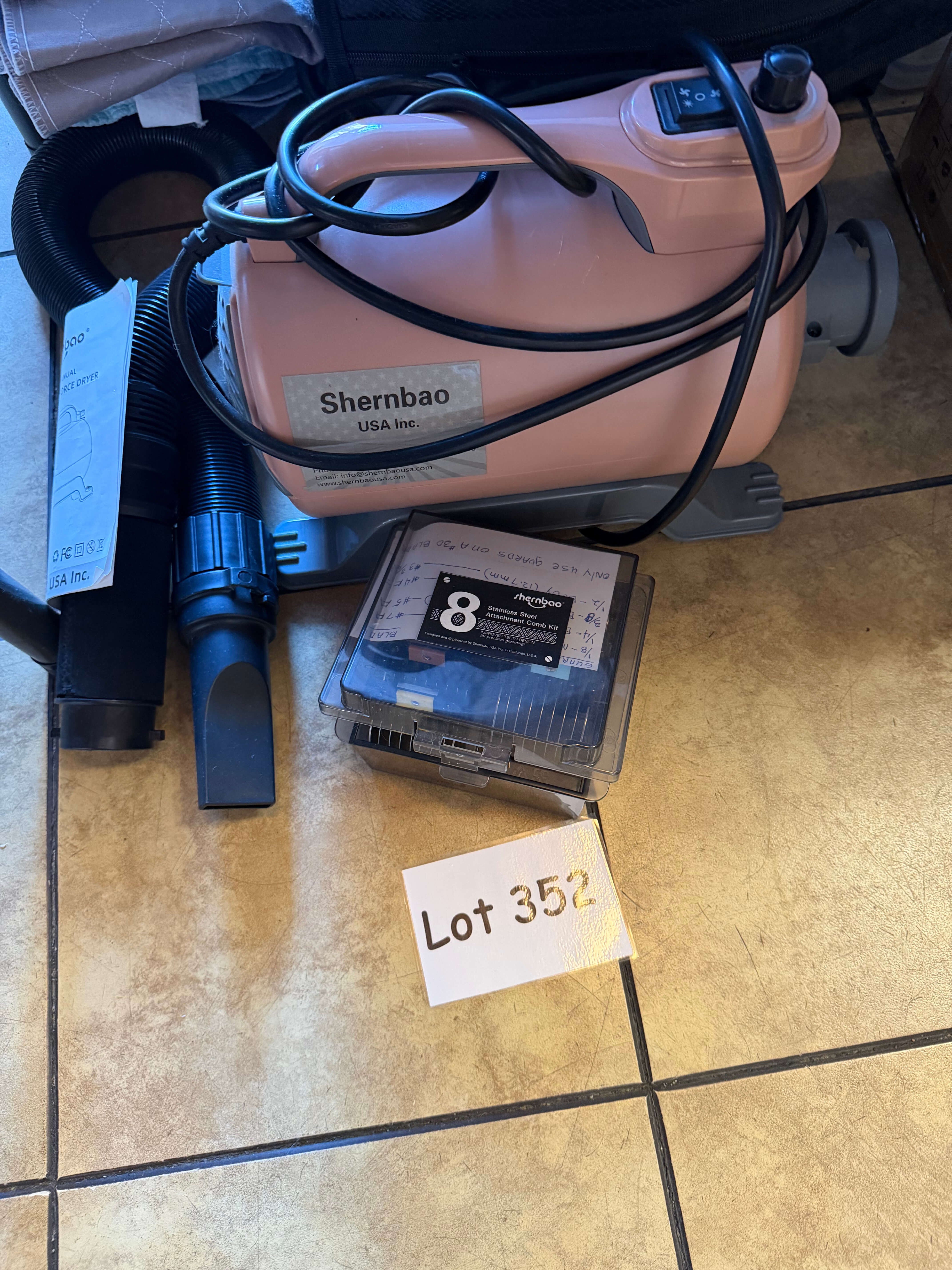 Shernbao Pet Grooming System -- clippers, vacuum, & set of clipper heads.