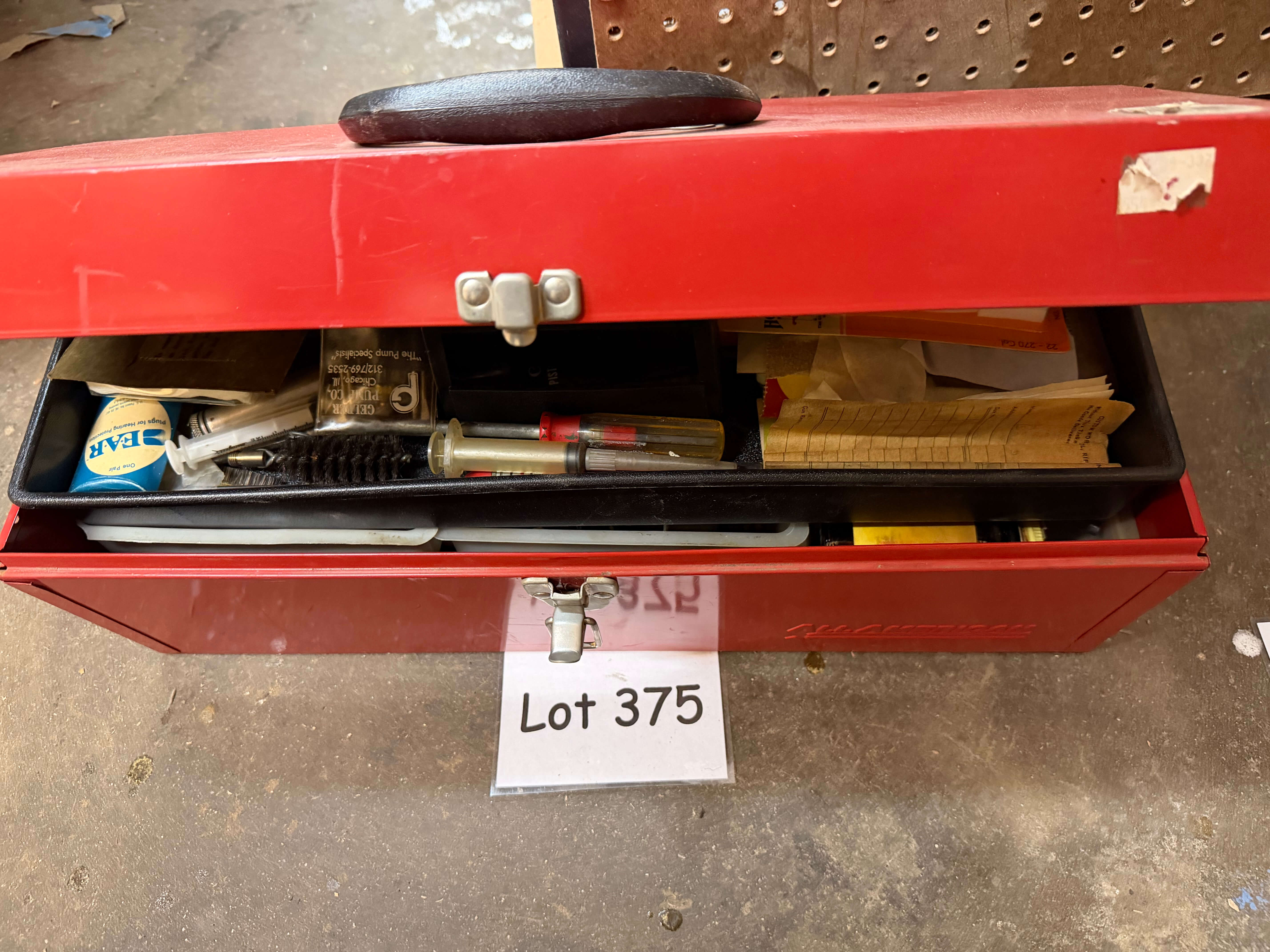 Tool Box with miscellaneous. gun cleaning equipment
