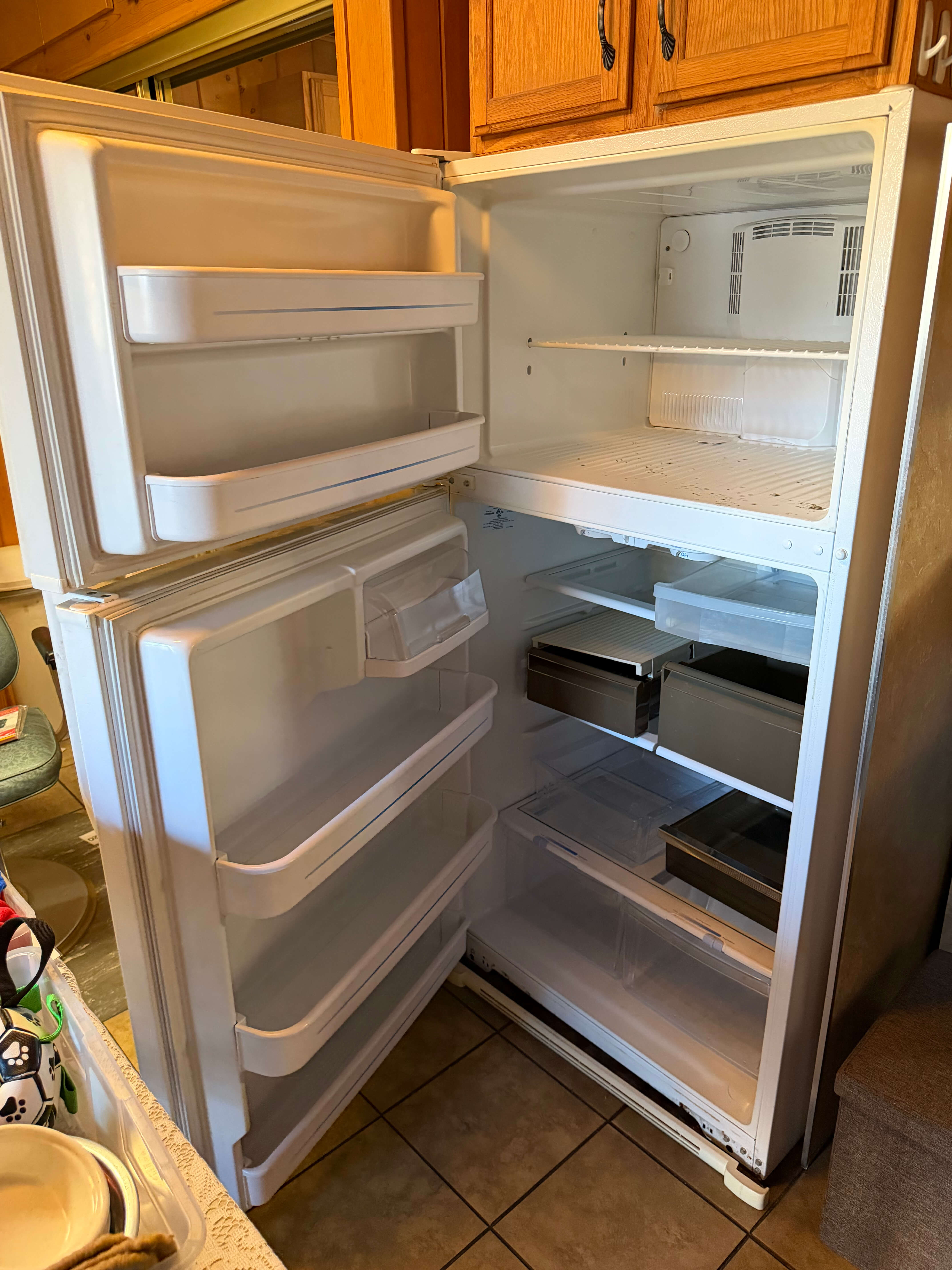 GE Refrigerator/Freezer, 33"w x 31"d x 67"h. Works, but the freezer has a few spots of mold (it has been unplugged)