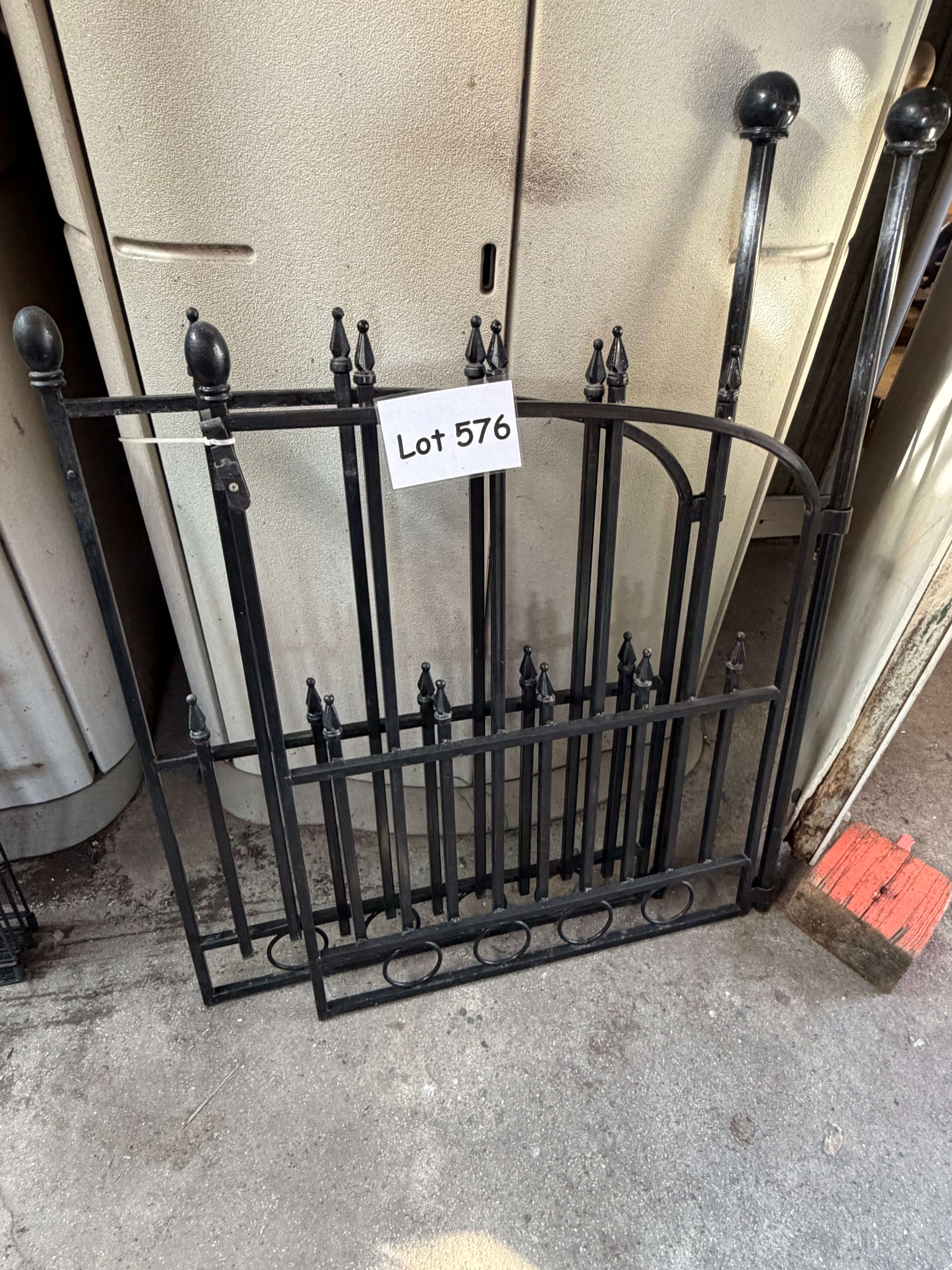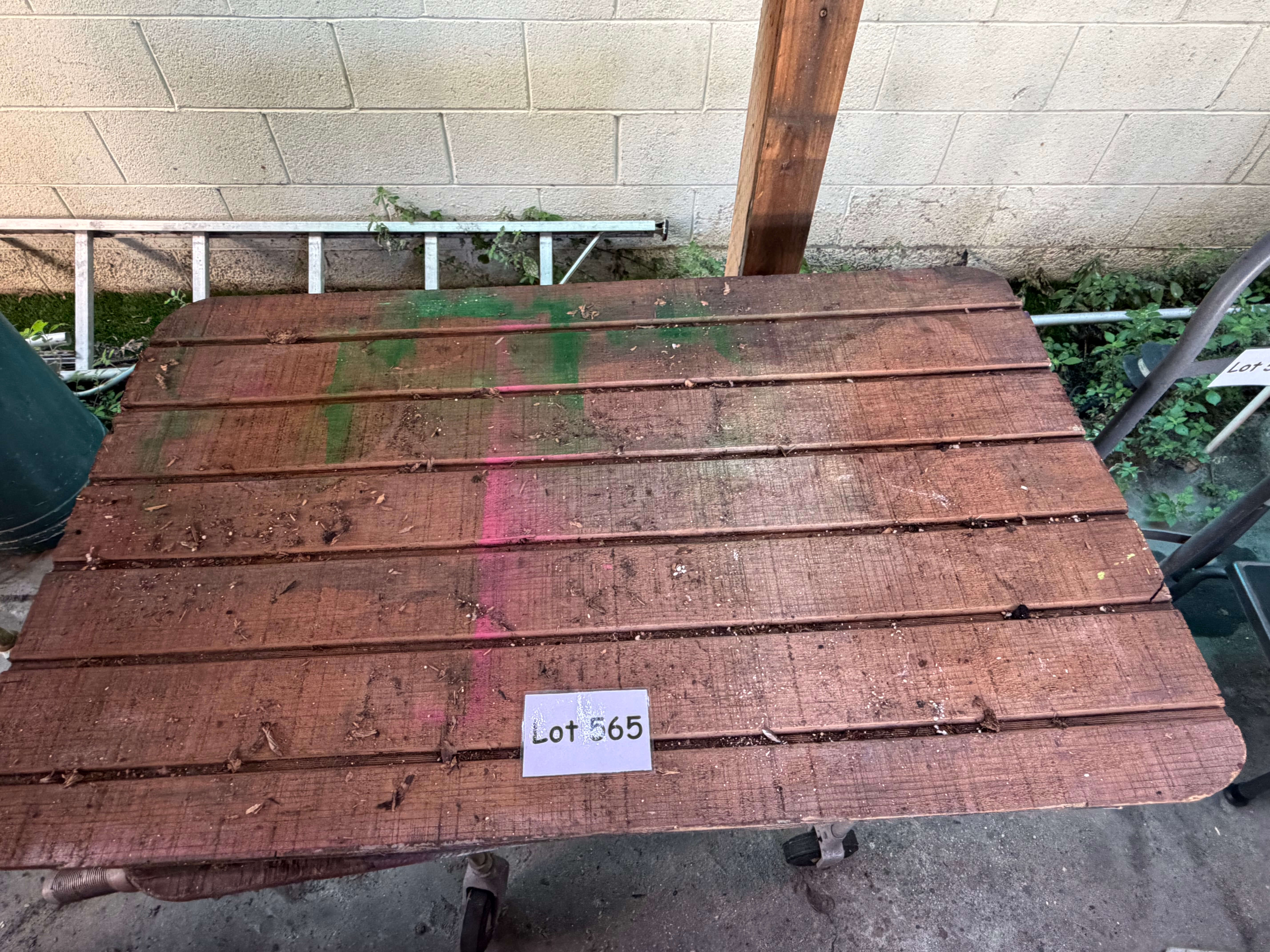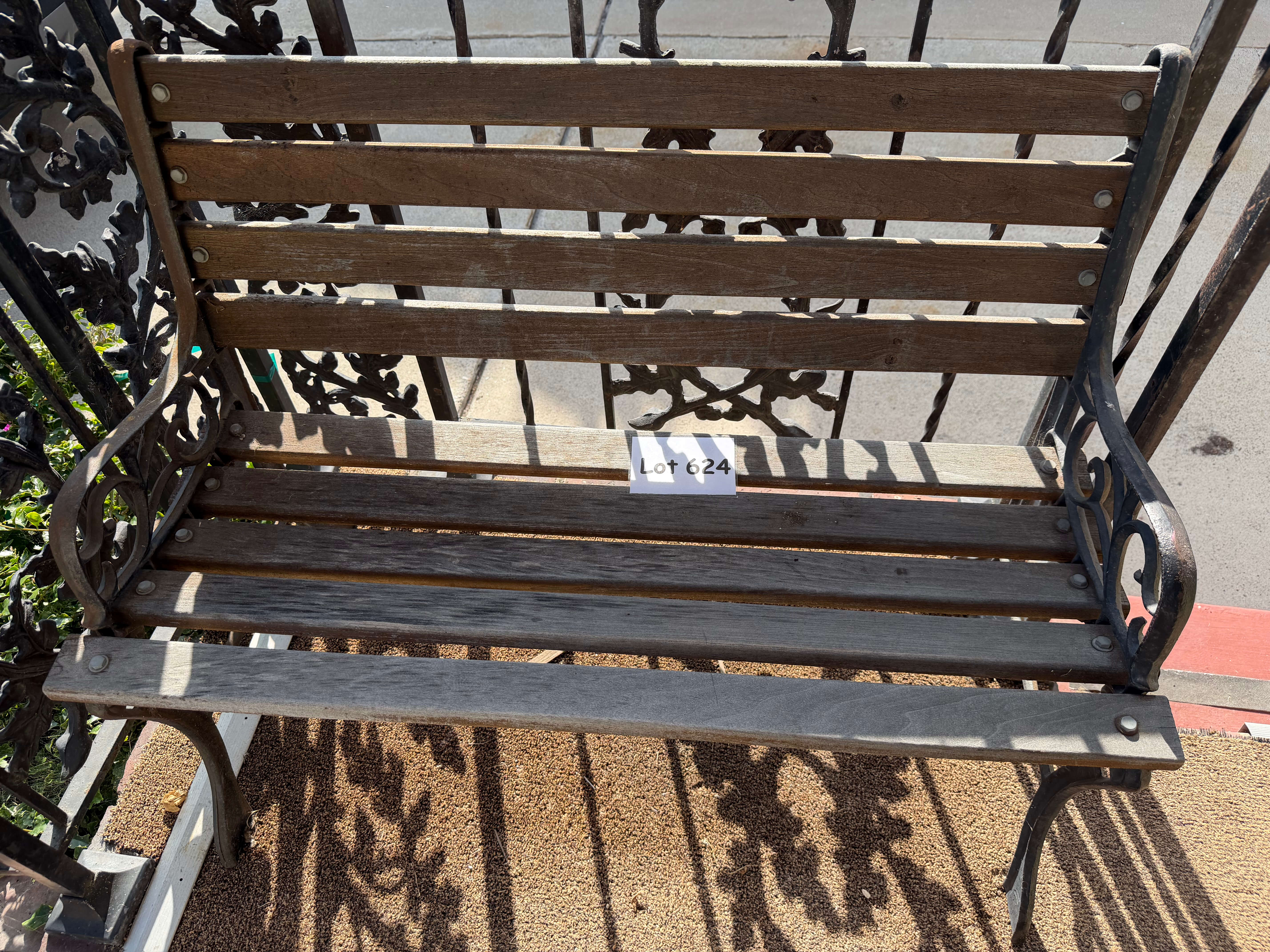 Small Cast Metal & Wood Patio Bench, 36"w x 20"d x 15"h seat. Sturdy, but wood needs to be refinished