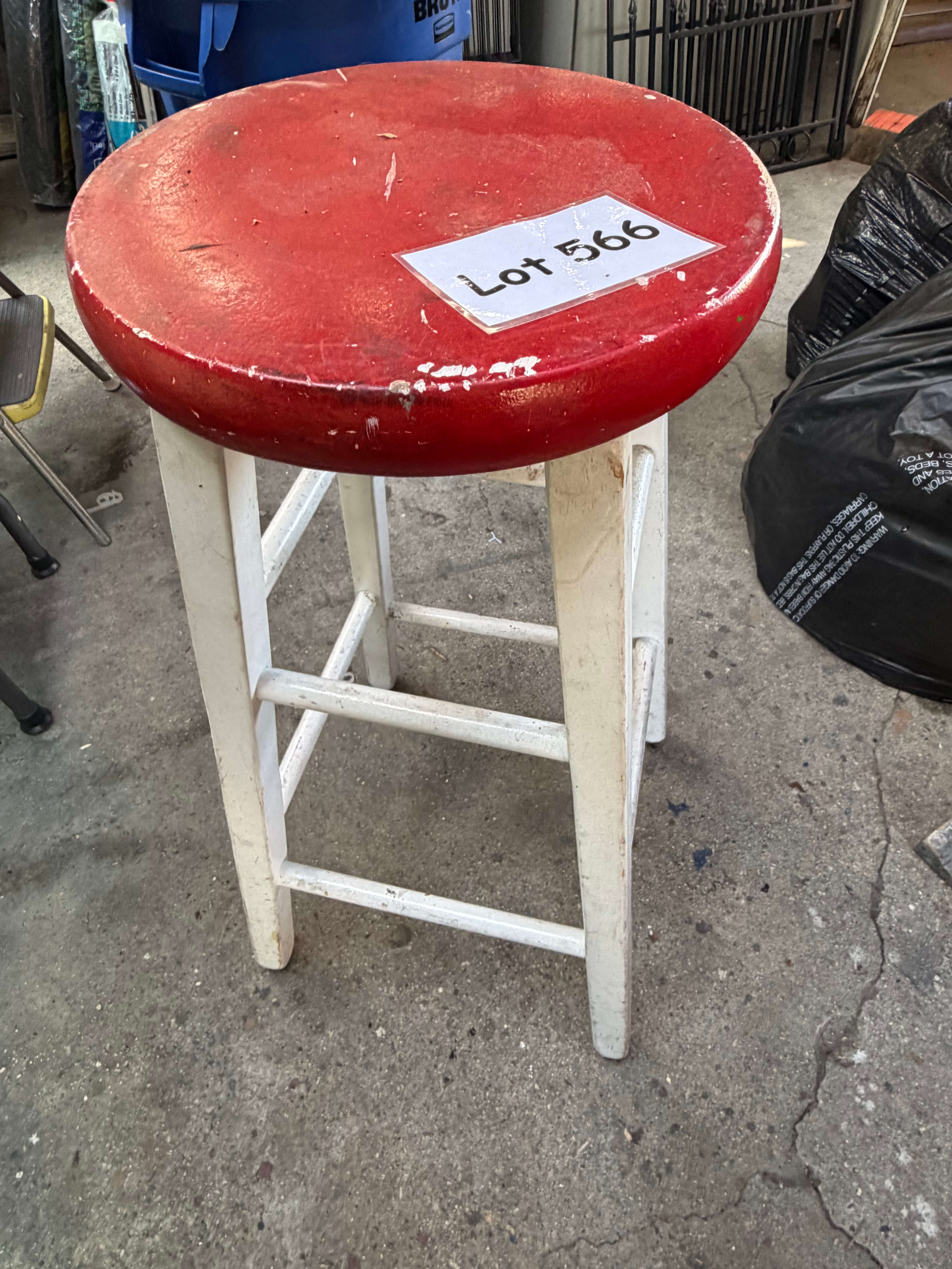 Wooden Stool, 13" diameter x 31"h. Paint is chippy.