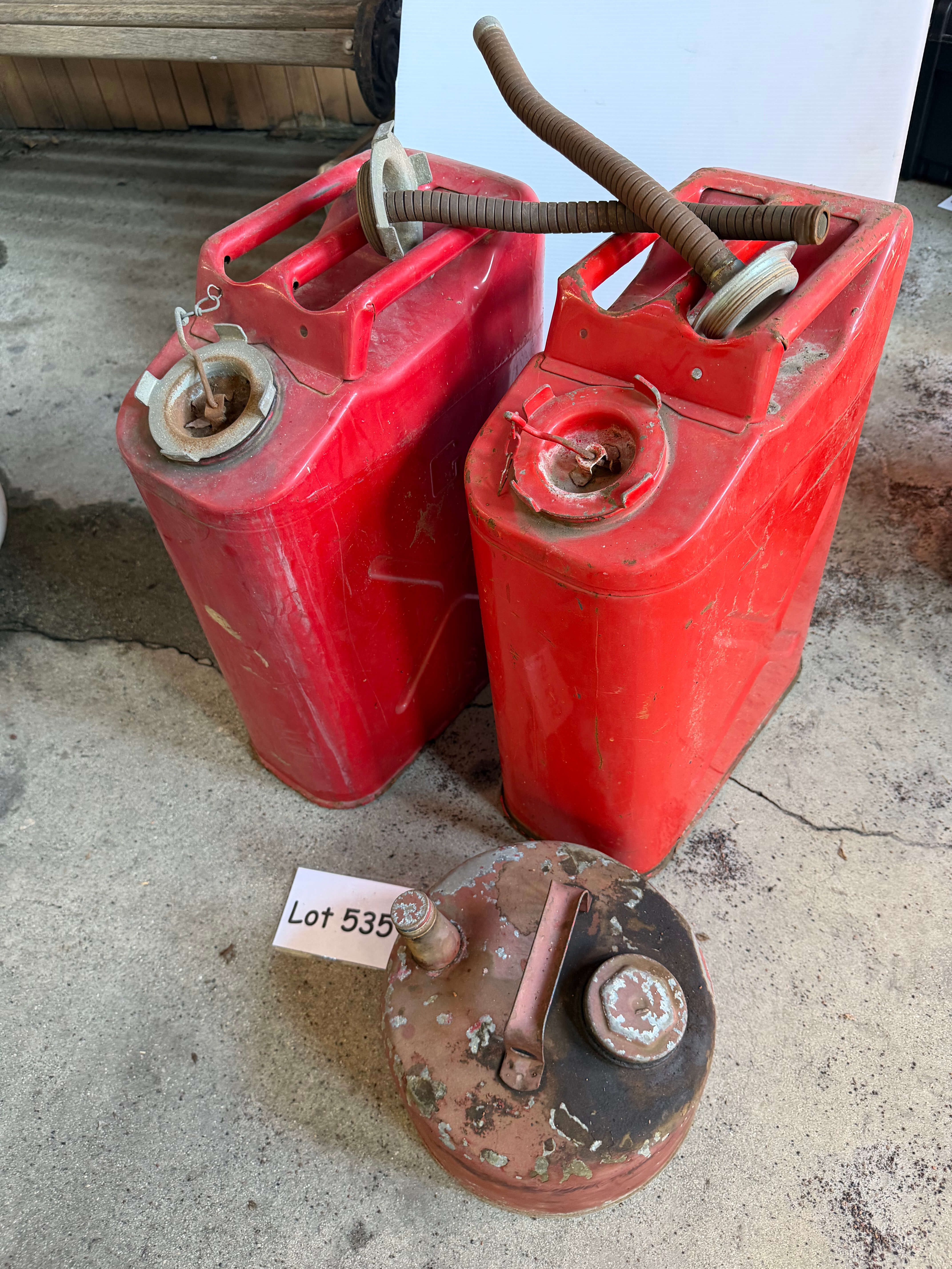 3 Vintage Metal Gas Cans -- (2) 5 Gal & (1) 1 Gal