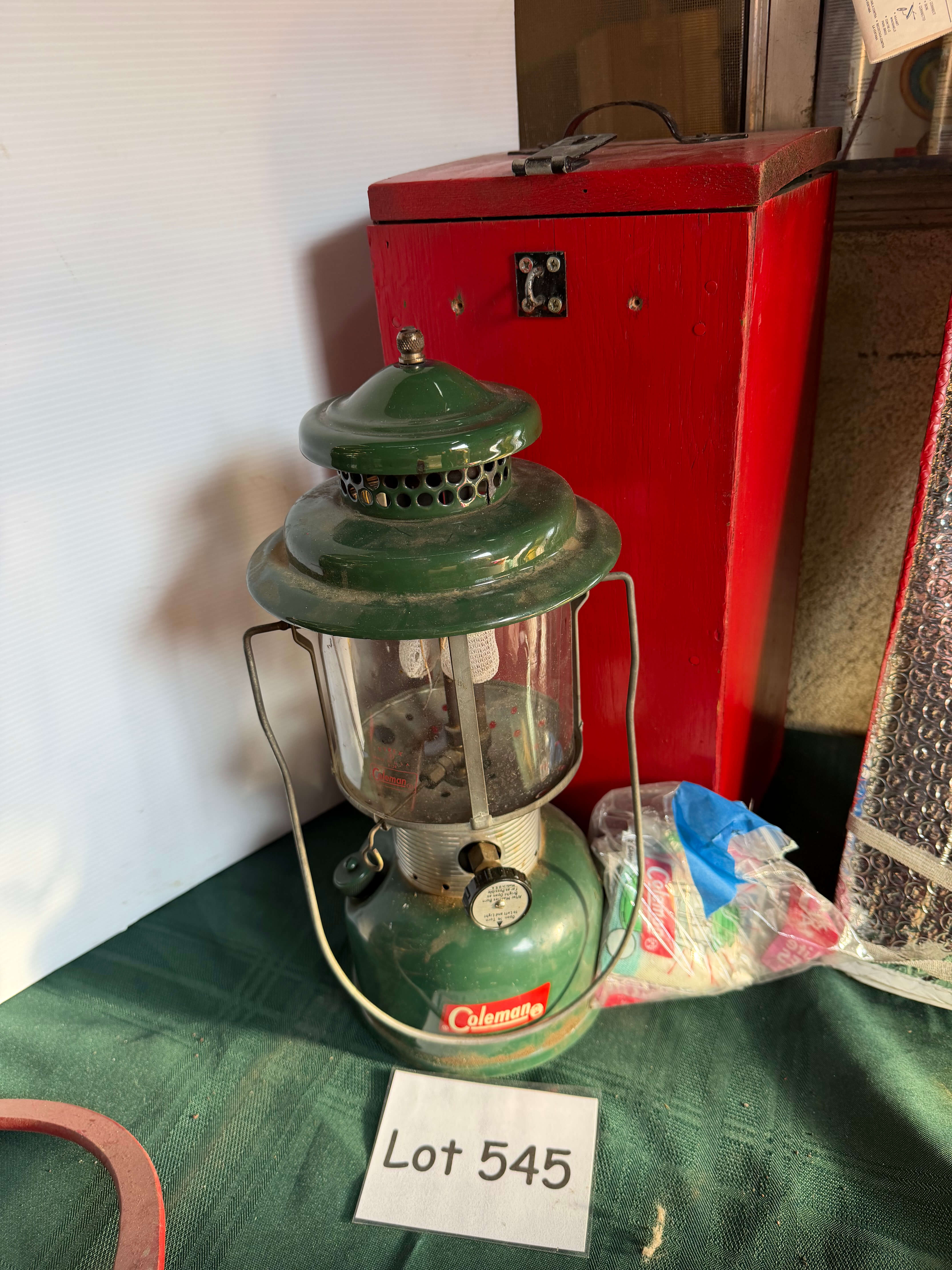 Vintage Coleman Gas Lantern, 16"h. Comes with Wooden Case & pack of mantles