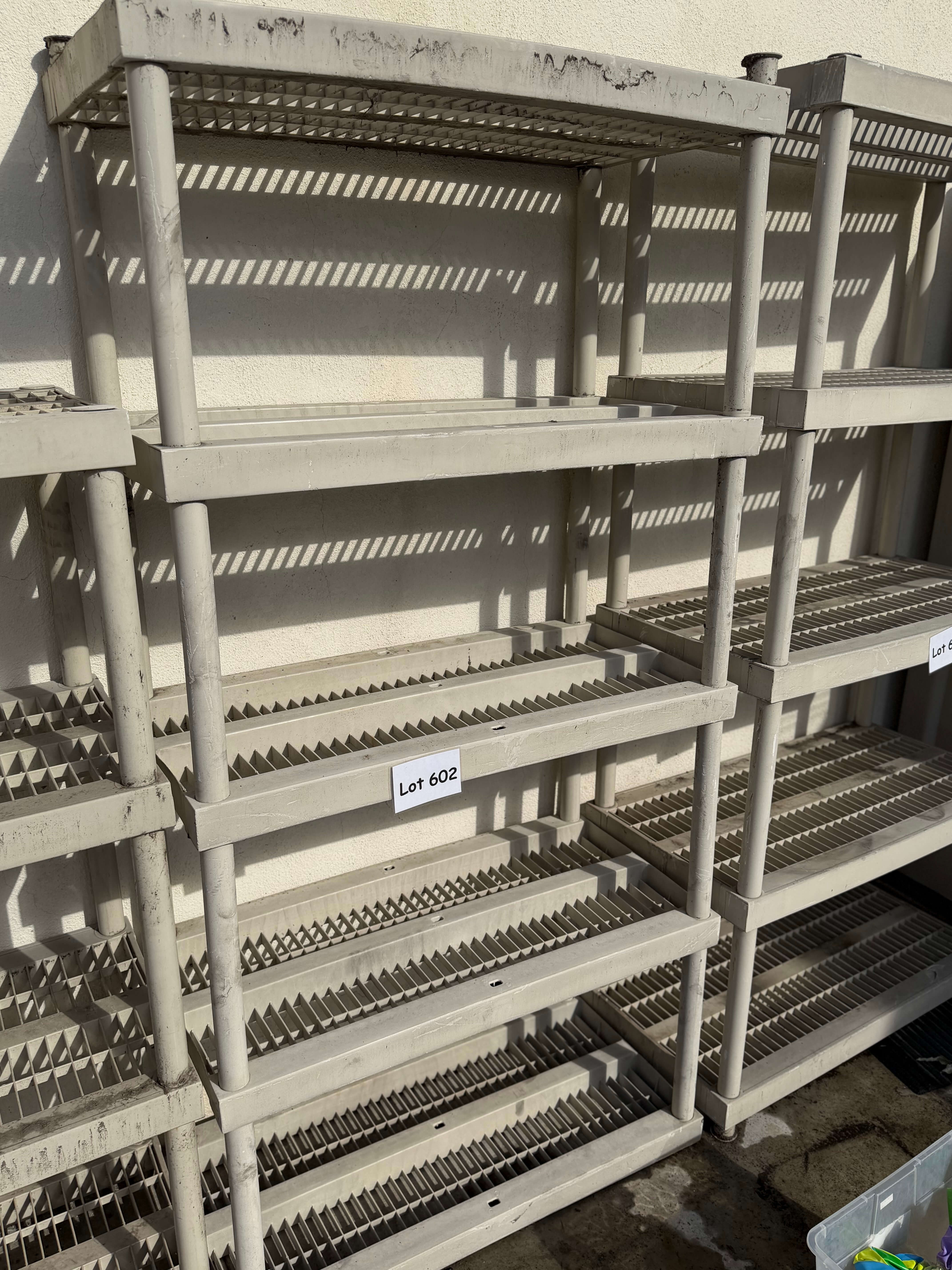 Plastic Portable Shelf Unit, 36"w x 15"d x 72"h. Sun damaged & needs cleaning (but is still functional)