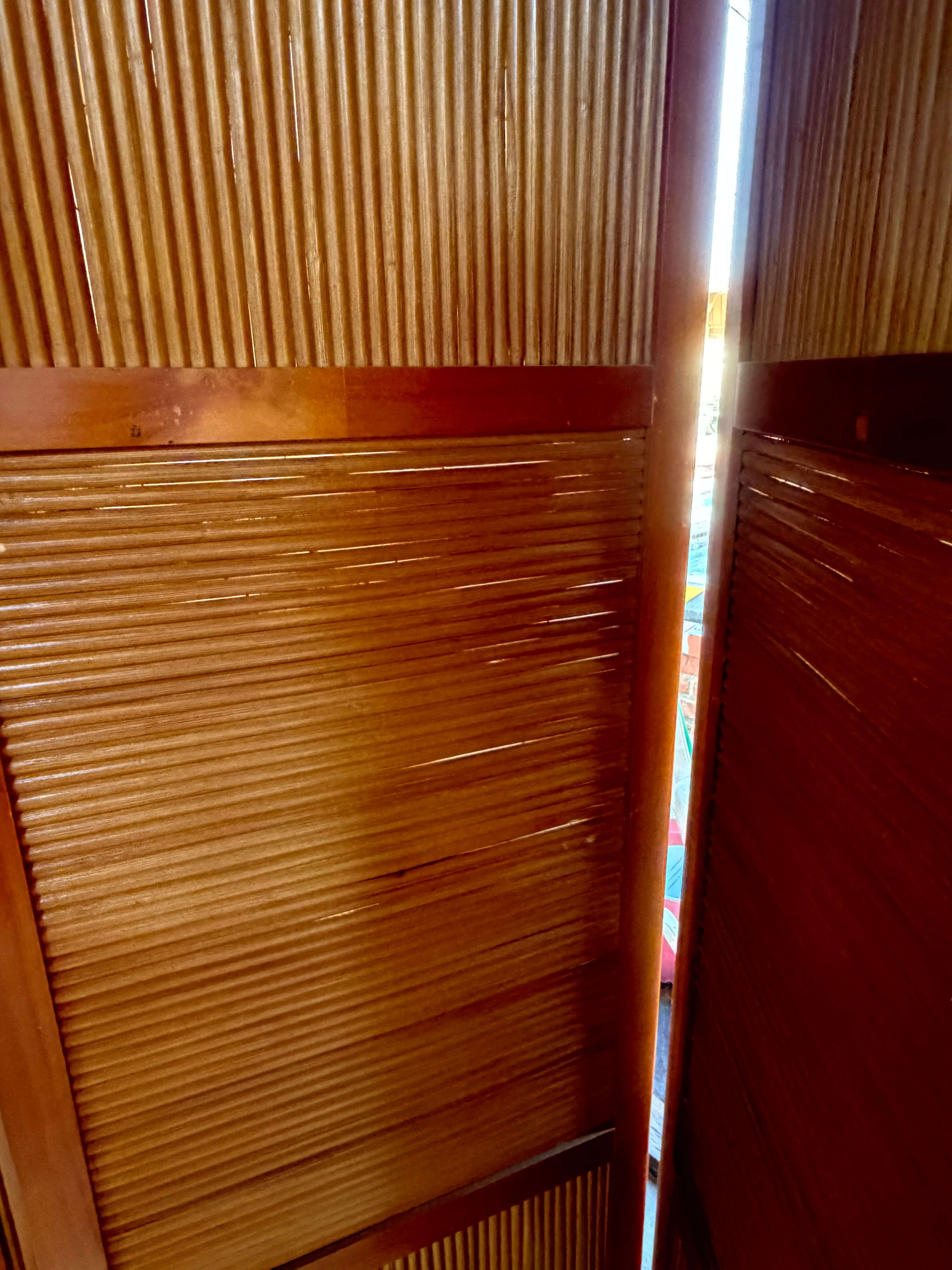 Reeded Privacy Screen, 78"w x 65 1/2"h. Some scuffs & scratches