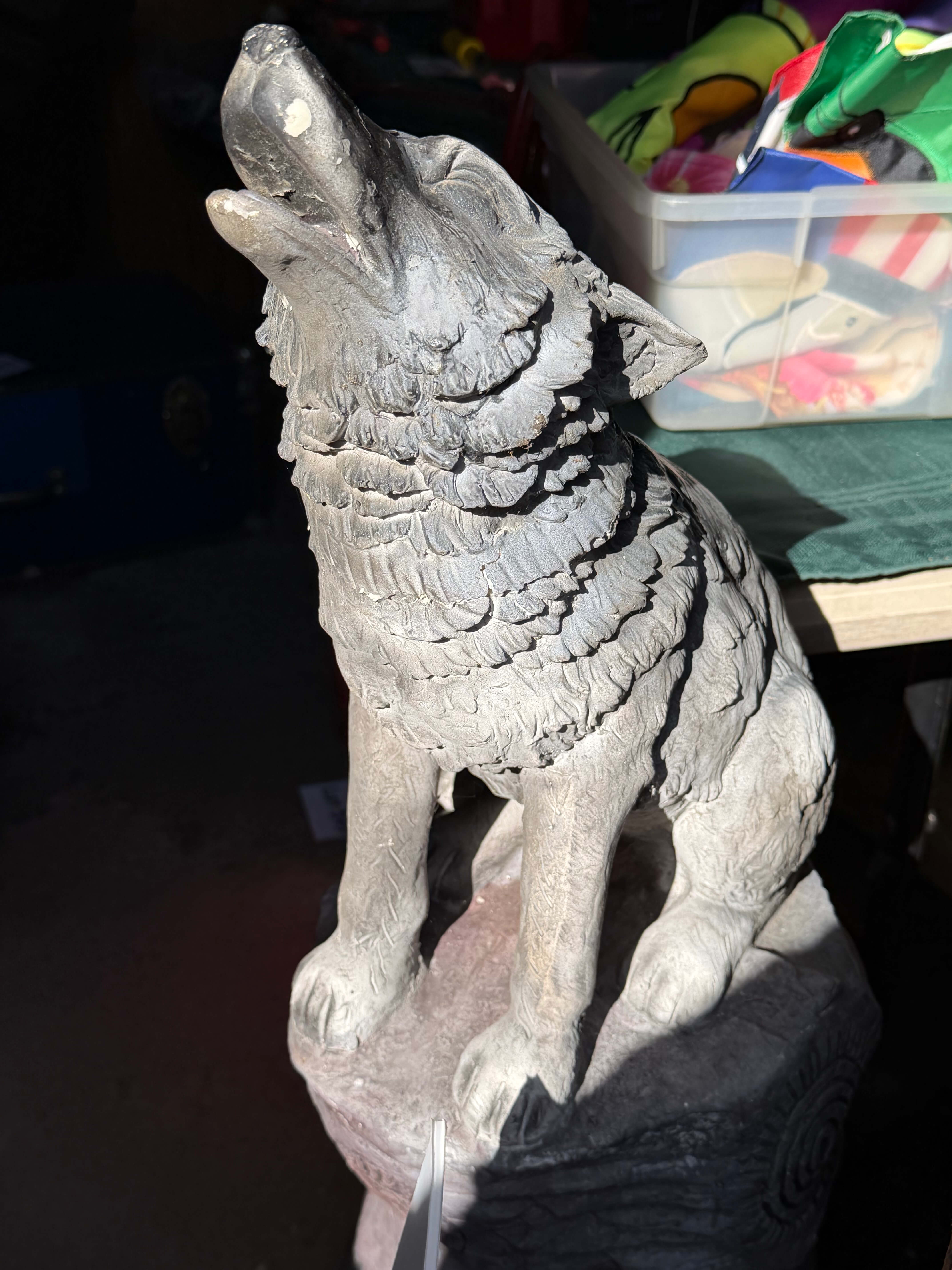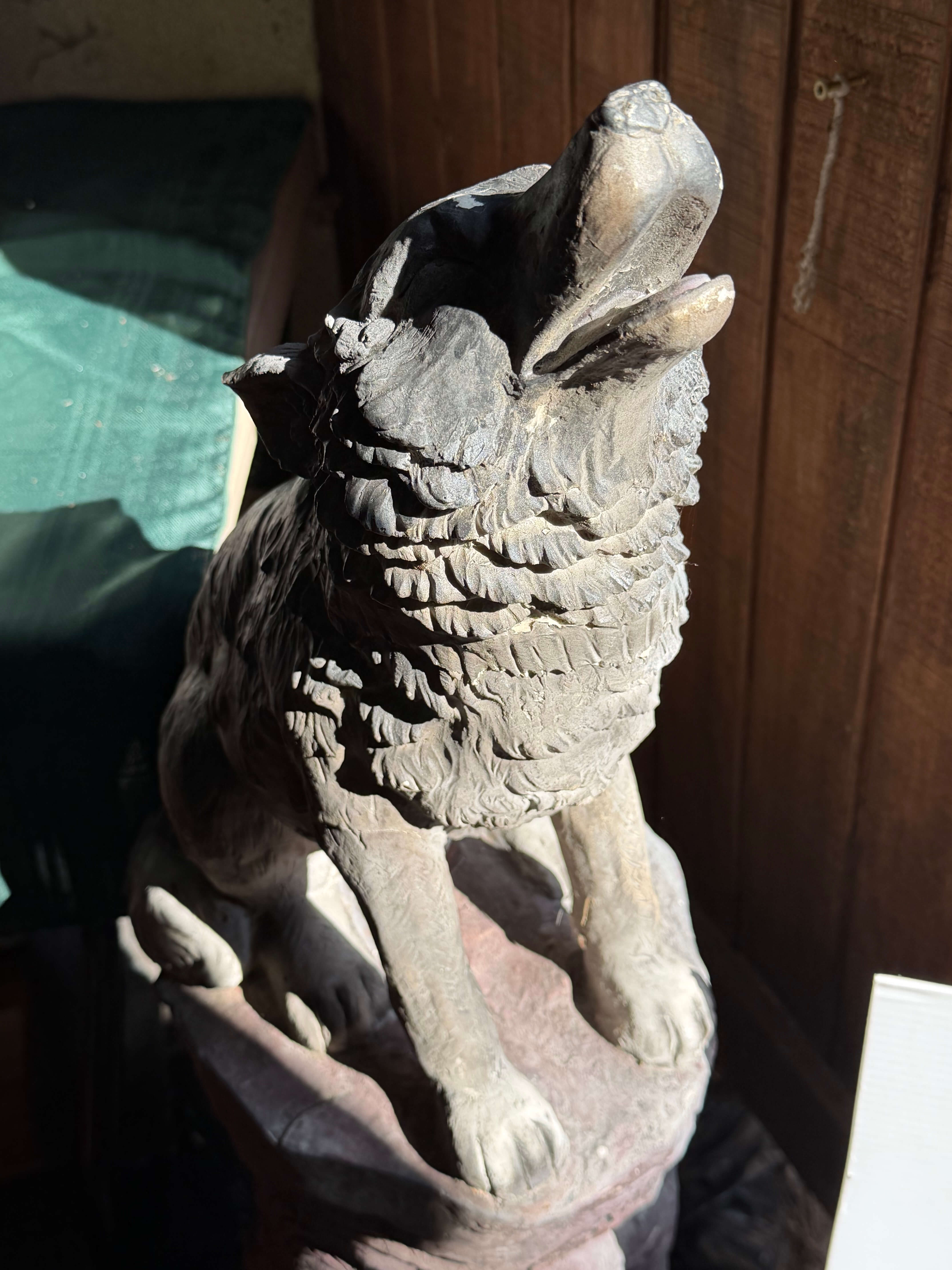 Yard Art -- Resin Howling Wolf, 46"h, needs gentle cleaning