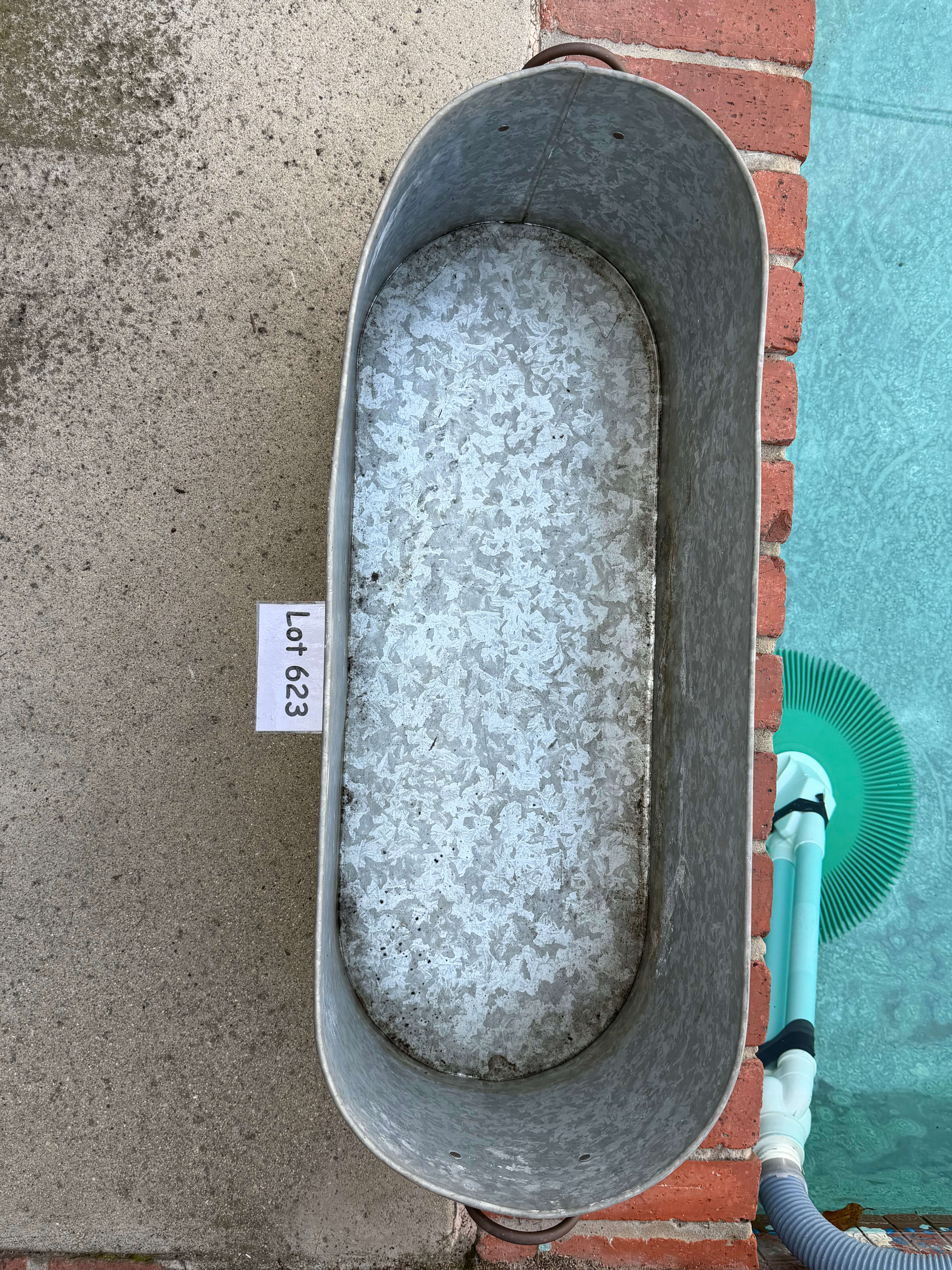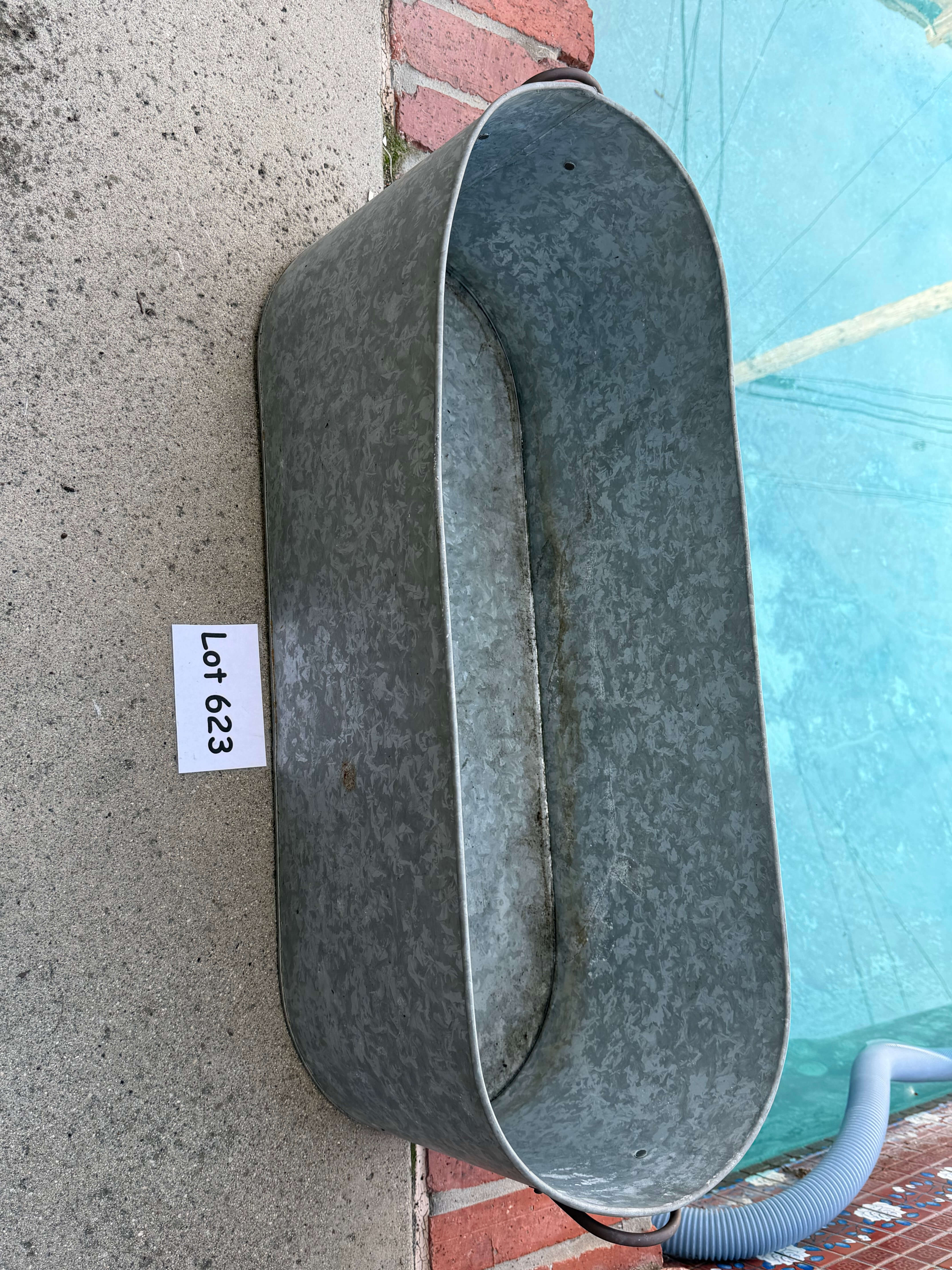 Galvanized Metal Oval Bin, 30"w x 11"d x 10"h