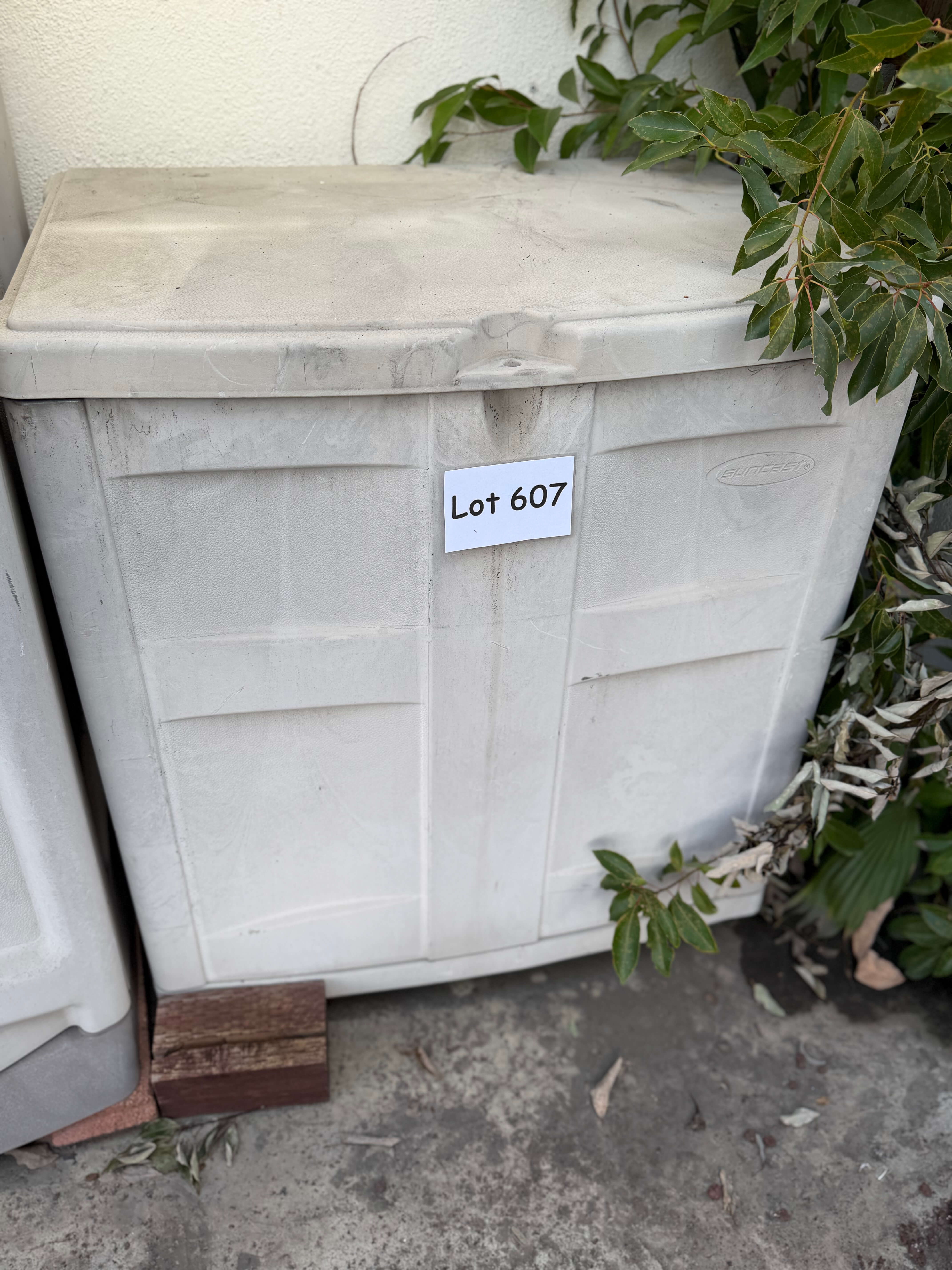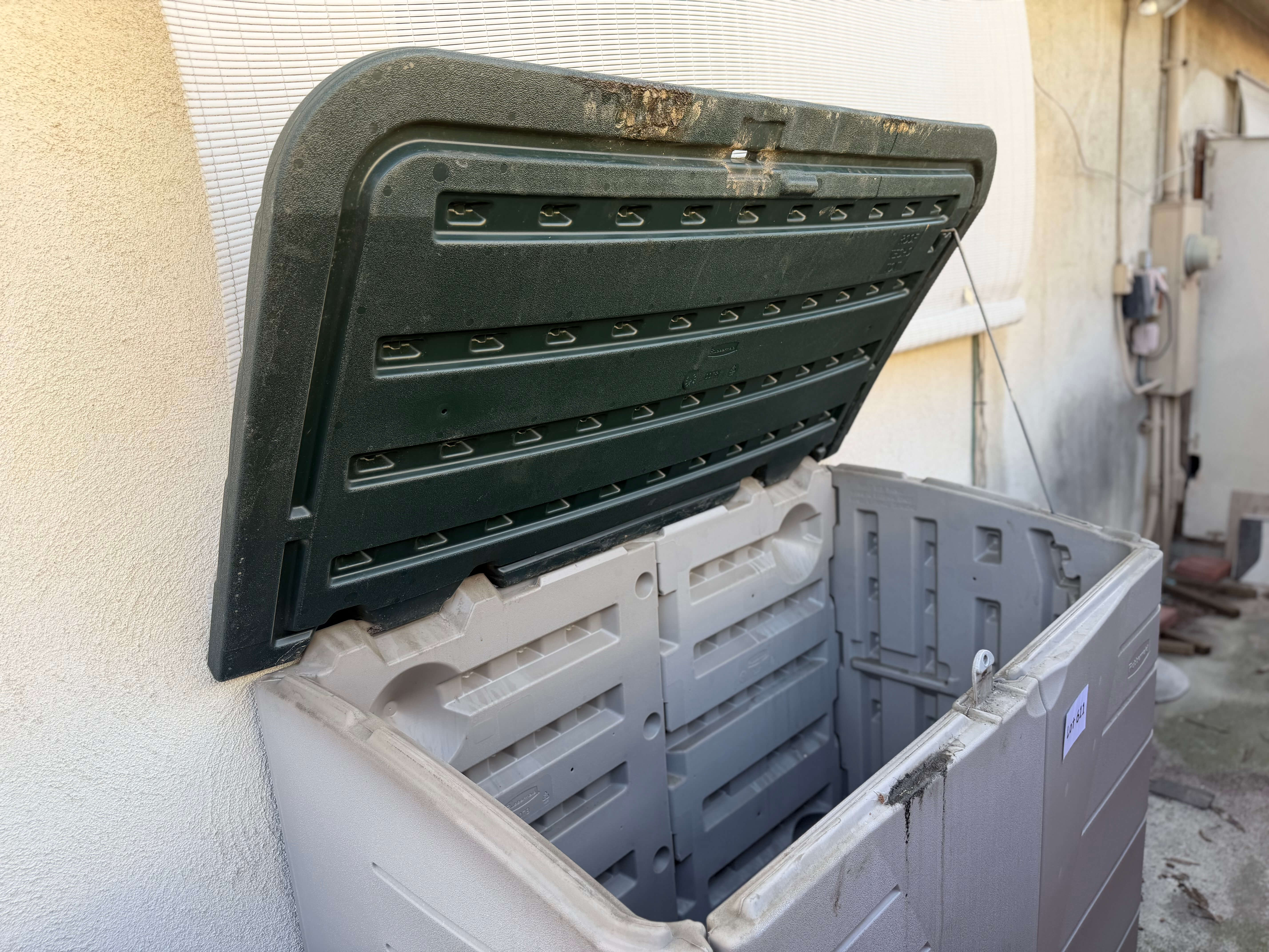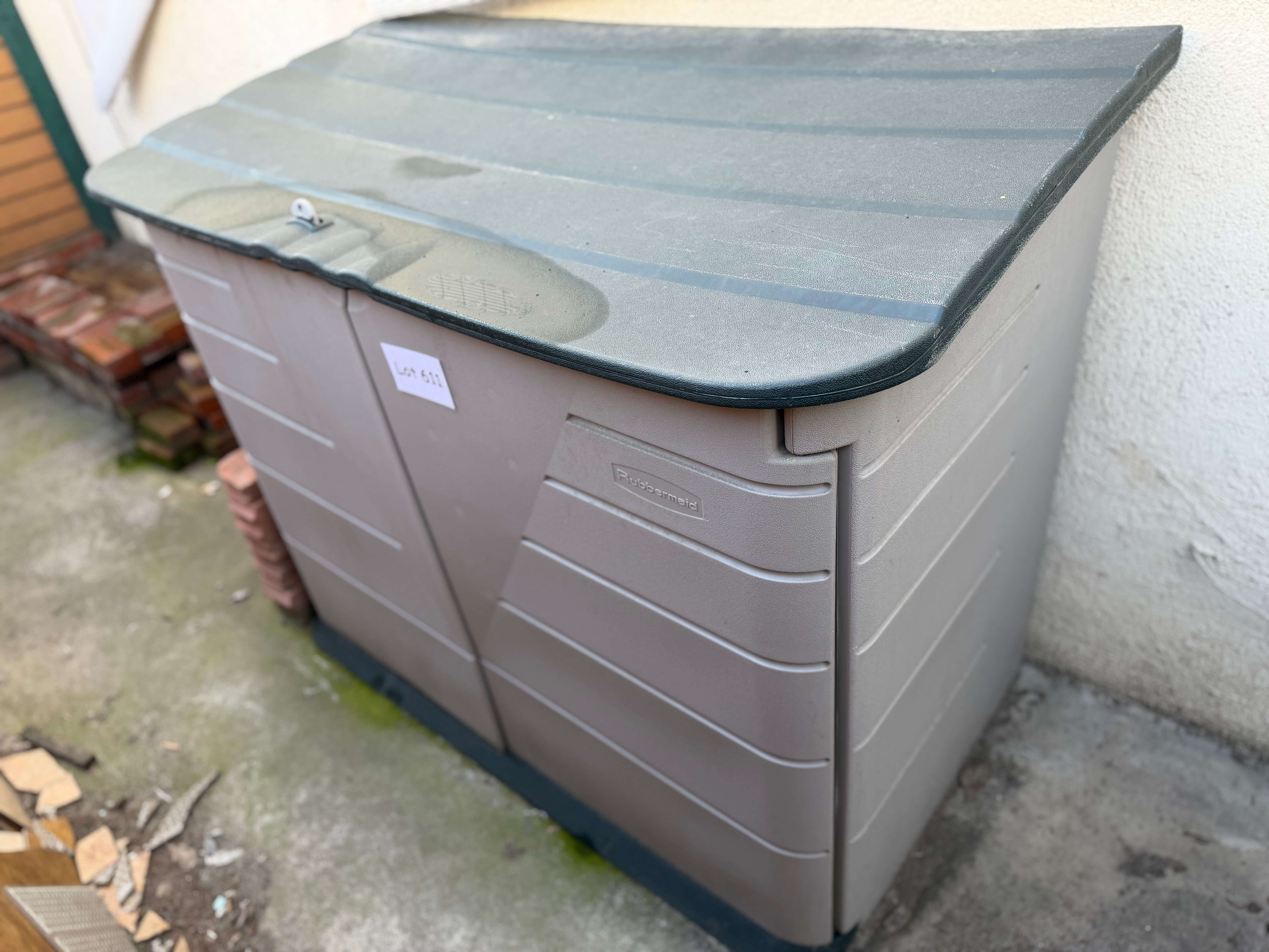 Suncast top-Load Storage Container, 29"w x 20"d x 33"h. Has some sun damage and needs cleaning