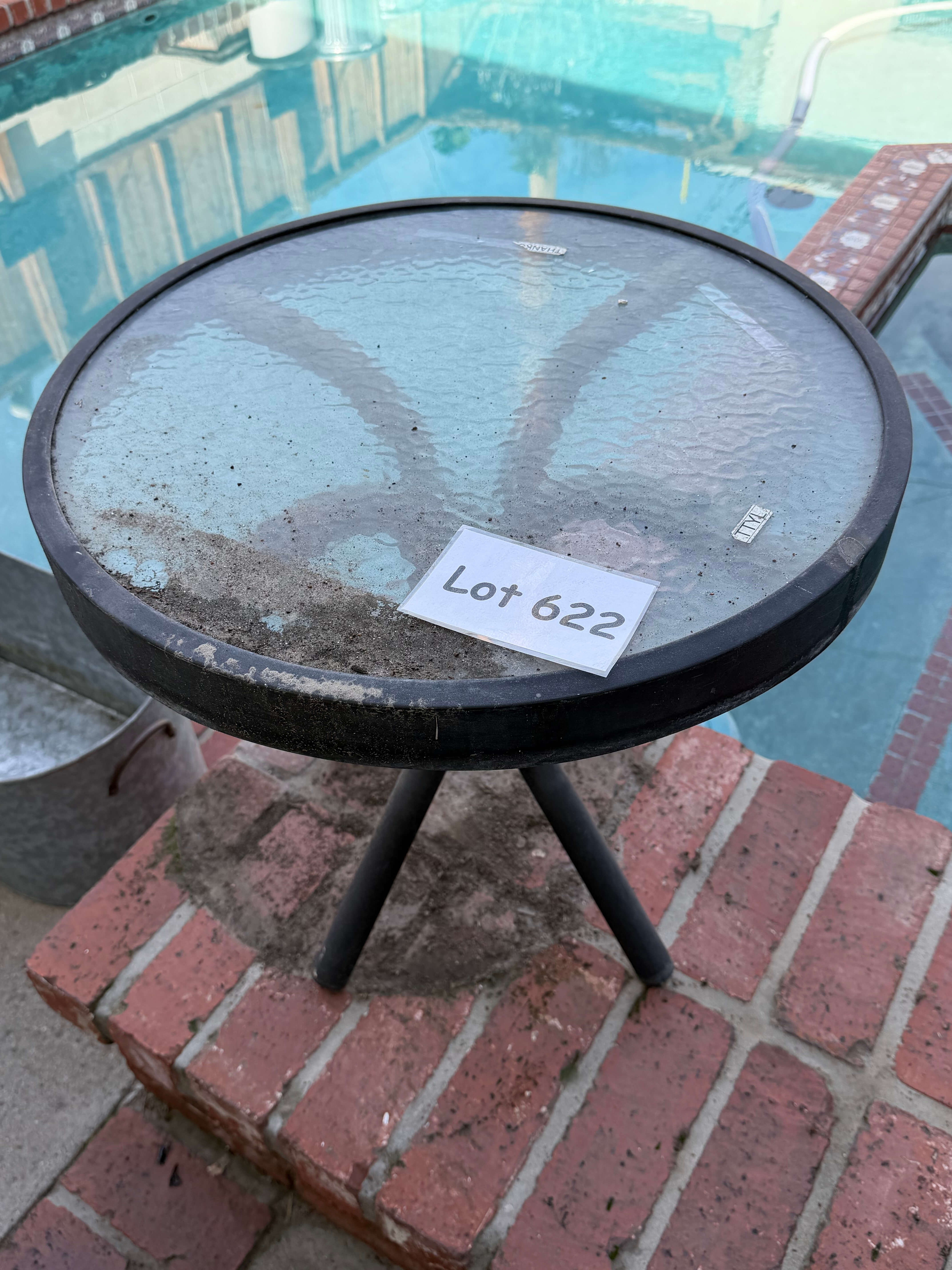 Sm. Glass top Patio Side Table, 20" diameter x 20"h