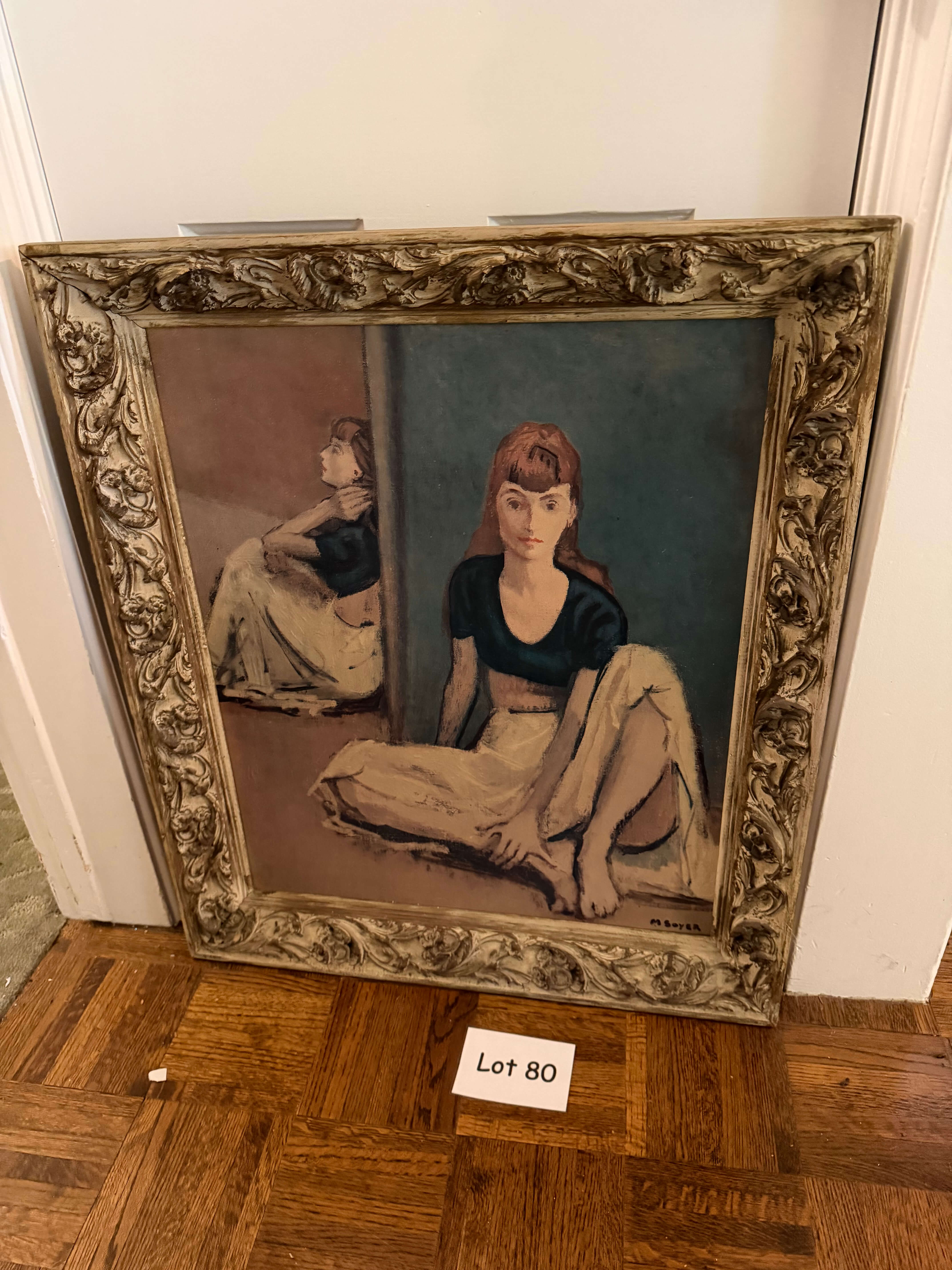 Framed Vintage Print "Dancers At Rest" signed Moses Soyer, 25"w x 29"h