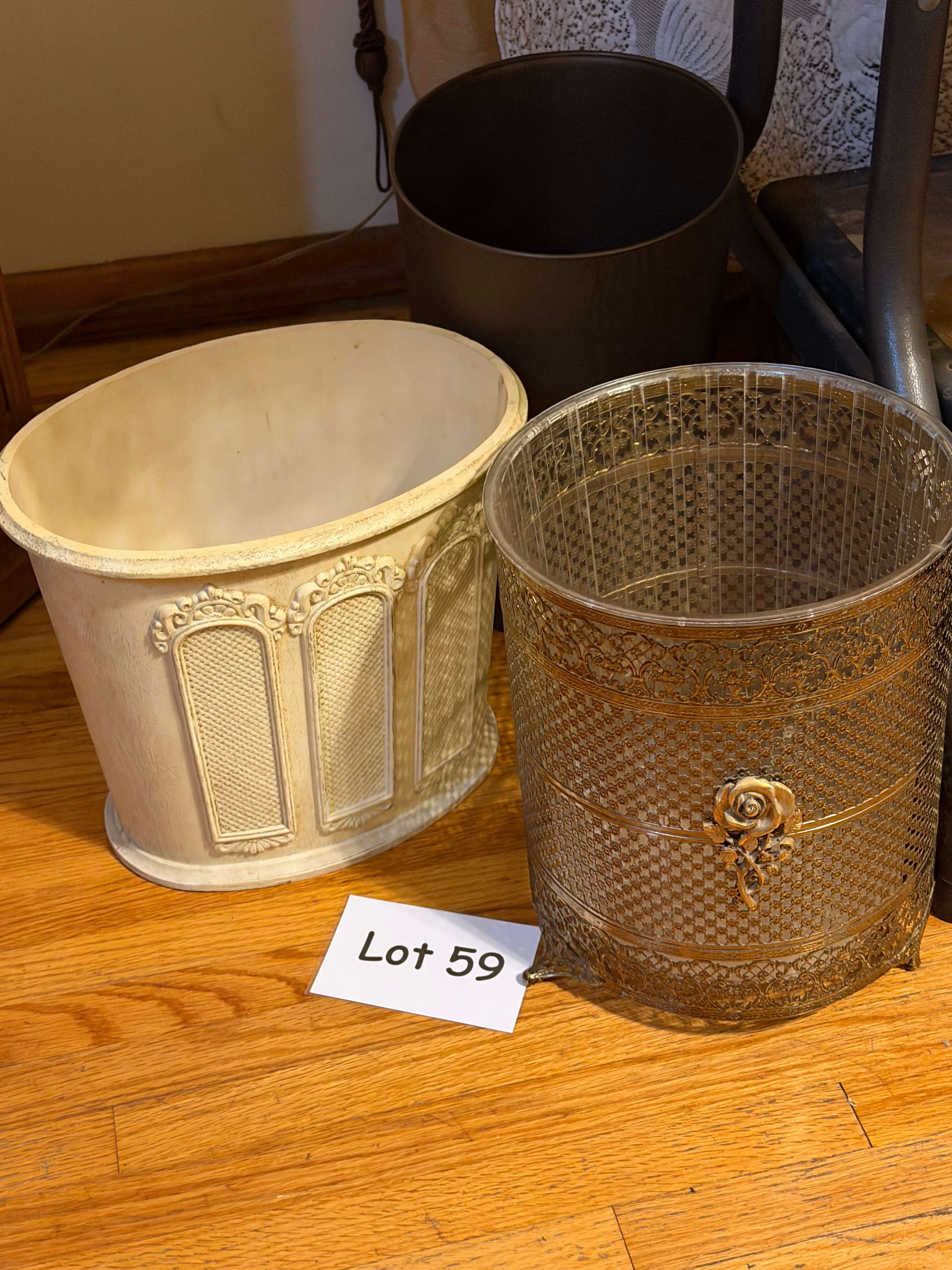 (3) Small Trash Cans, tallest is 12"h. 2 plastic, 1 metal