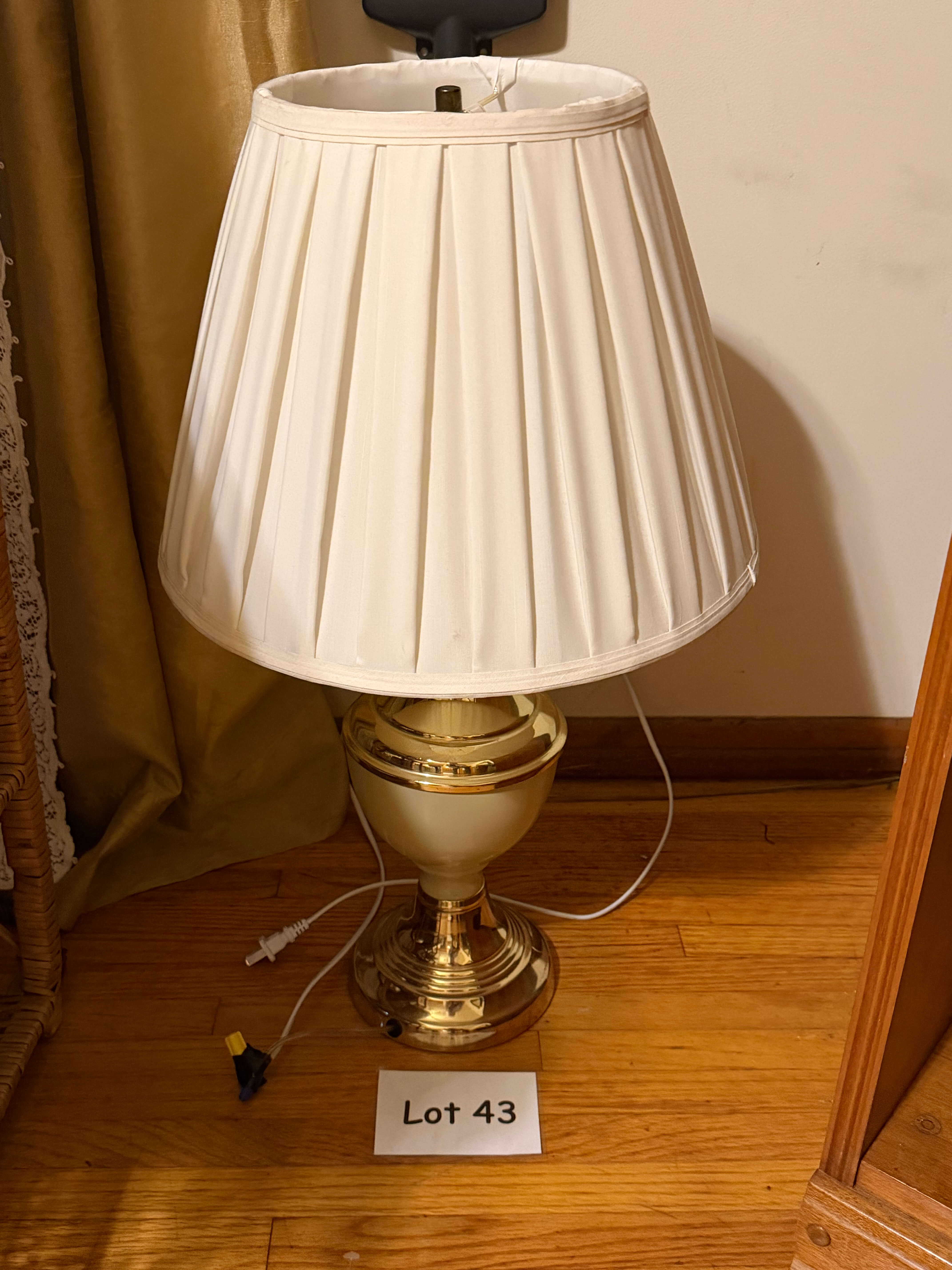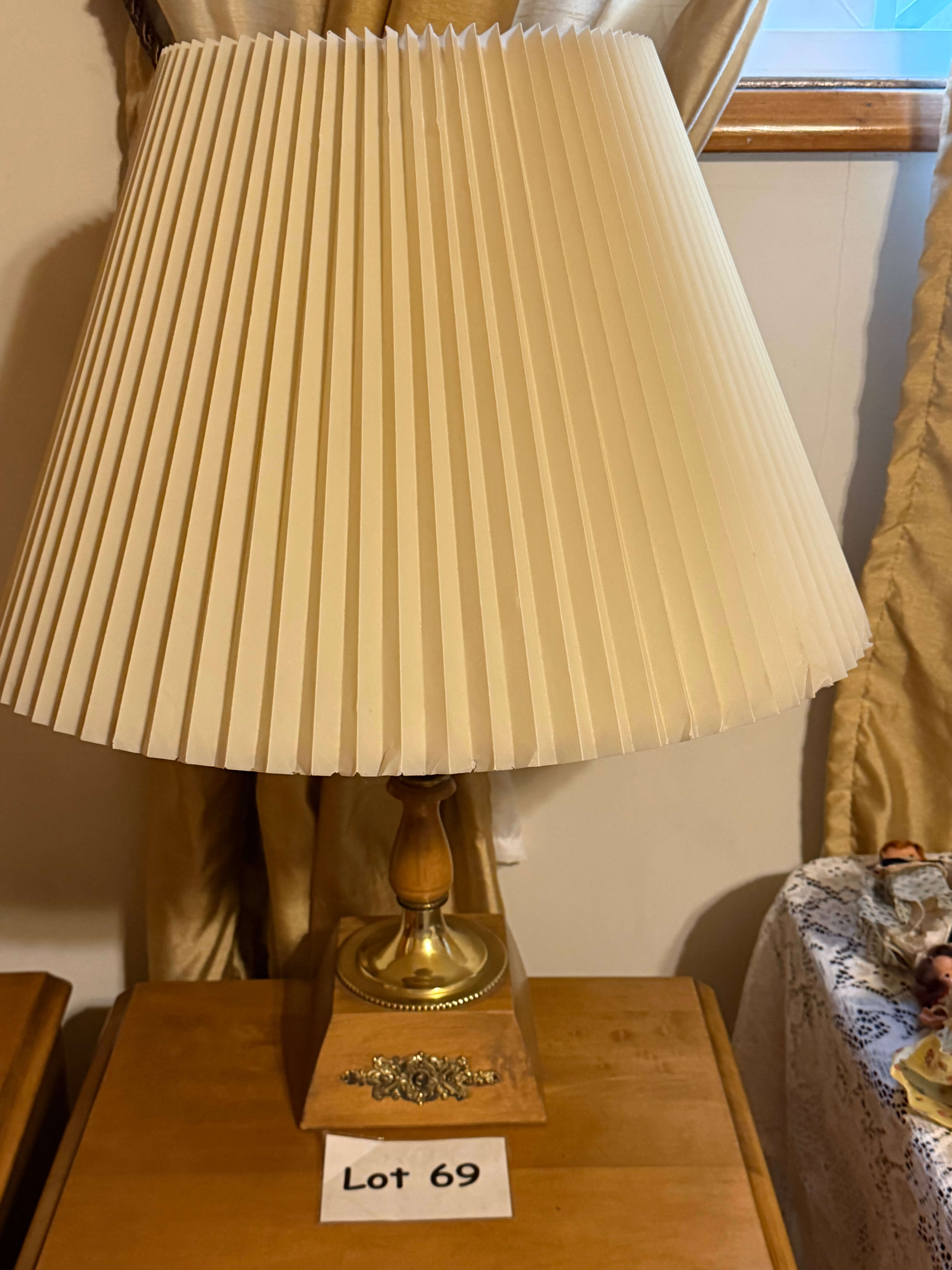 Decorative Wood & Brass Base Table Lamp, 25"h. Shade is in decent condition.