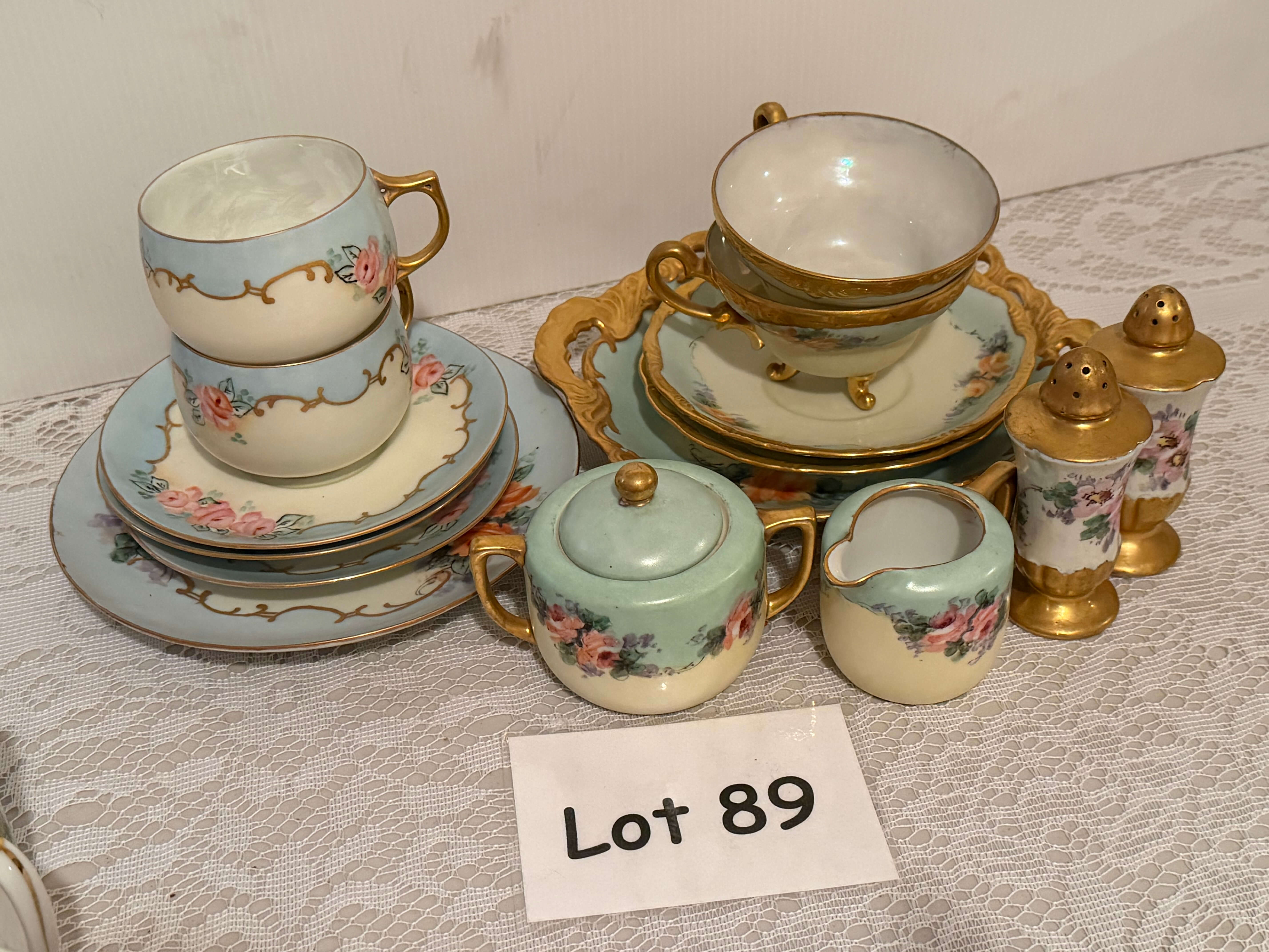 15 Pc. Vintage Bavaria Fine China Hand Painted Tea Service (mostly matching), tallest is 3"h