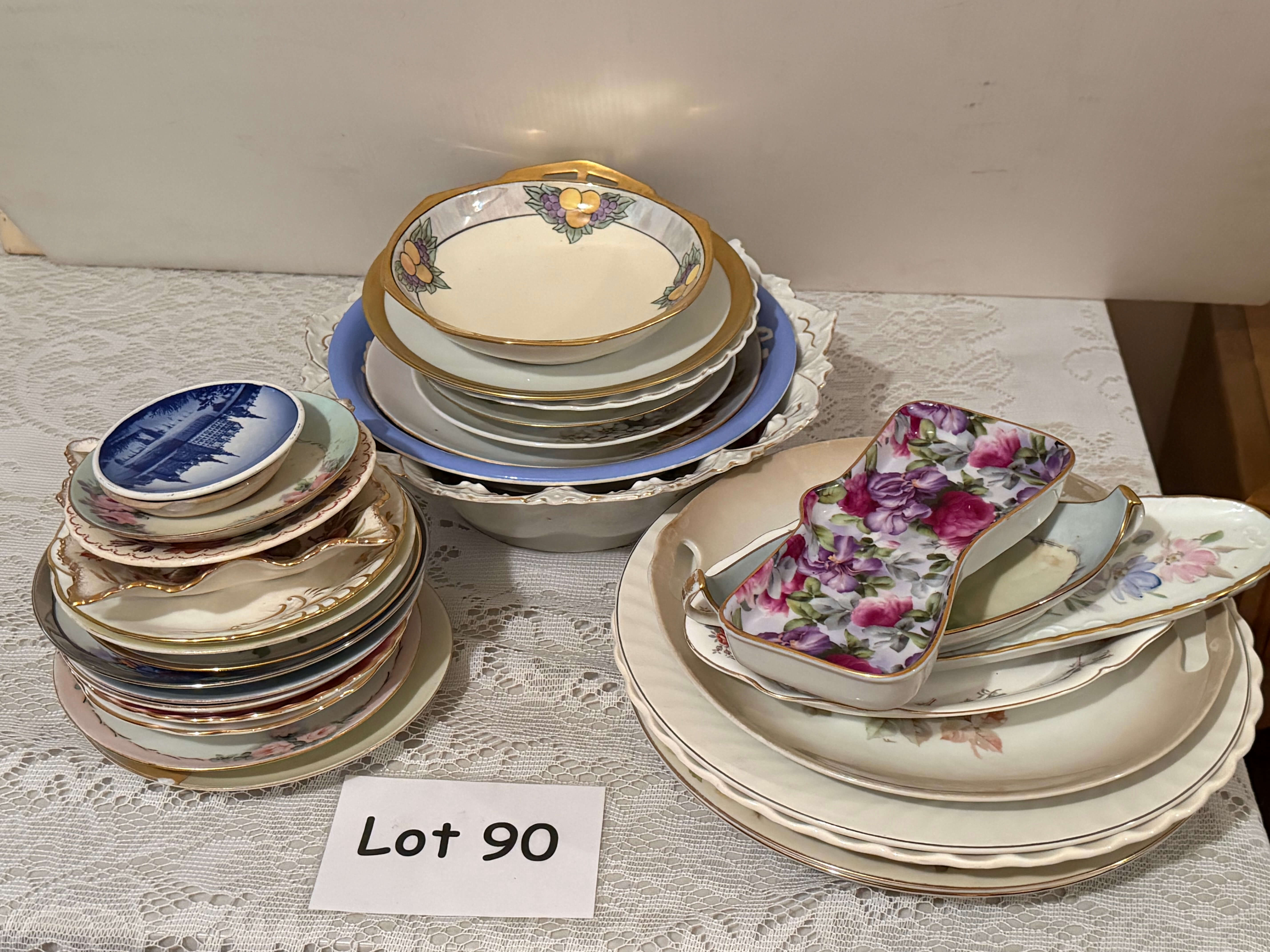 Variety of 30+ Mismatched Fine China Dishes, largest is 10" diam