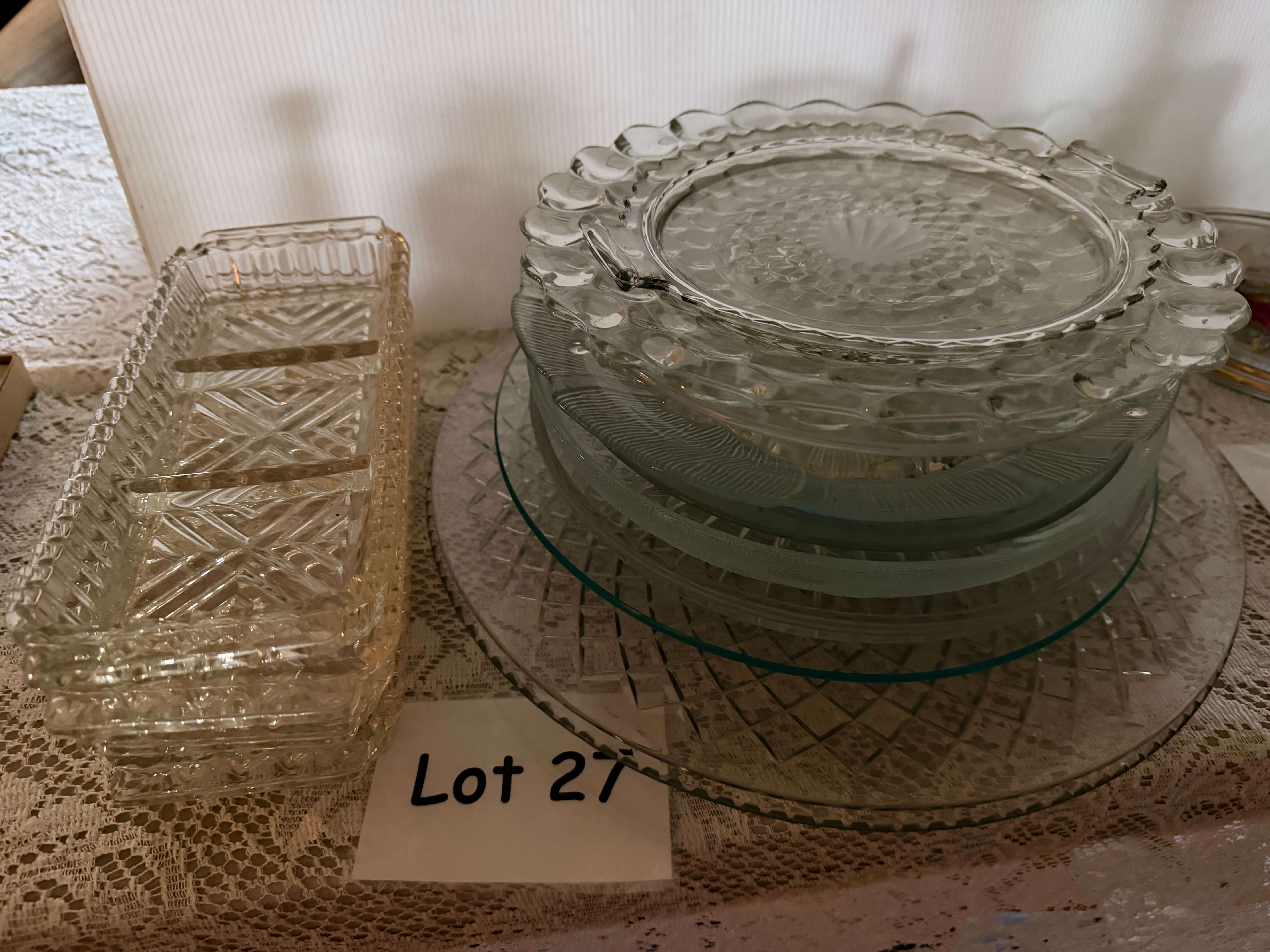 Crystal & Glass Serving Pieces, largest is 14" diam