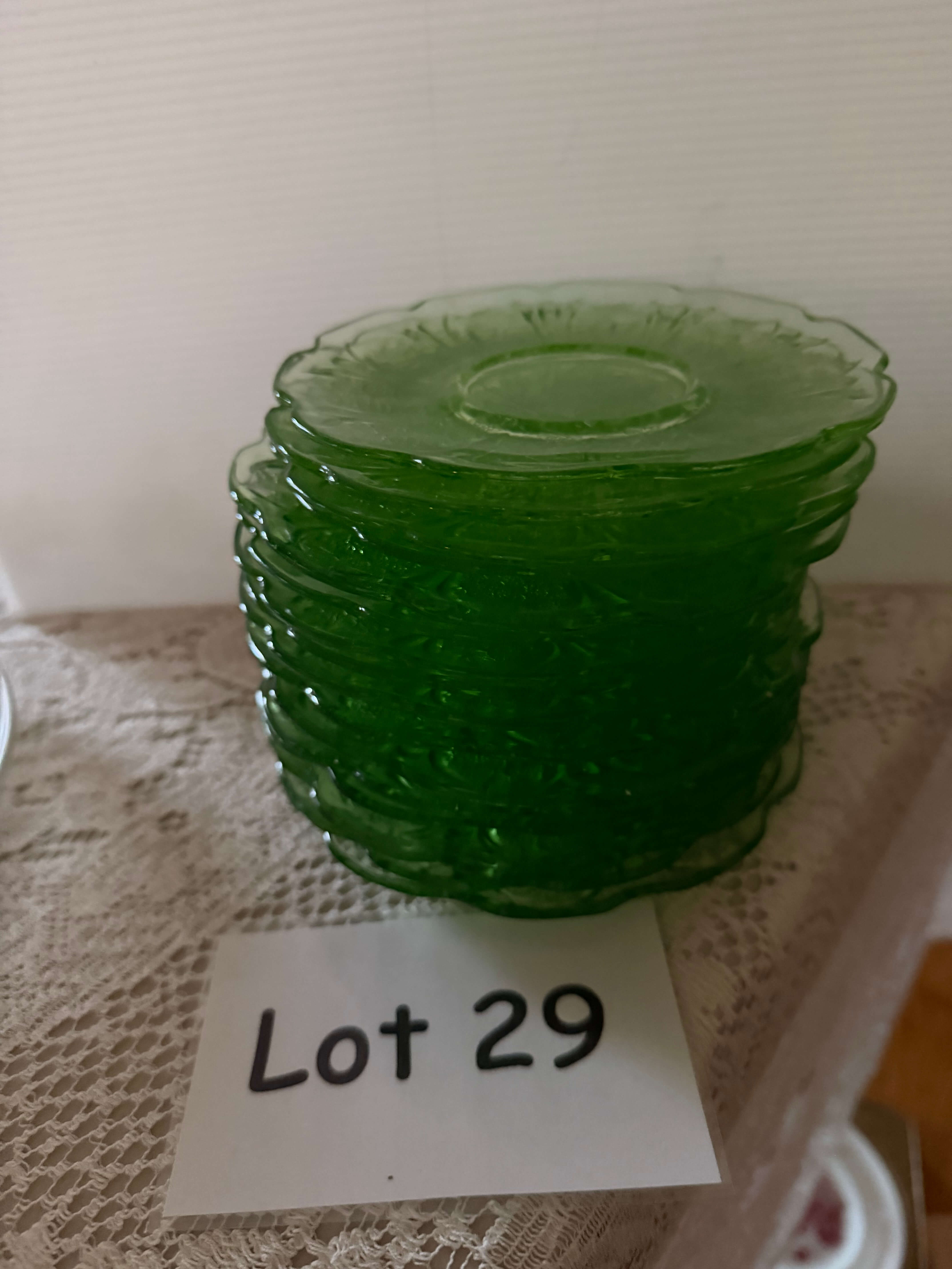 (15) Green Depression Glass Daisy Saucers, 6" diam