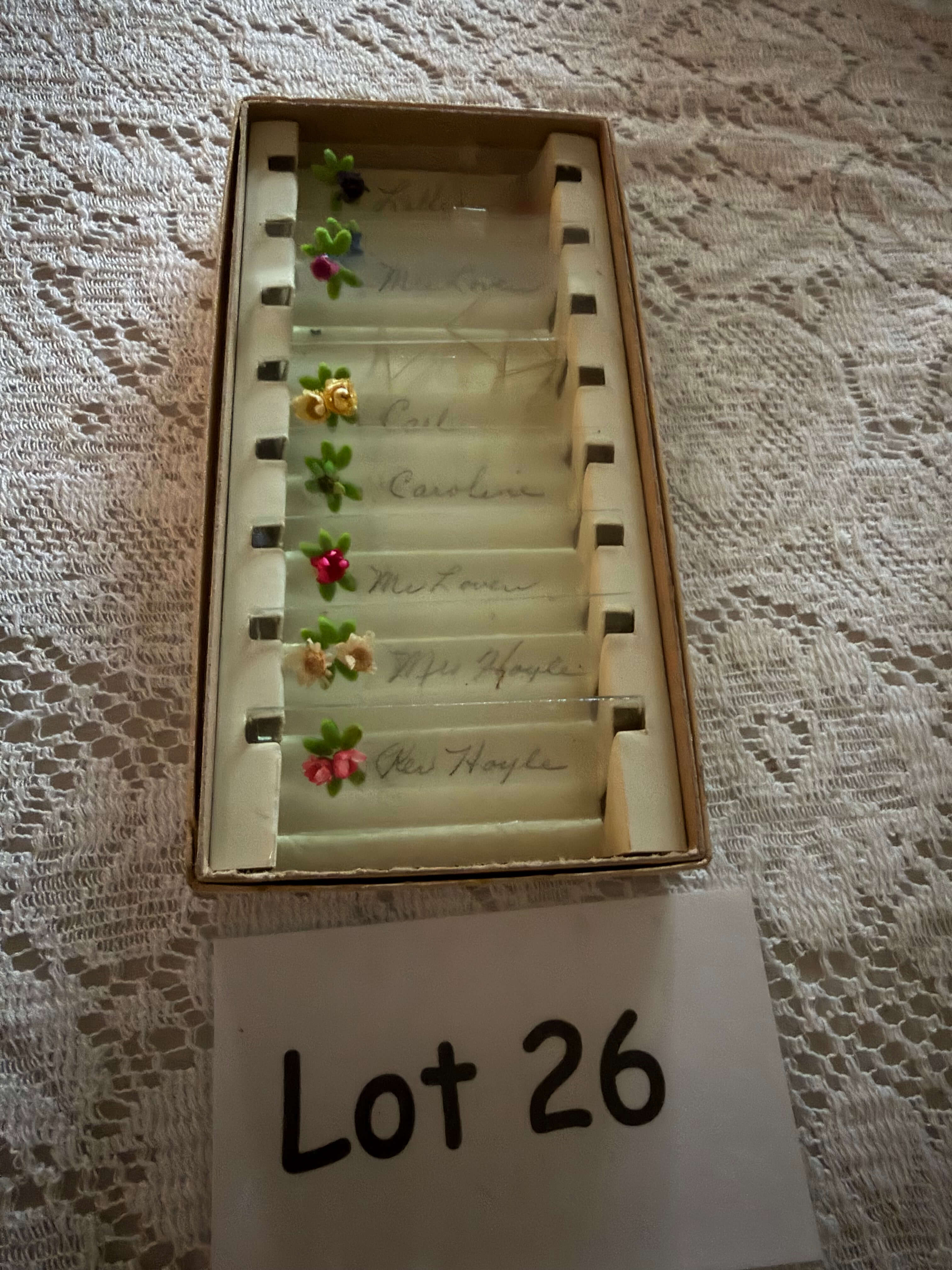 Set of 8 Floral Glass Name Place Setting Tags, 3.5"w