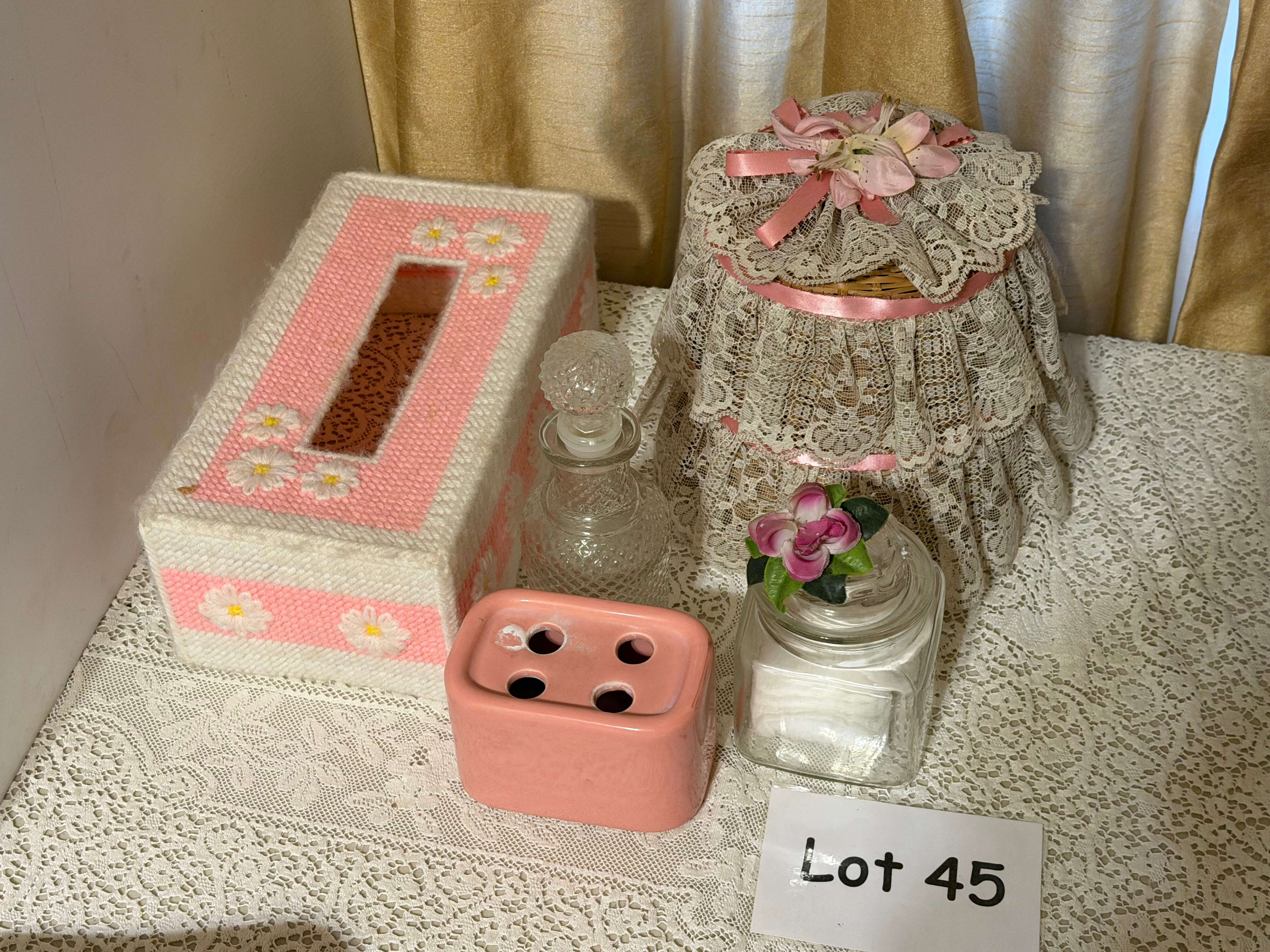 Variety of Bathroom Accessories, all could use a gentle cleaning
