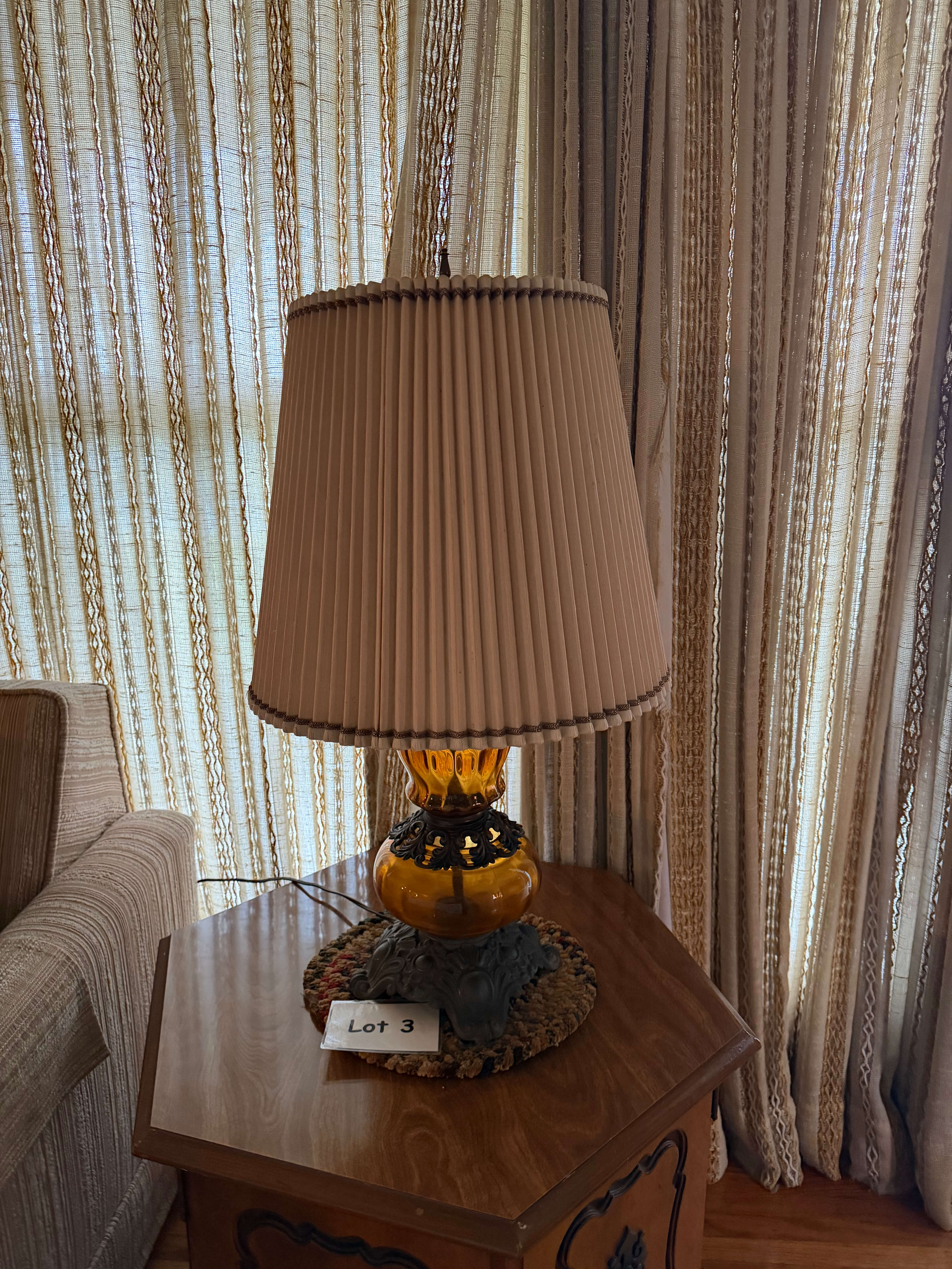 Table Lamp w/ Amber Glass Base, 28"h. Shade is decent
