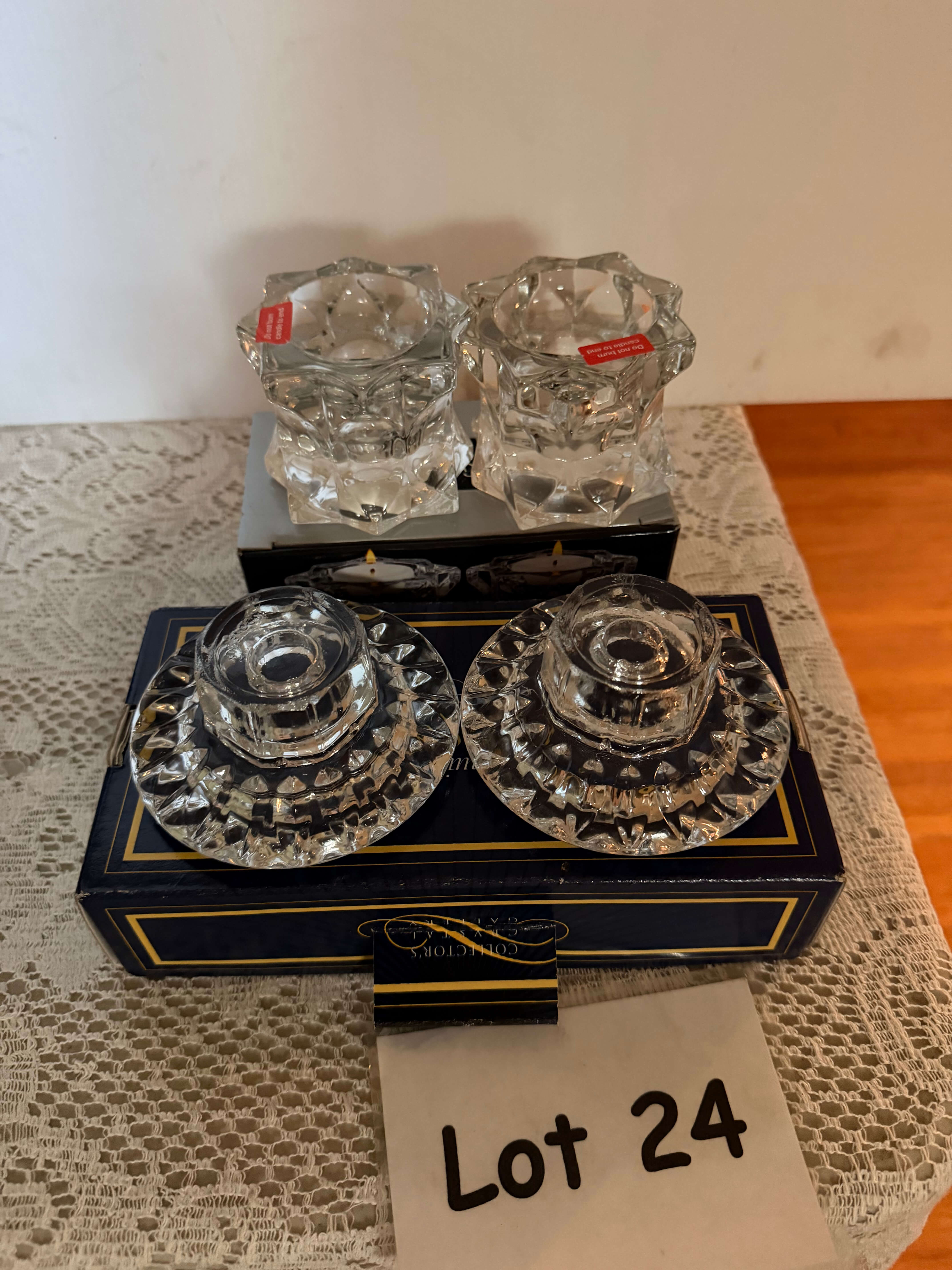 (2) Sets of Crystal Candle Holders, larger set is 3.5" diam