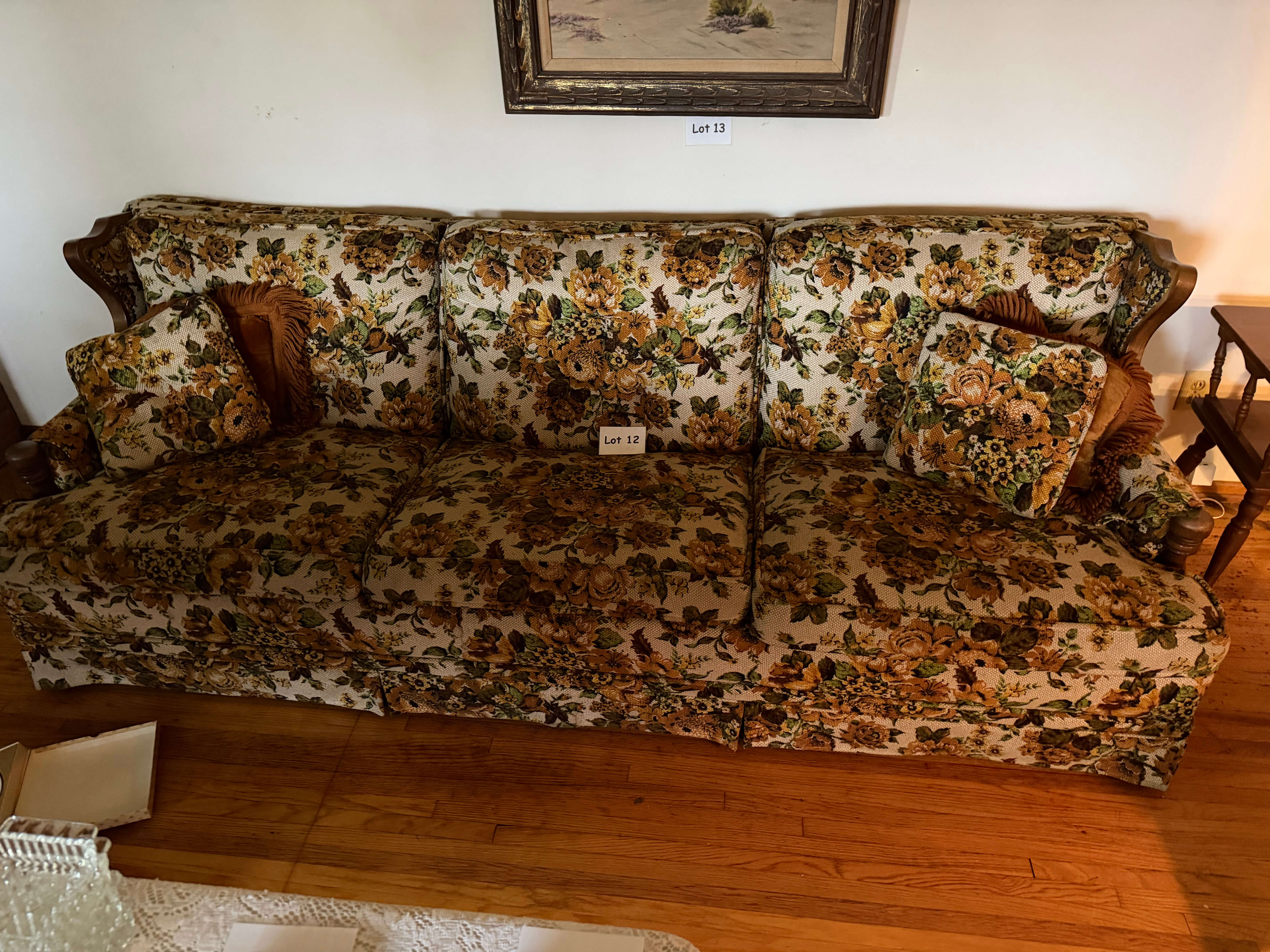 Maple Wood Frame Floral Sofa, 92"w x 36"d x 32"h. Clean condition
