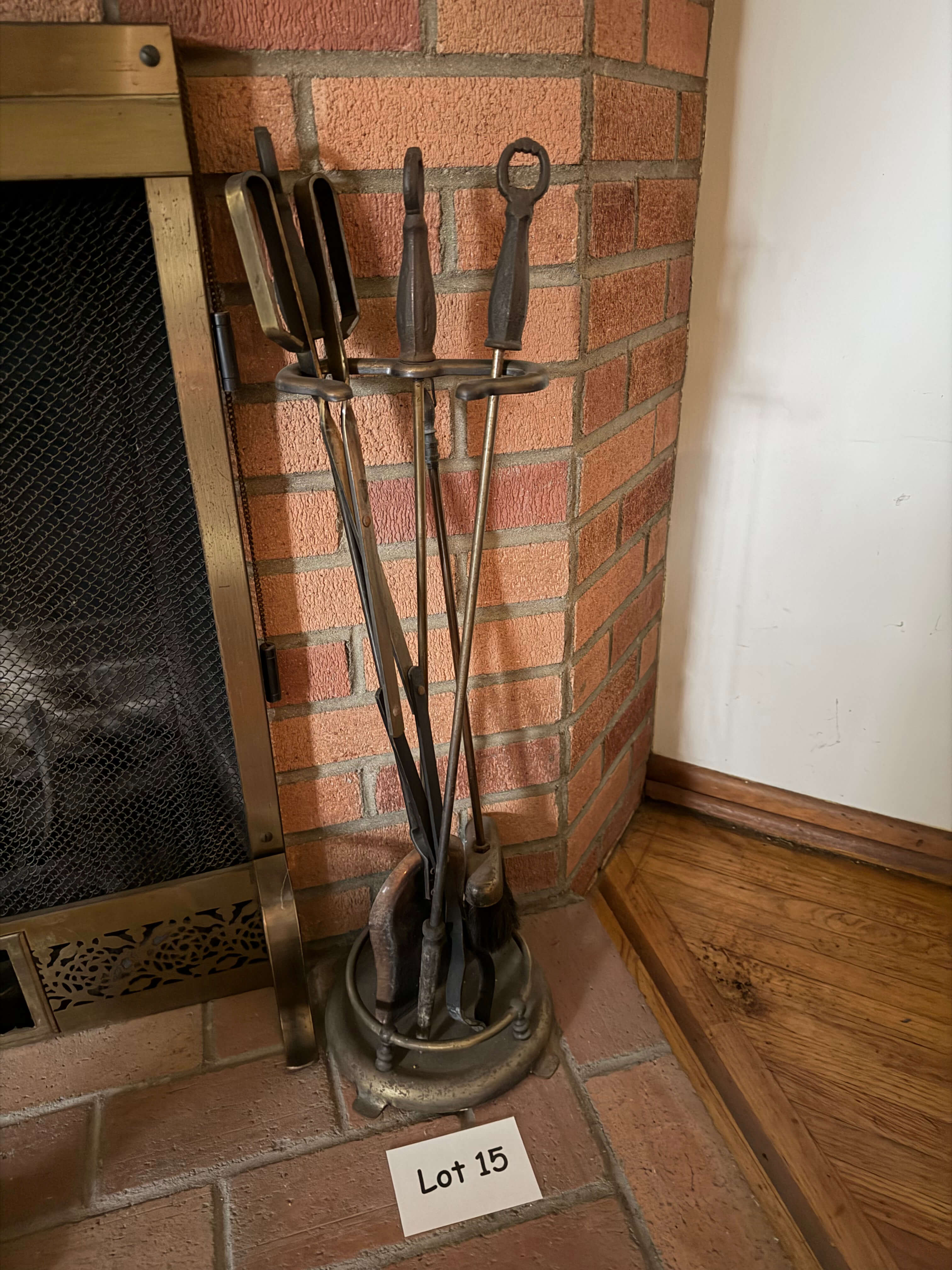 Brass Log Holder, 18"l x 13"w. Includes (4) 20"l birch logs