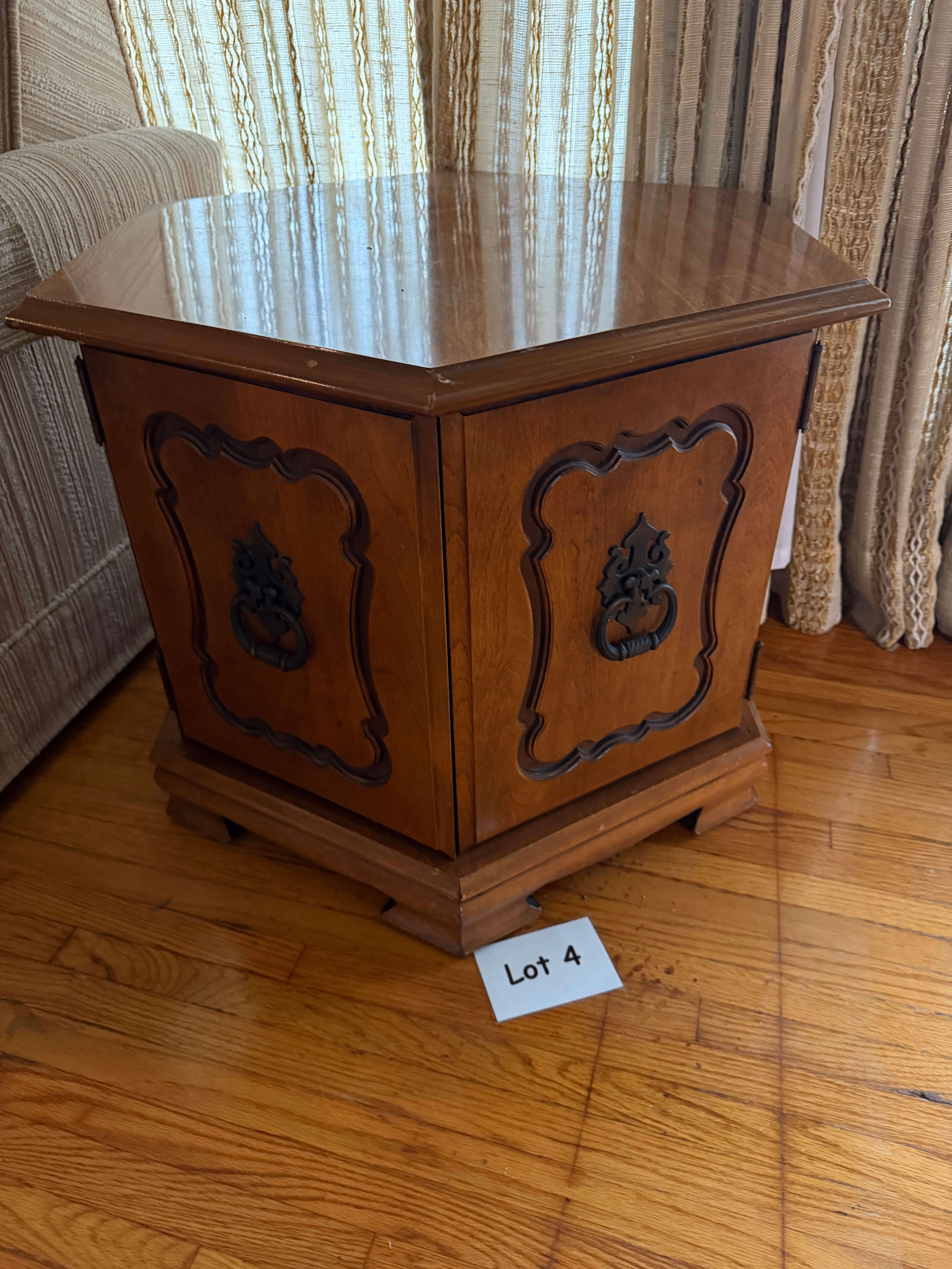 Hexagonal End Table Cabinet w/Laminate Top, 23" across x 20"h