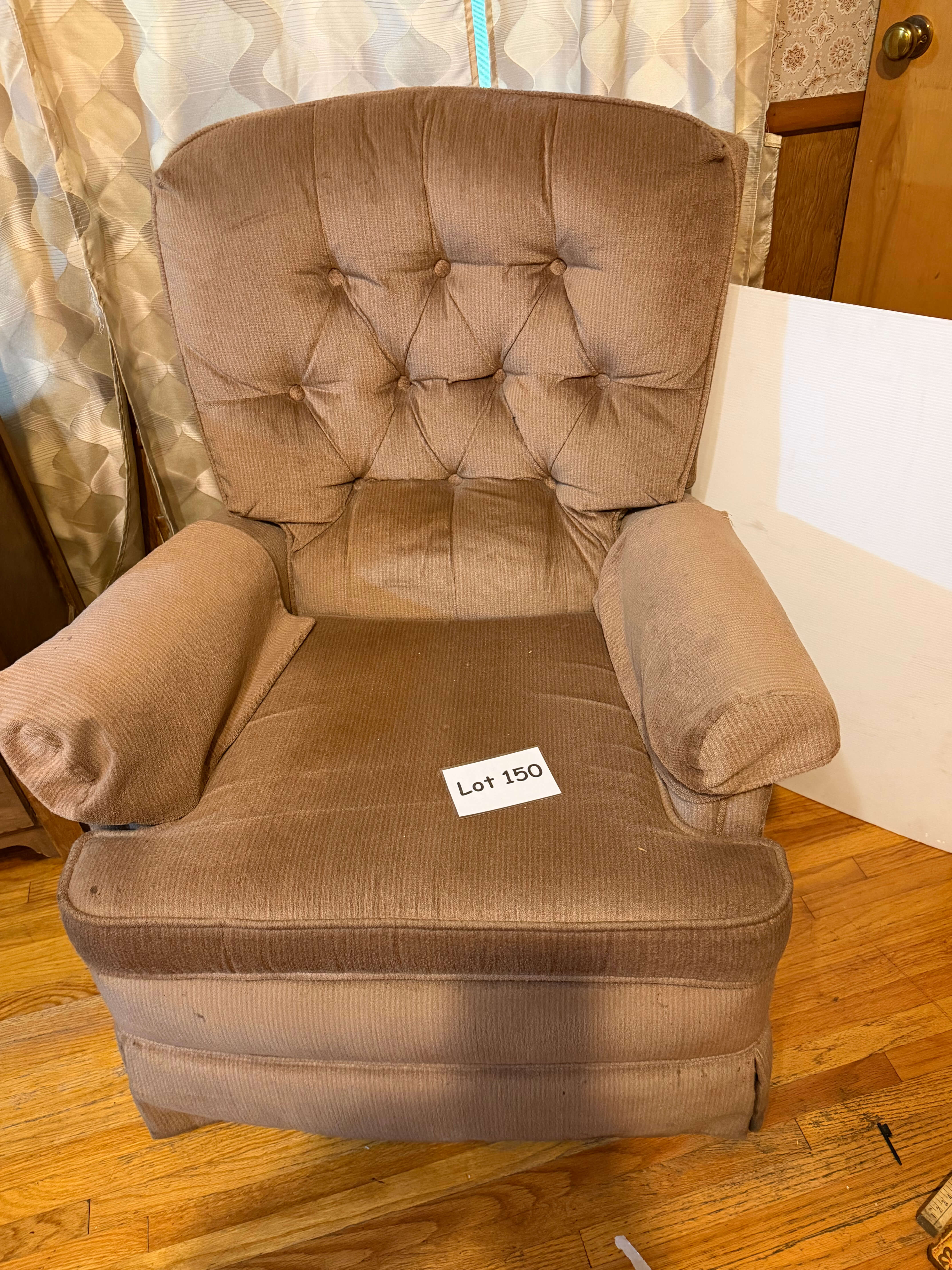 Swivel Rocker/Recliner, 31"w x 36"d x 38"h. Needs gentle cleaning.